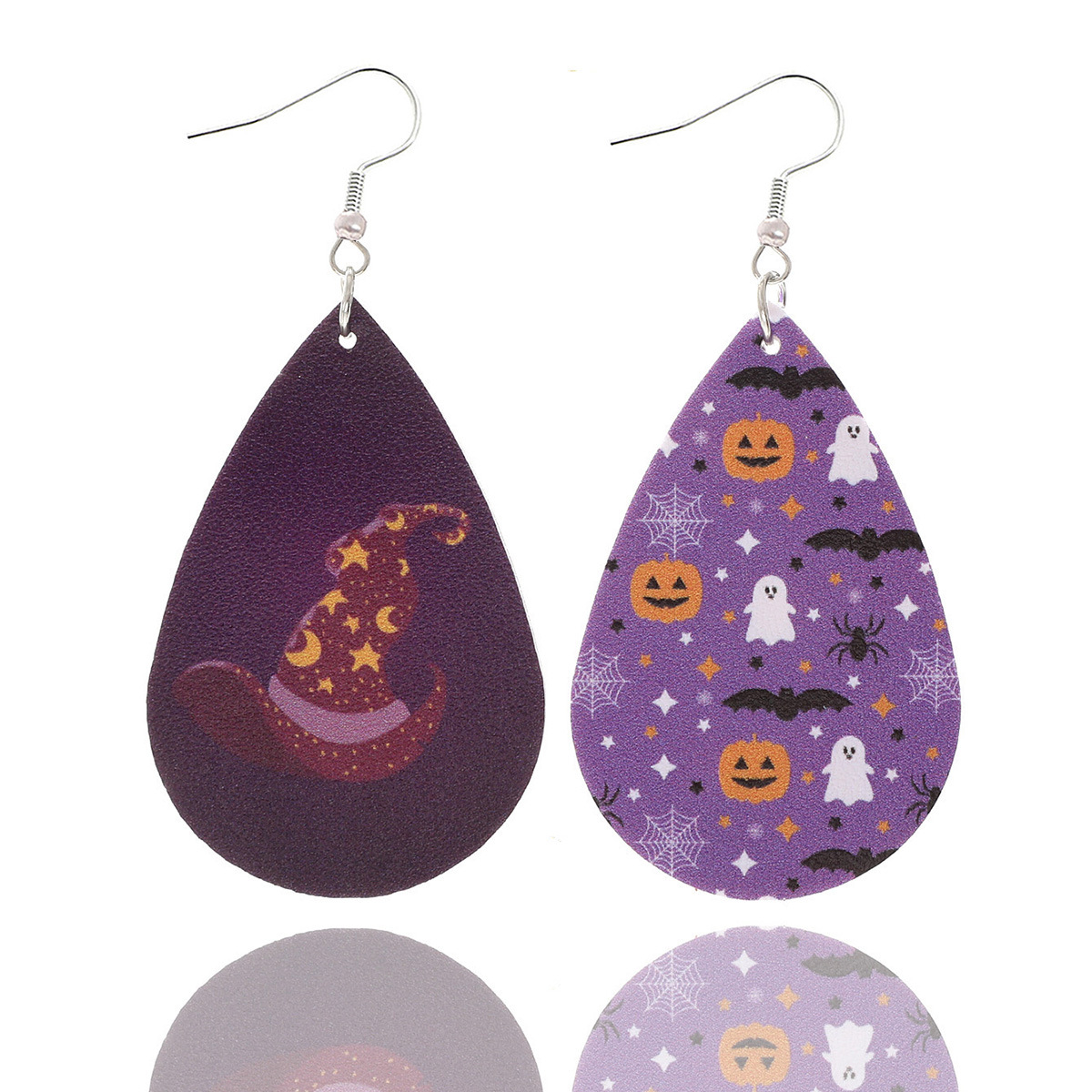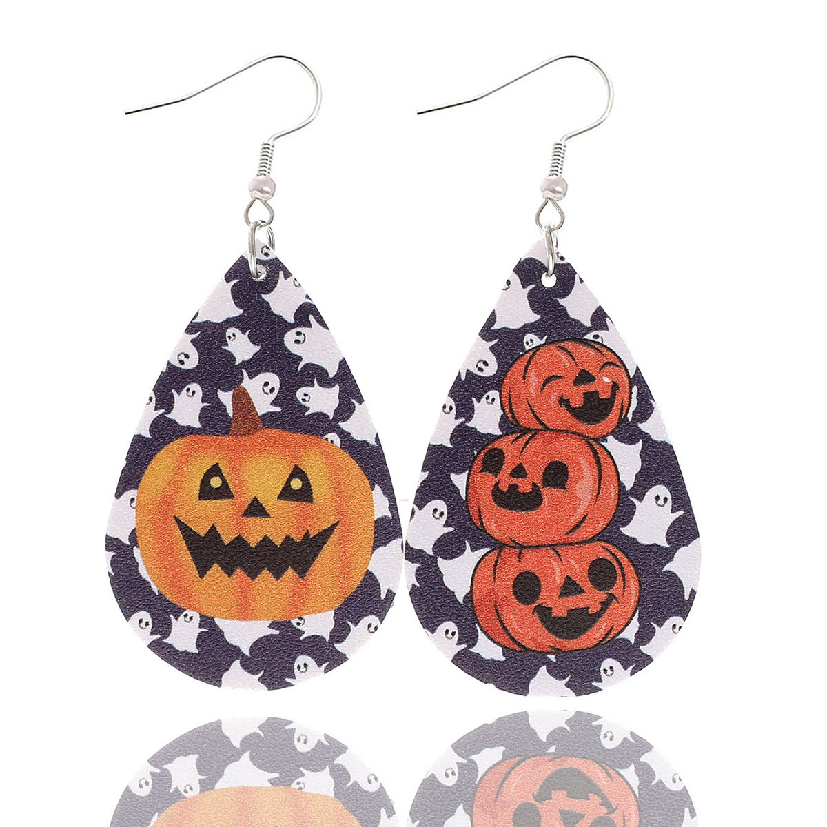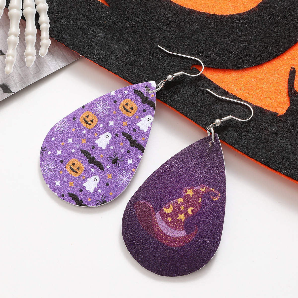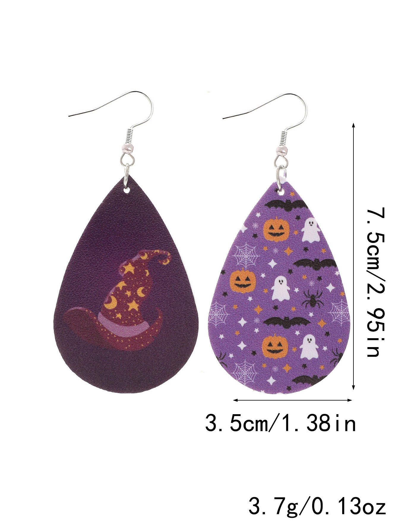 教师节开学季万圣节南瓜鬼巫师帽水滴形皮革女士耳环教师节感恩节