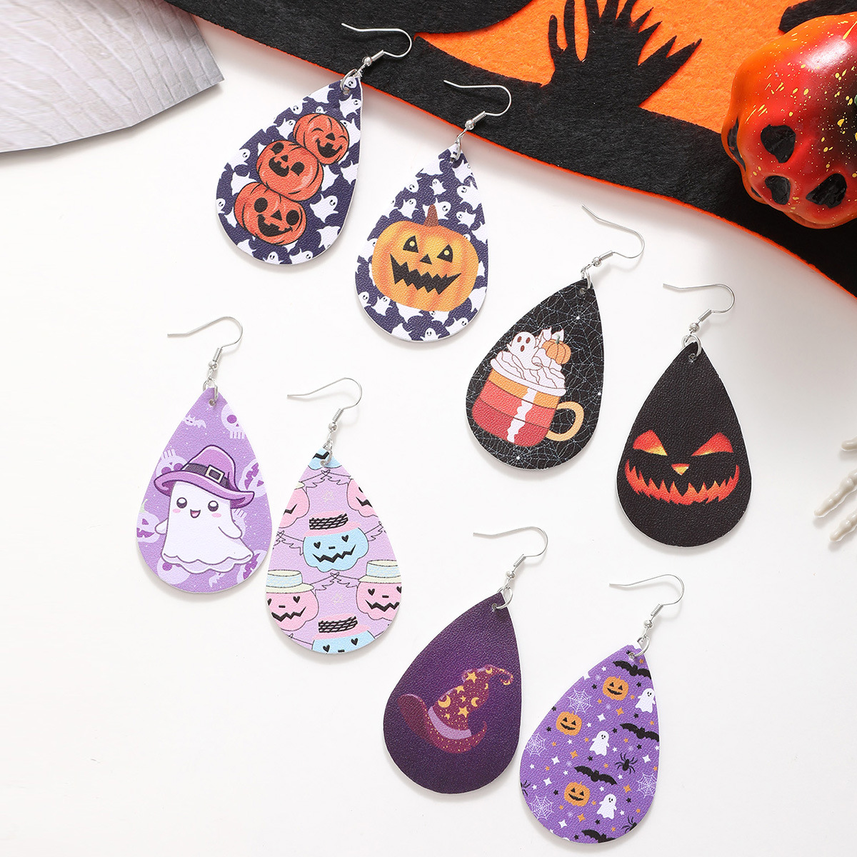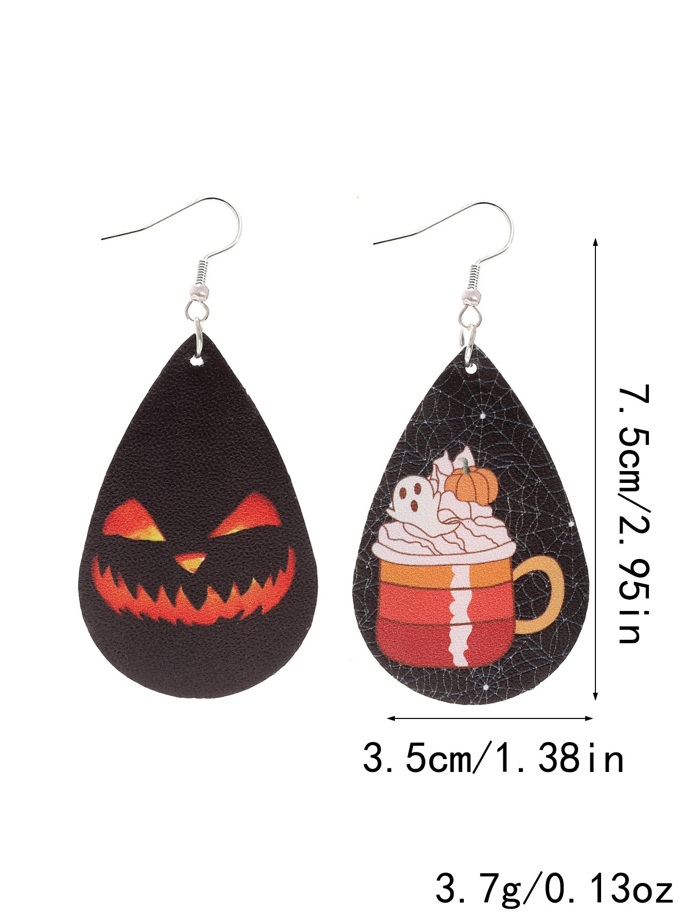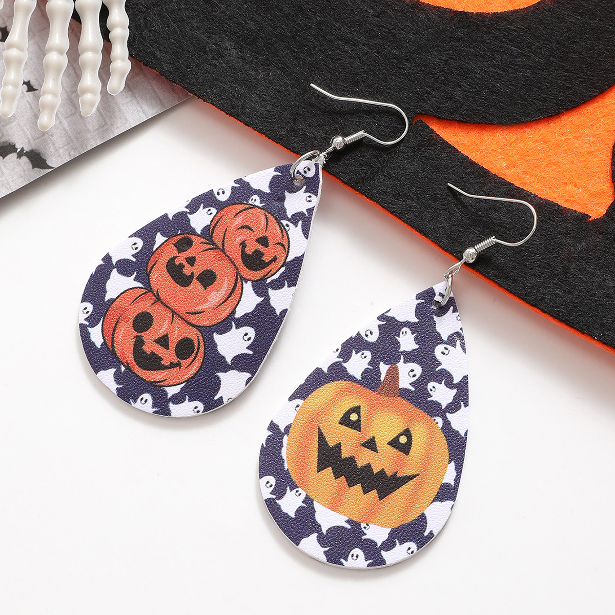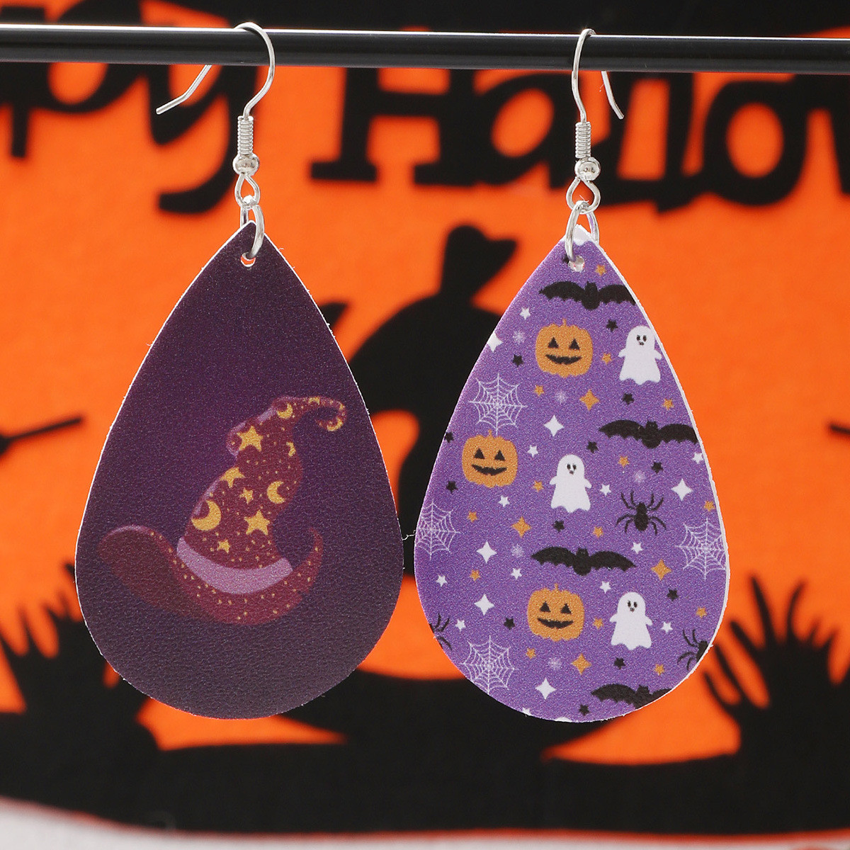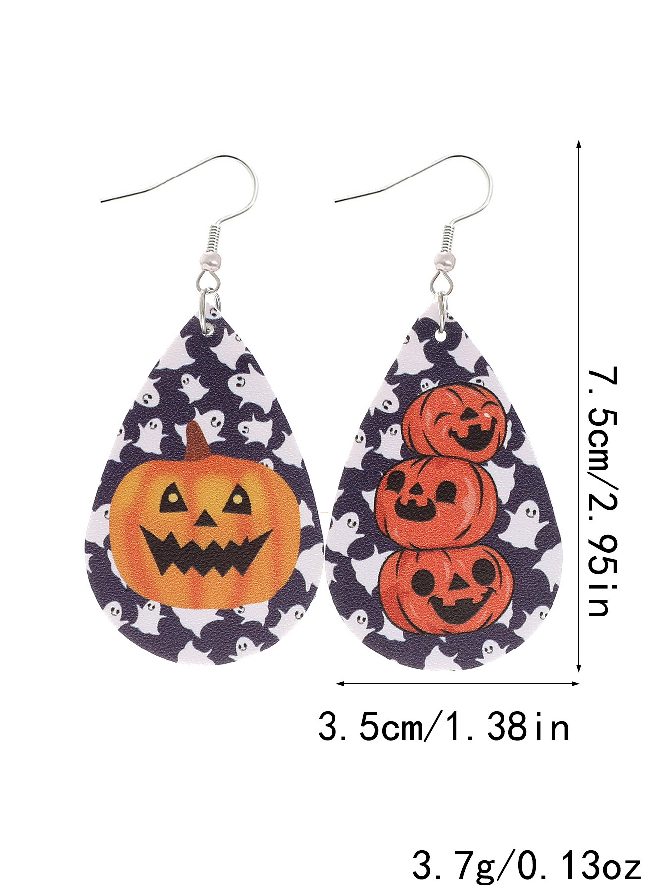 教师节开学季万圣节南瓜鬼巫师帽水滴形皮革女士耳环教师节感恩节