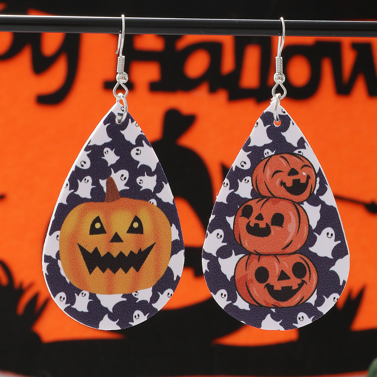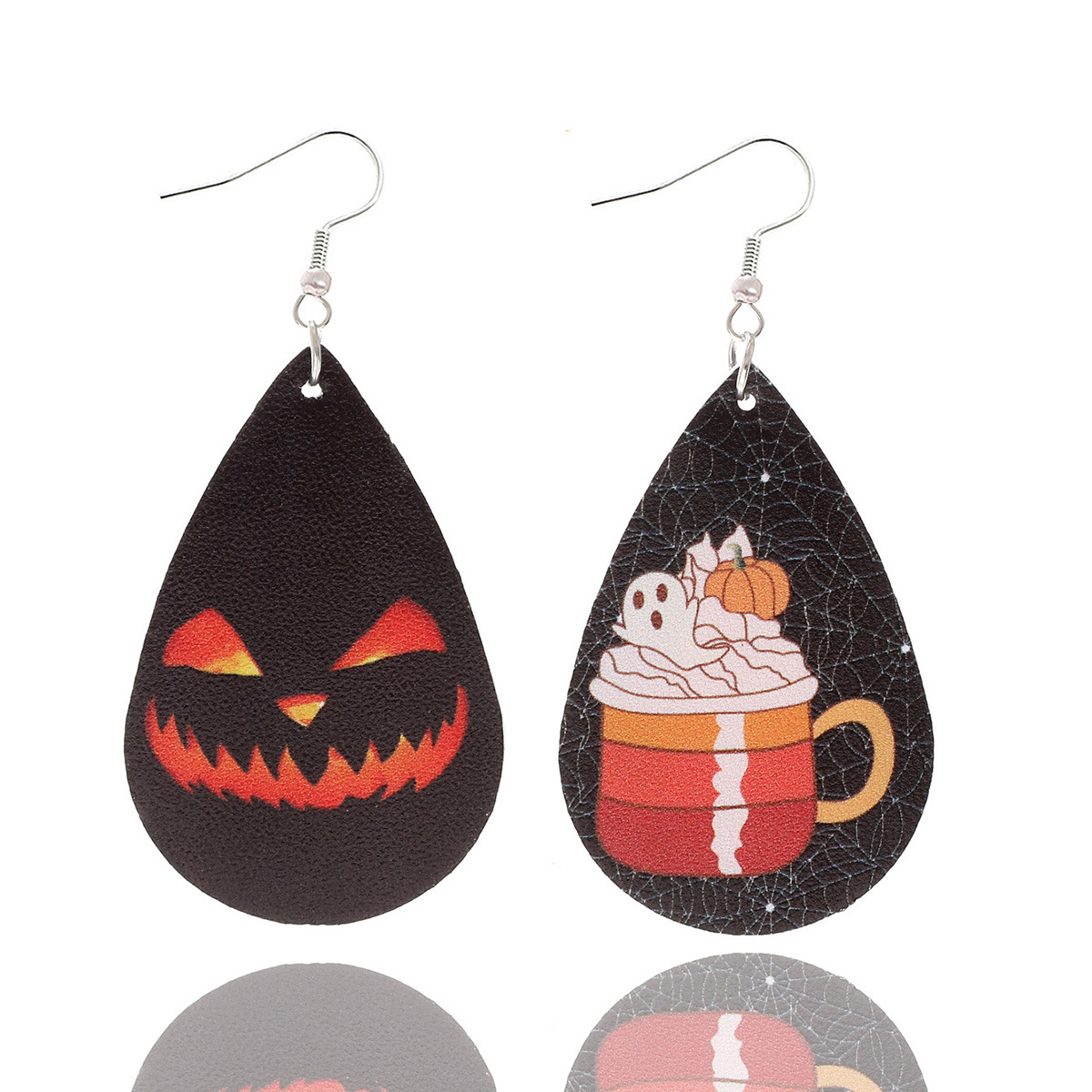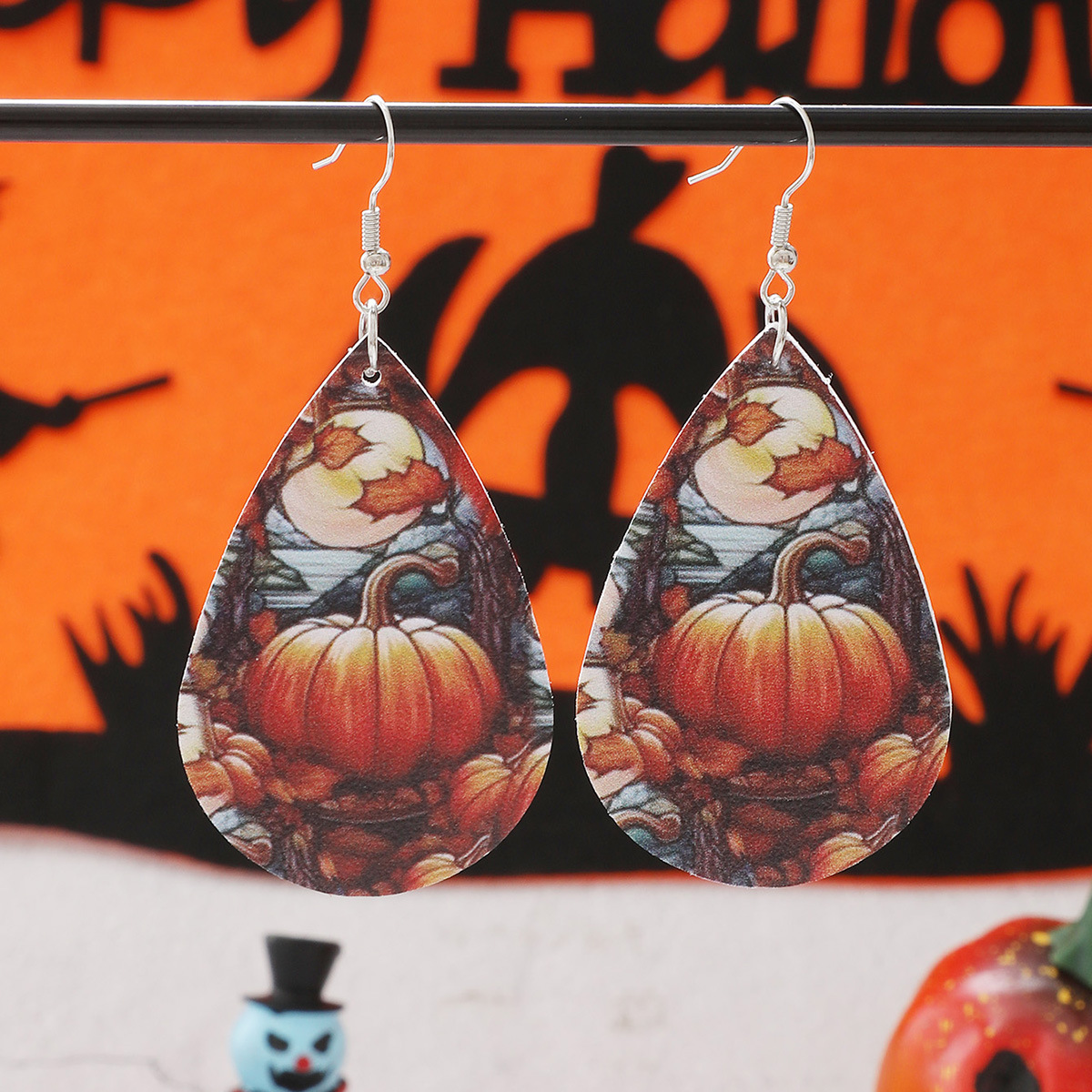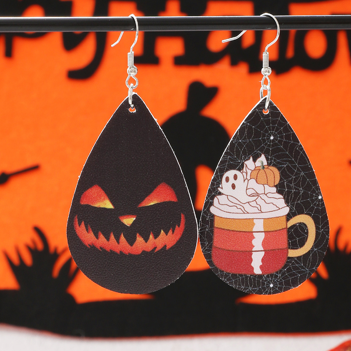 教师节开学季万圣节南瓜鬼巫师帽水滴形皮革女士耳环教师节感恩节