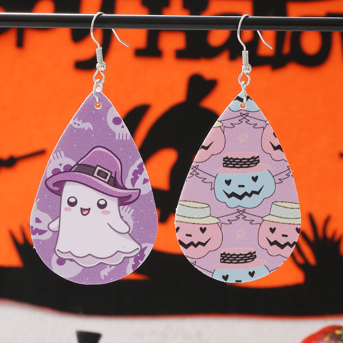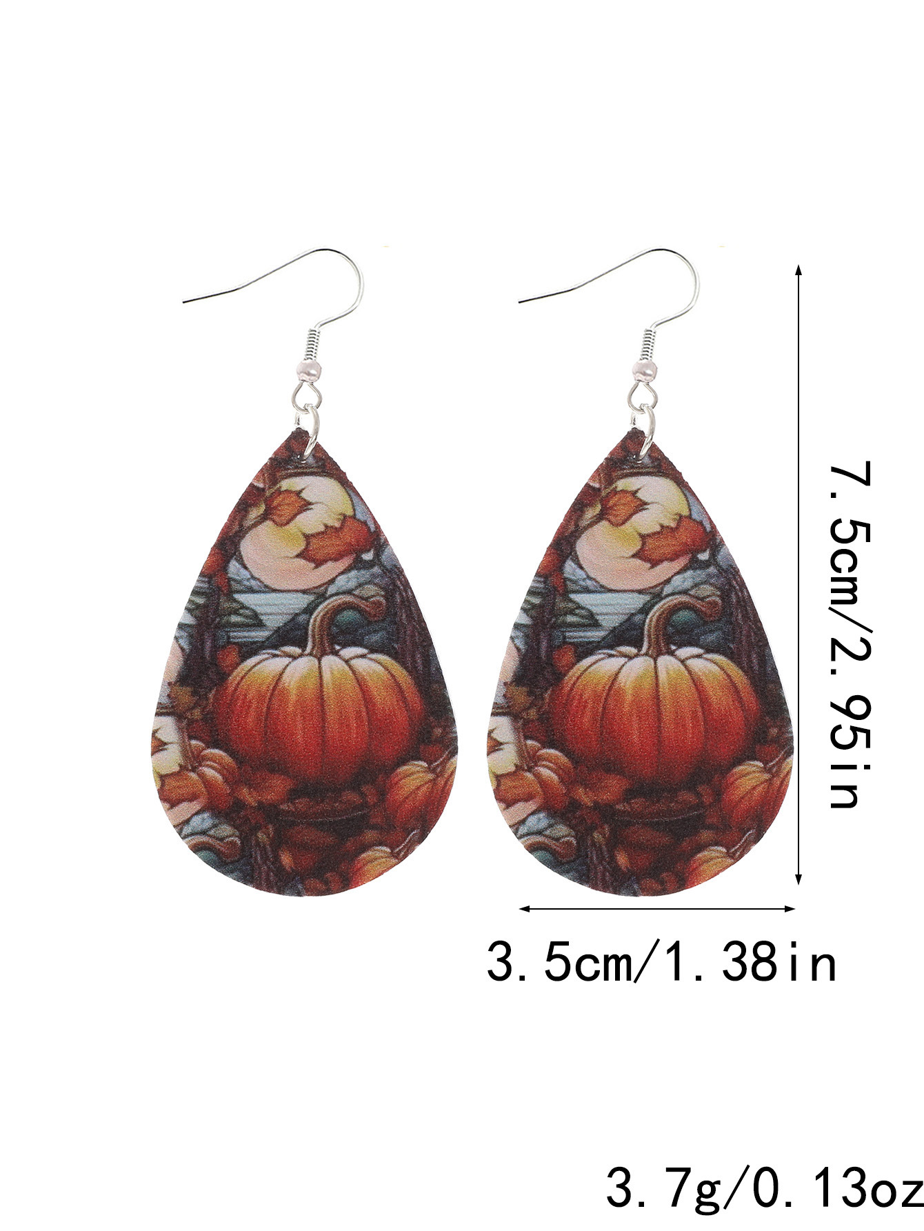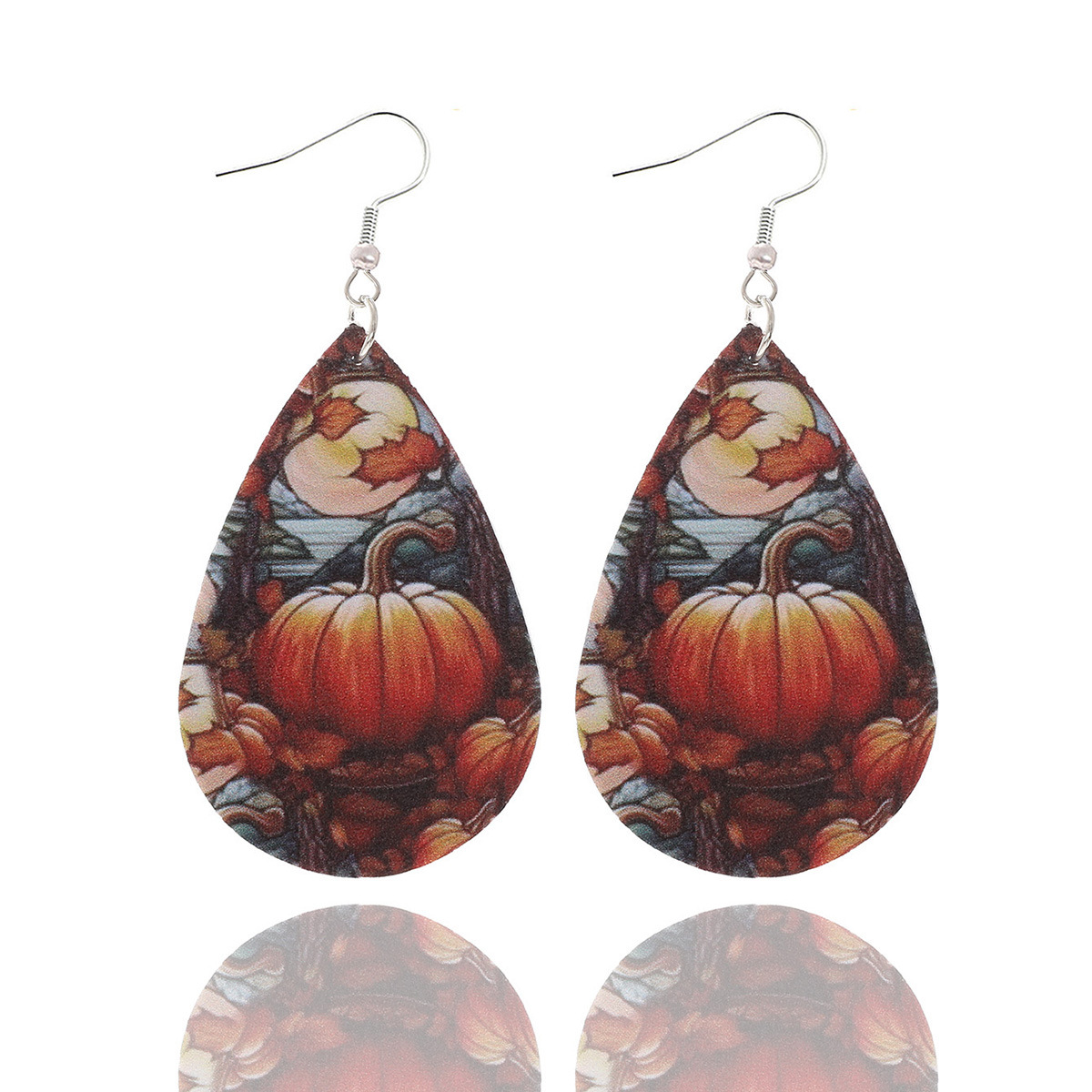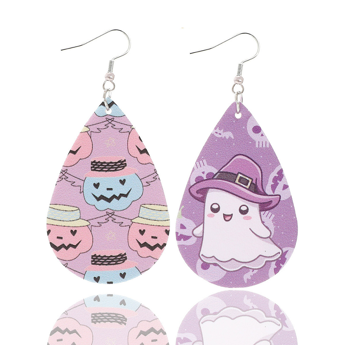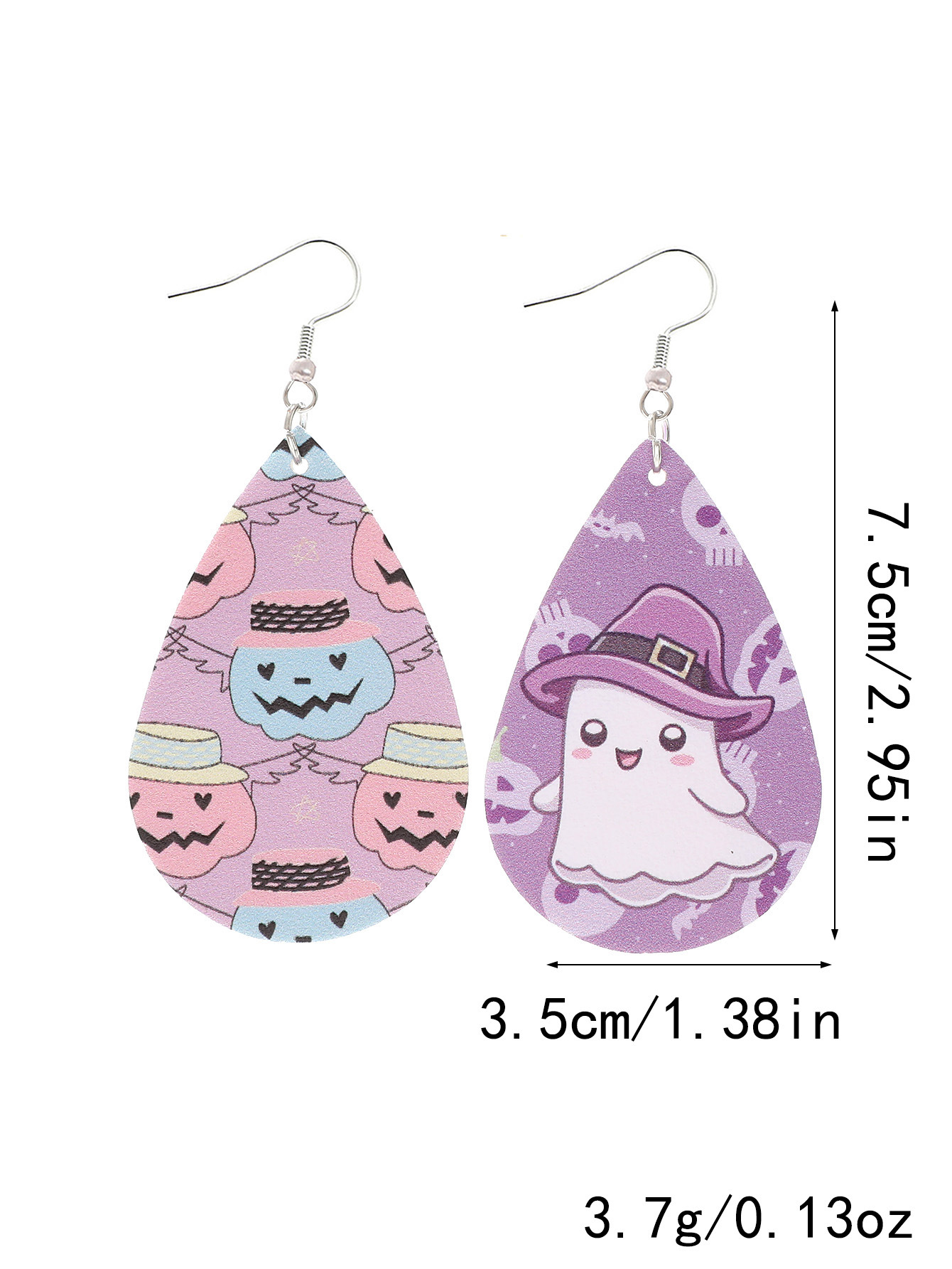 教师节开学季万圣节南瓜鬼巫师帽水滴形皮革女士耳环教师节感恩节