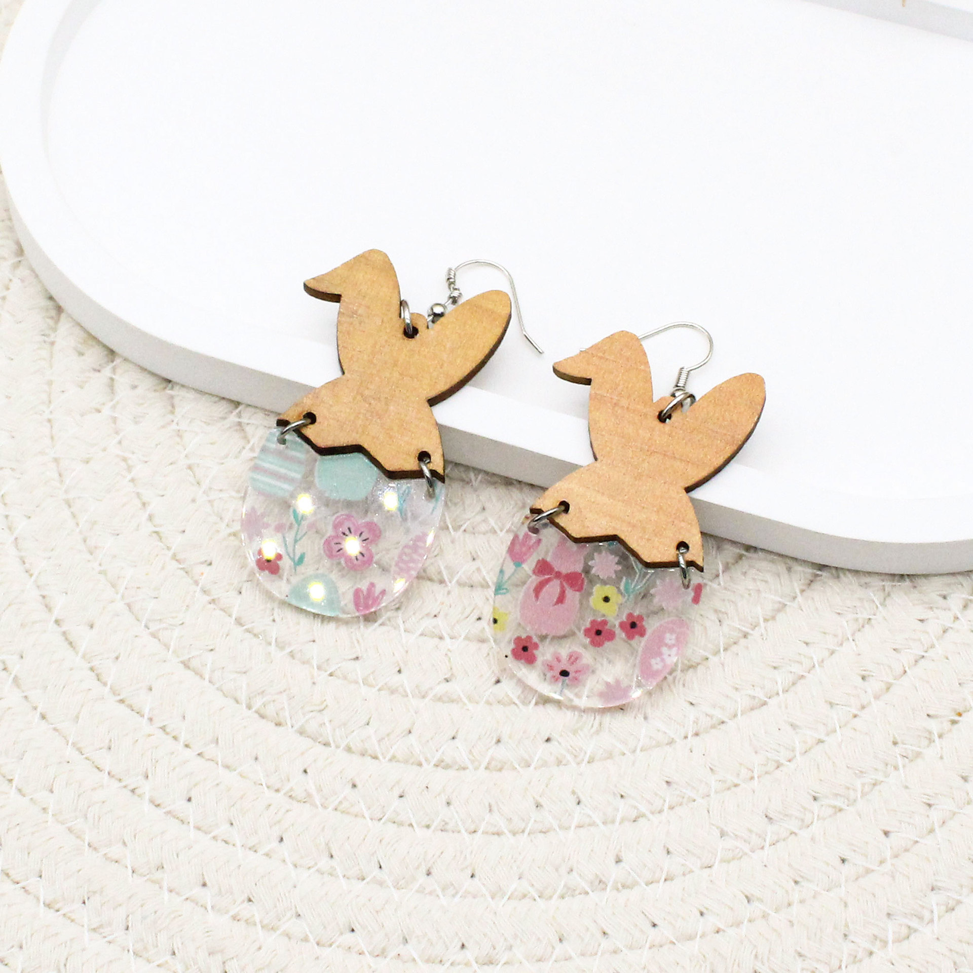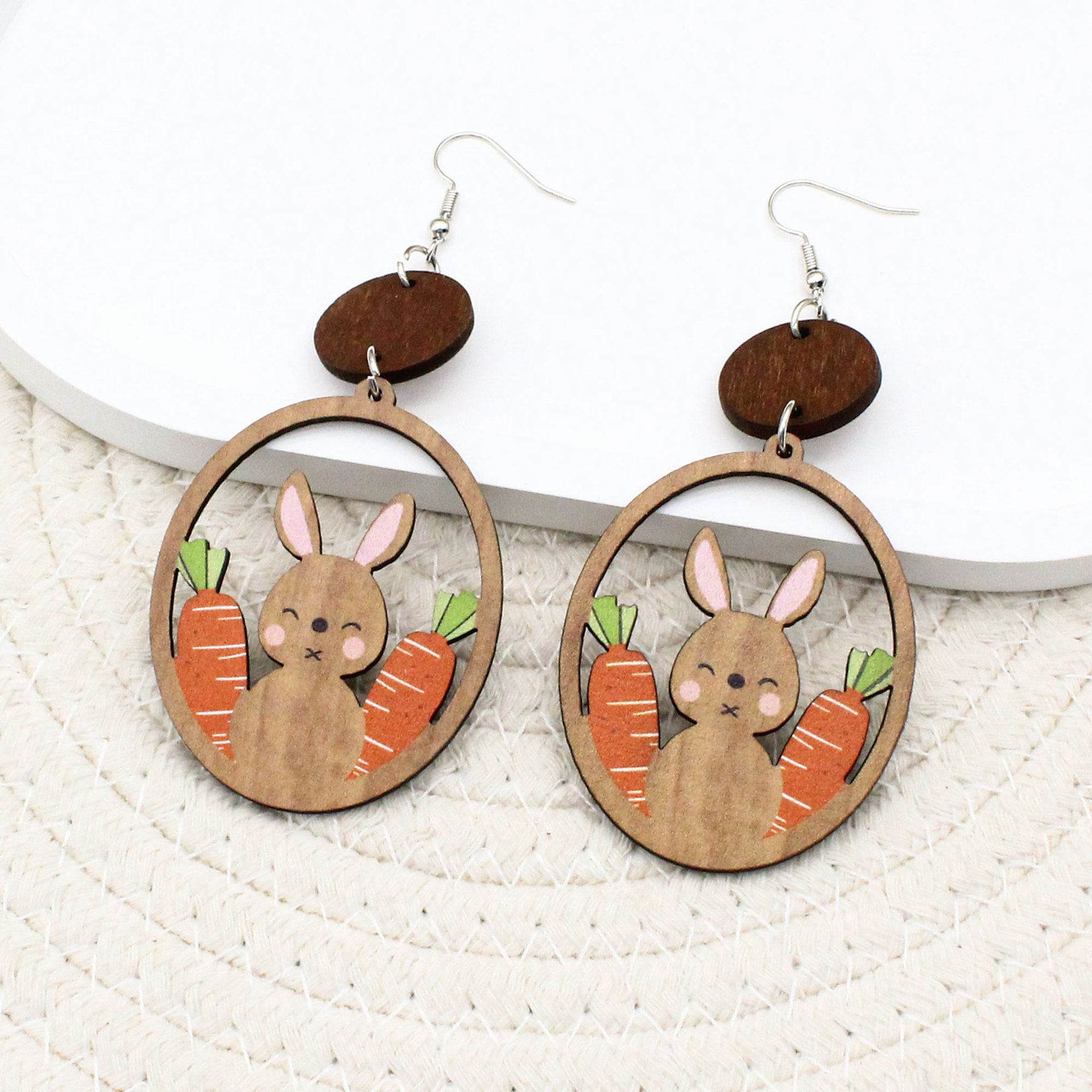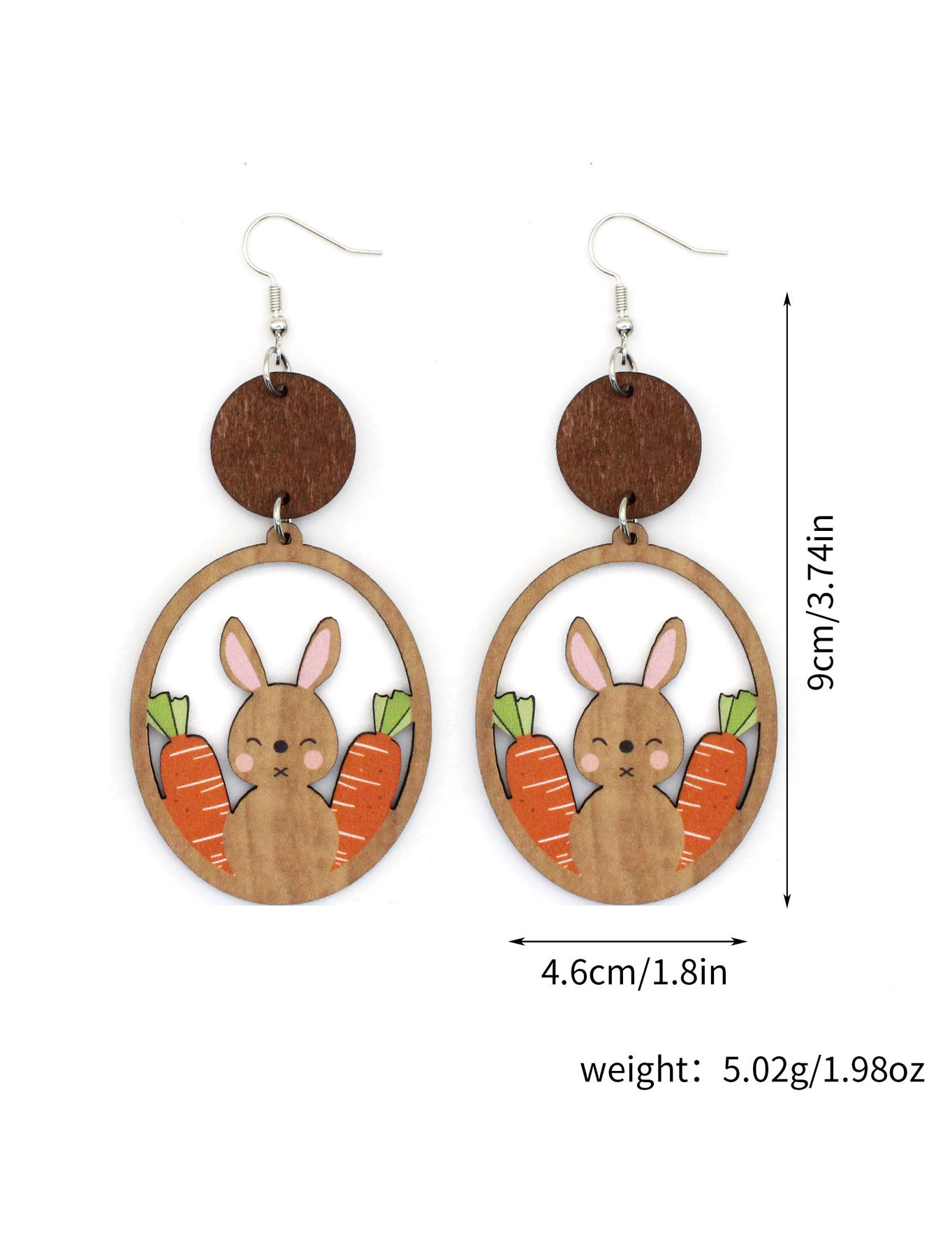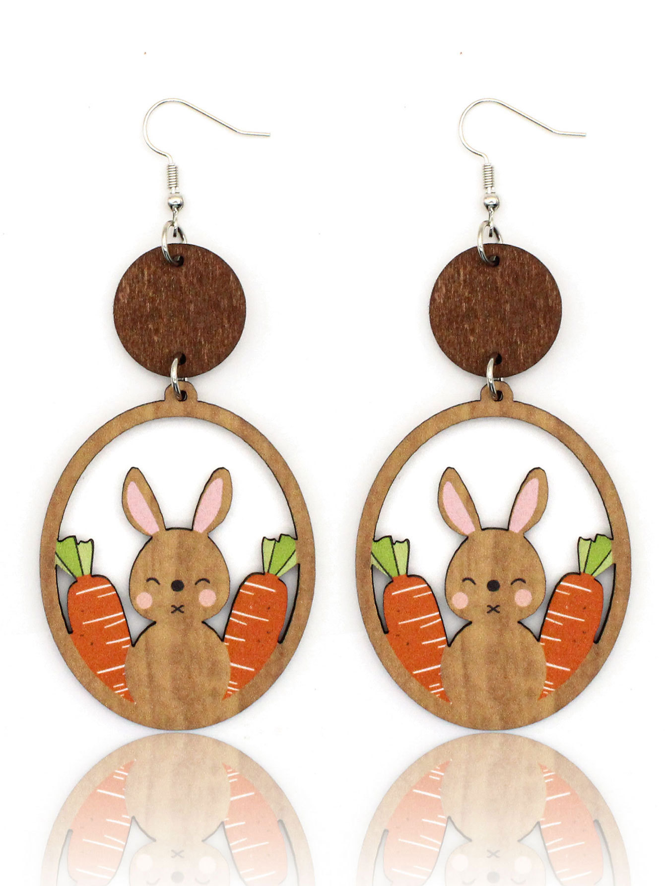 新款个性耳坠卡通可爱兔子花朵胡萝卜木质亚克力搭配无忧精致耳坠