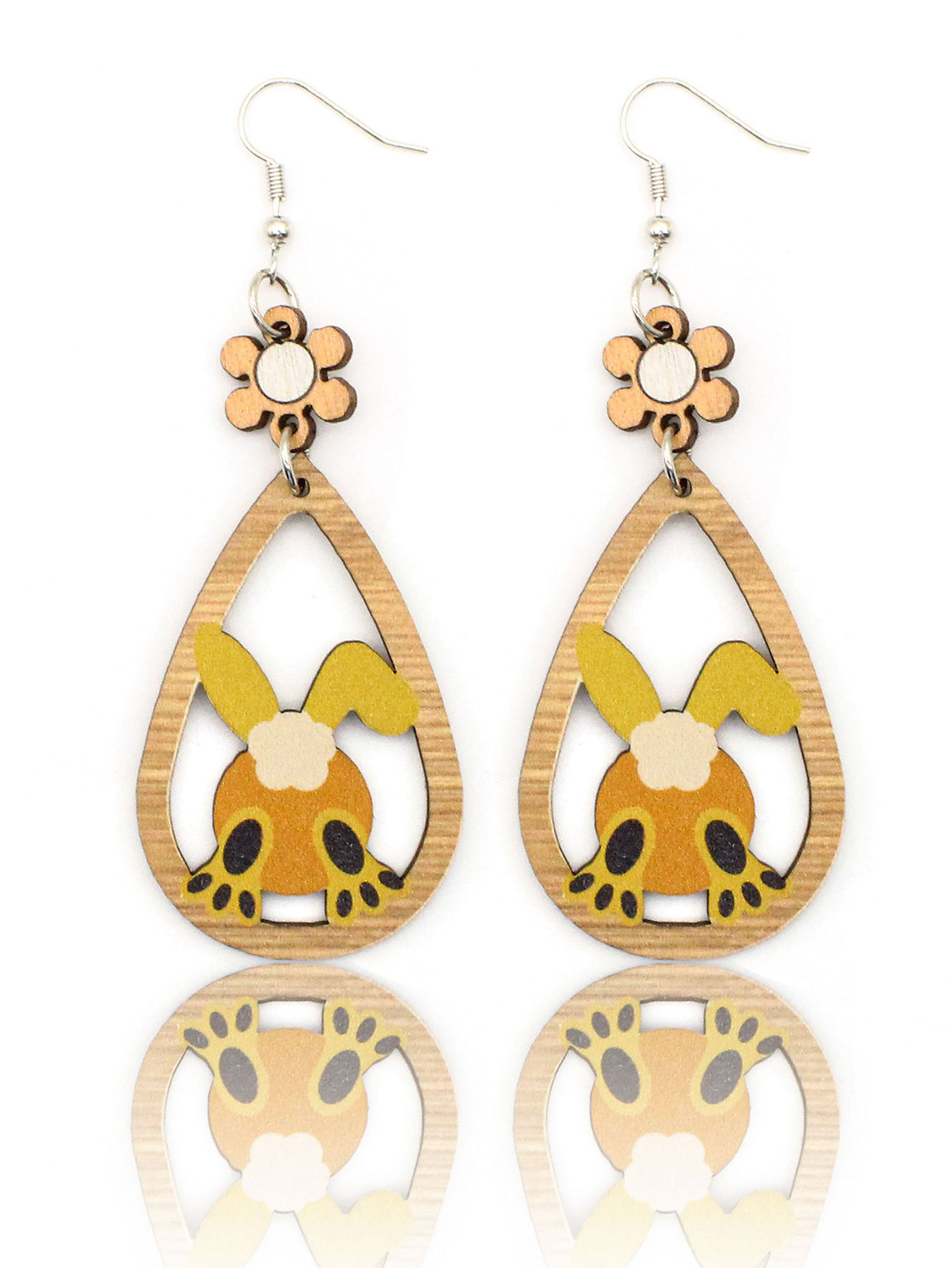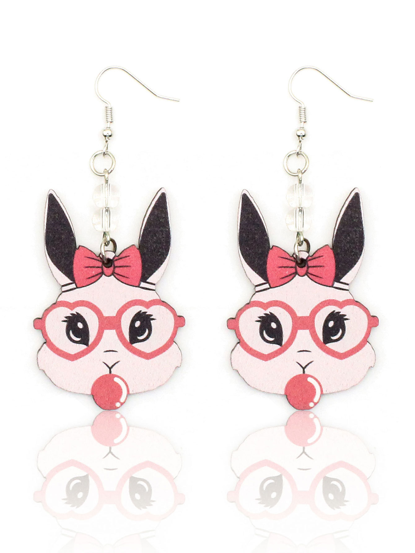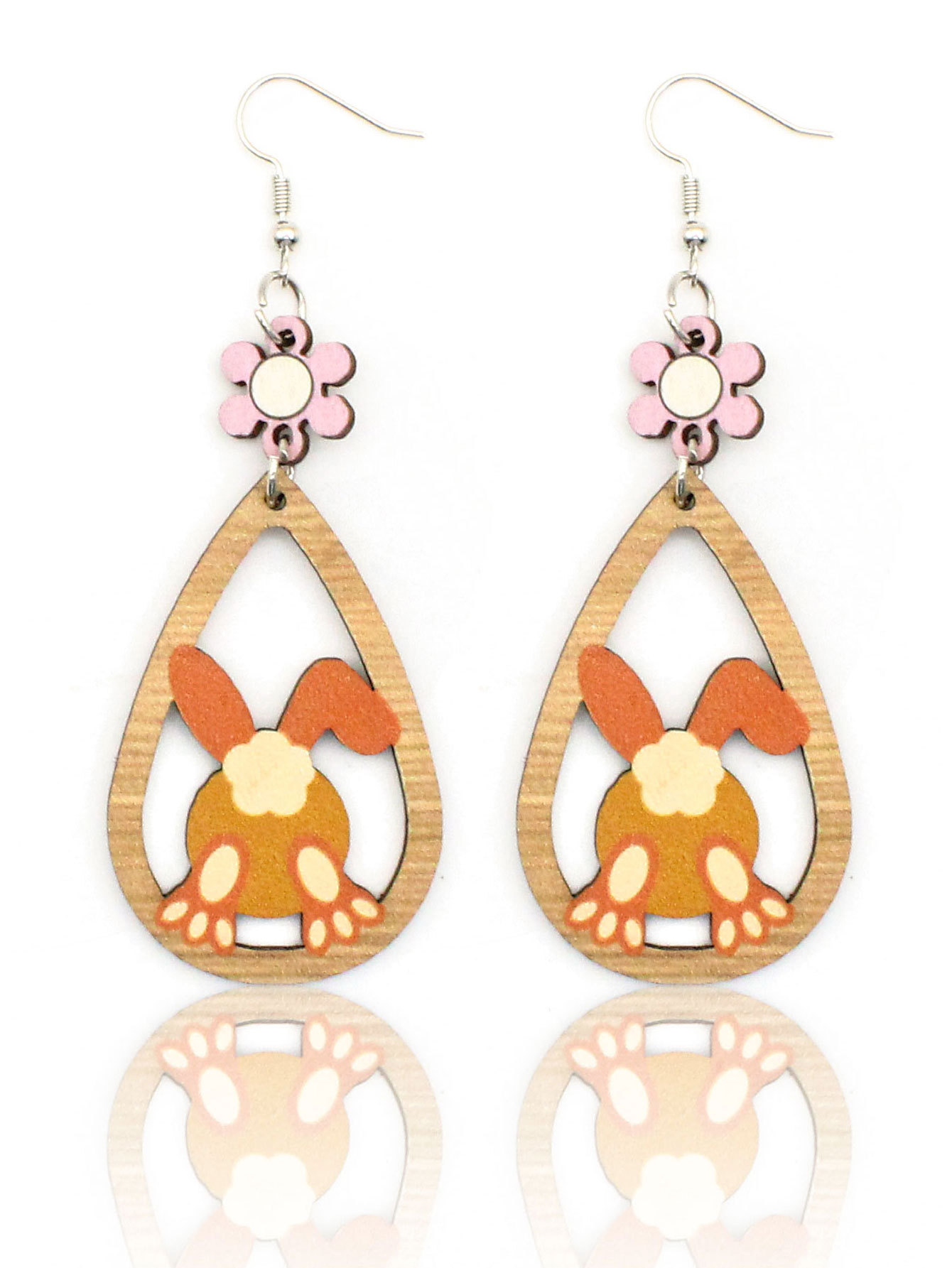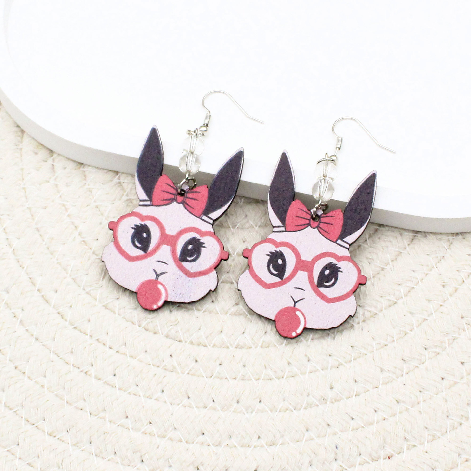 新款个性耳坠卡通可爱兔子花朵胡萝卜木质亚克力搭配无忧精致耳坠