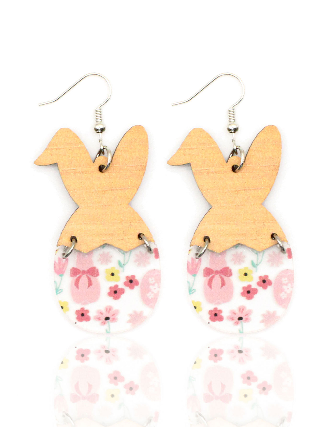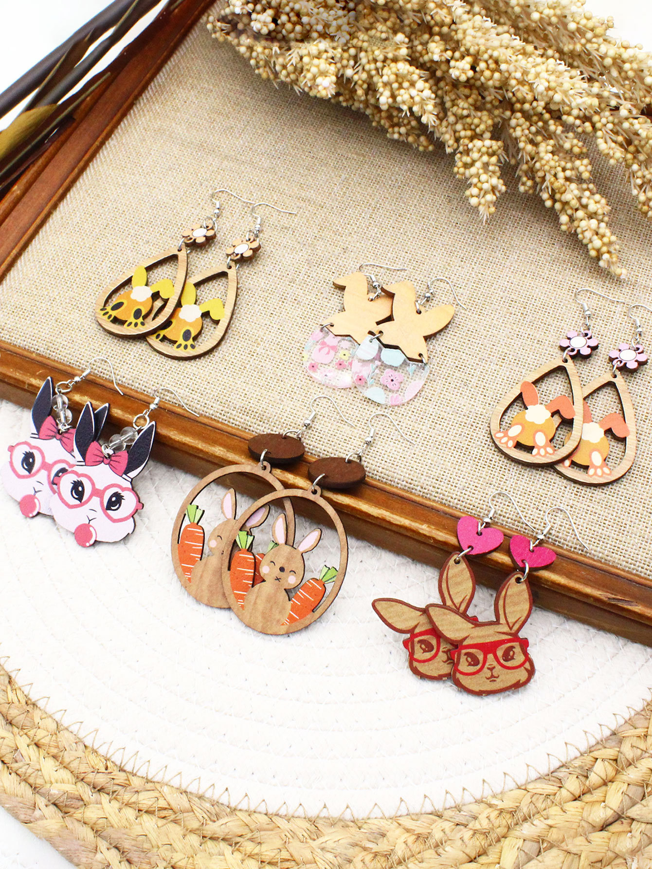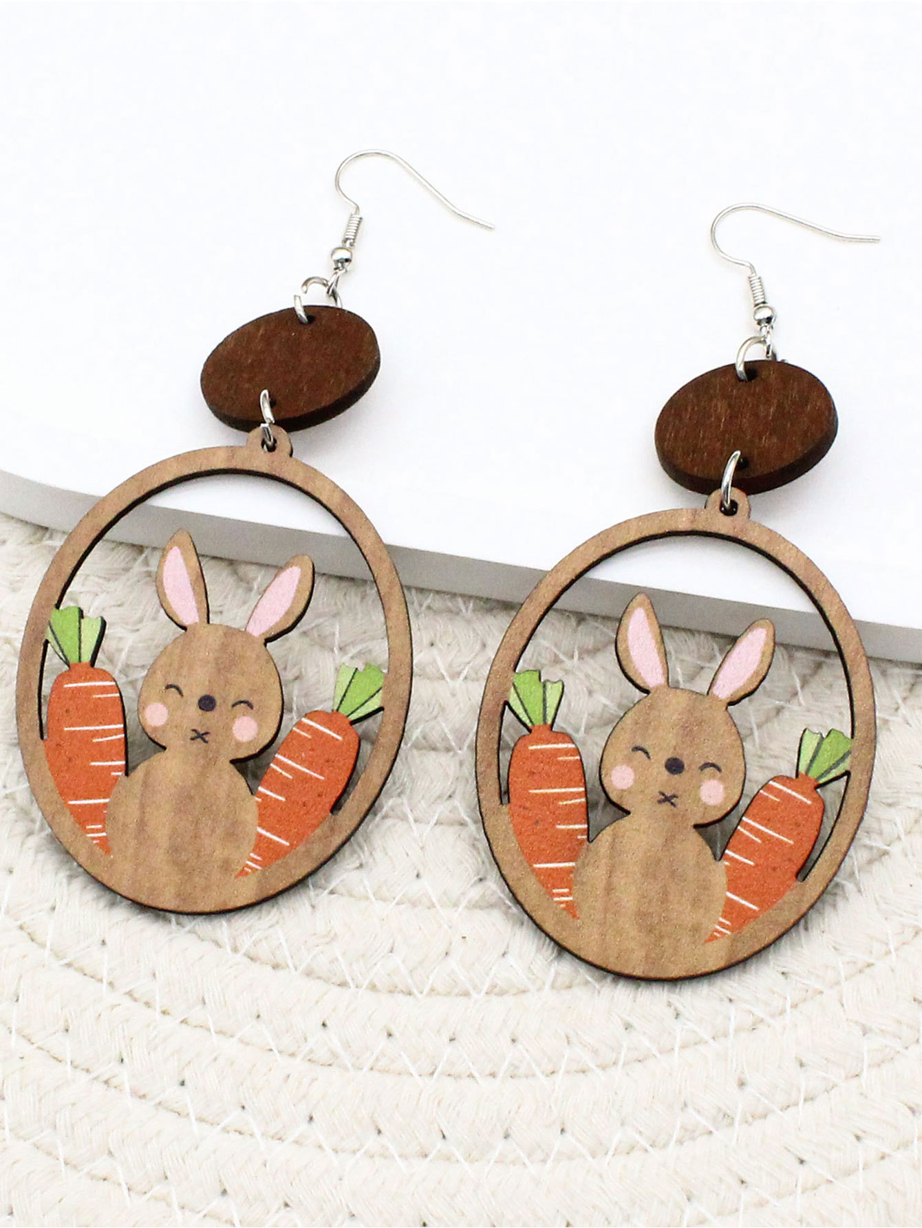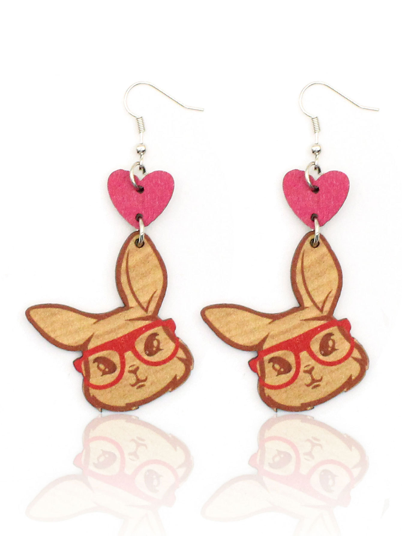 新款个性耳坠卡通可爱兔子花朵胡萝卜木质亚克力搭配无忧精致耳坠