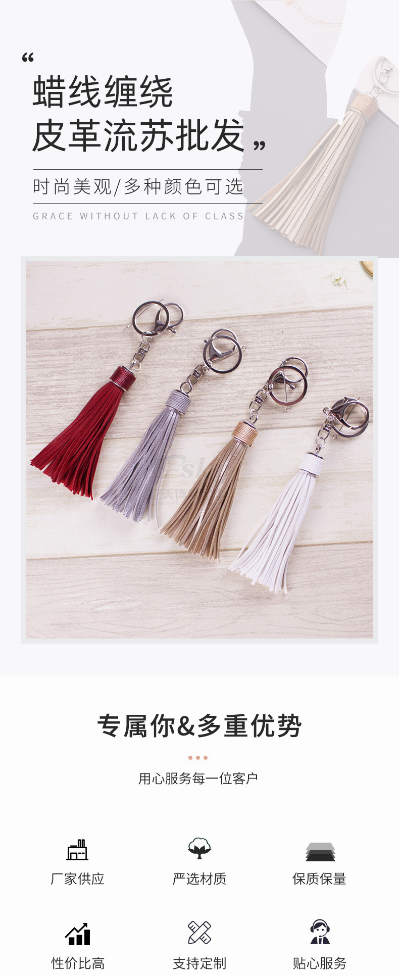 蜡线合金礼品皮革流苏汽车钥匙扣女包包挂件钥匙链饰品亚马逊diy