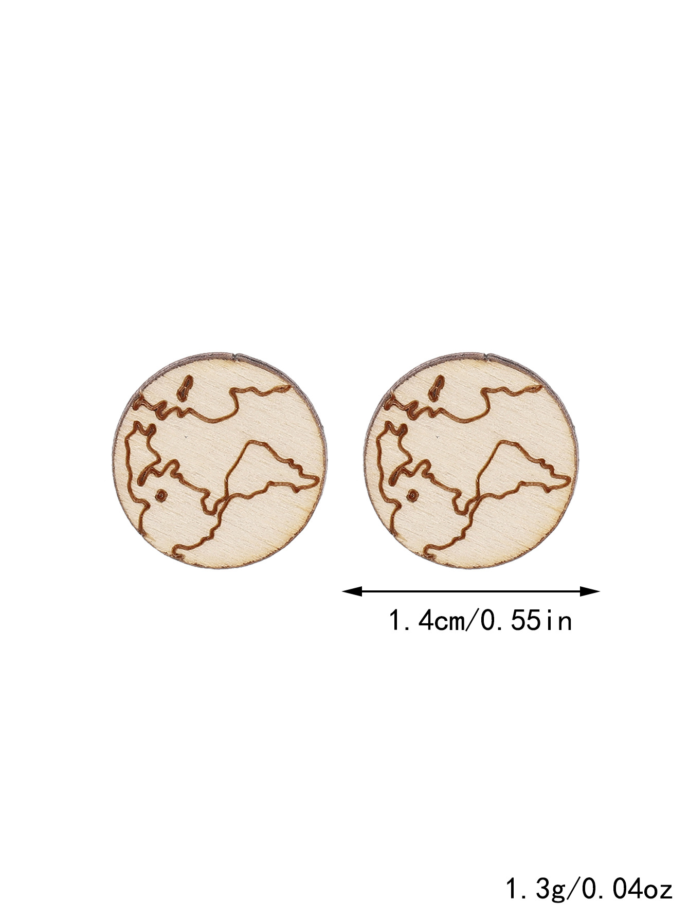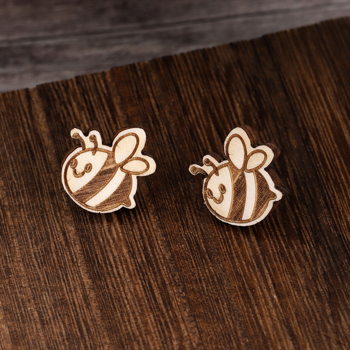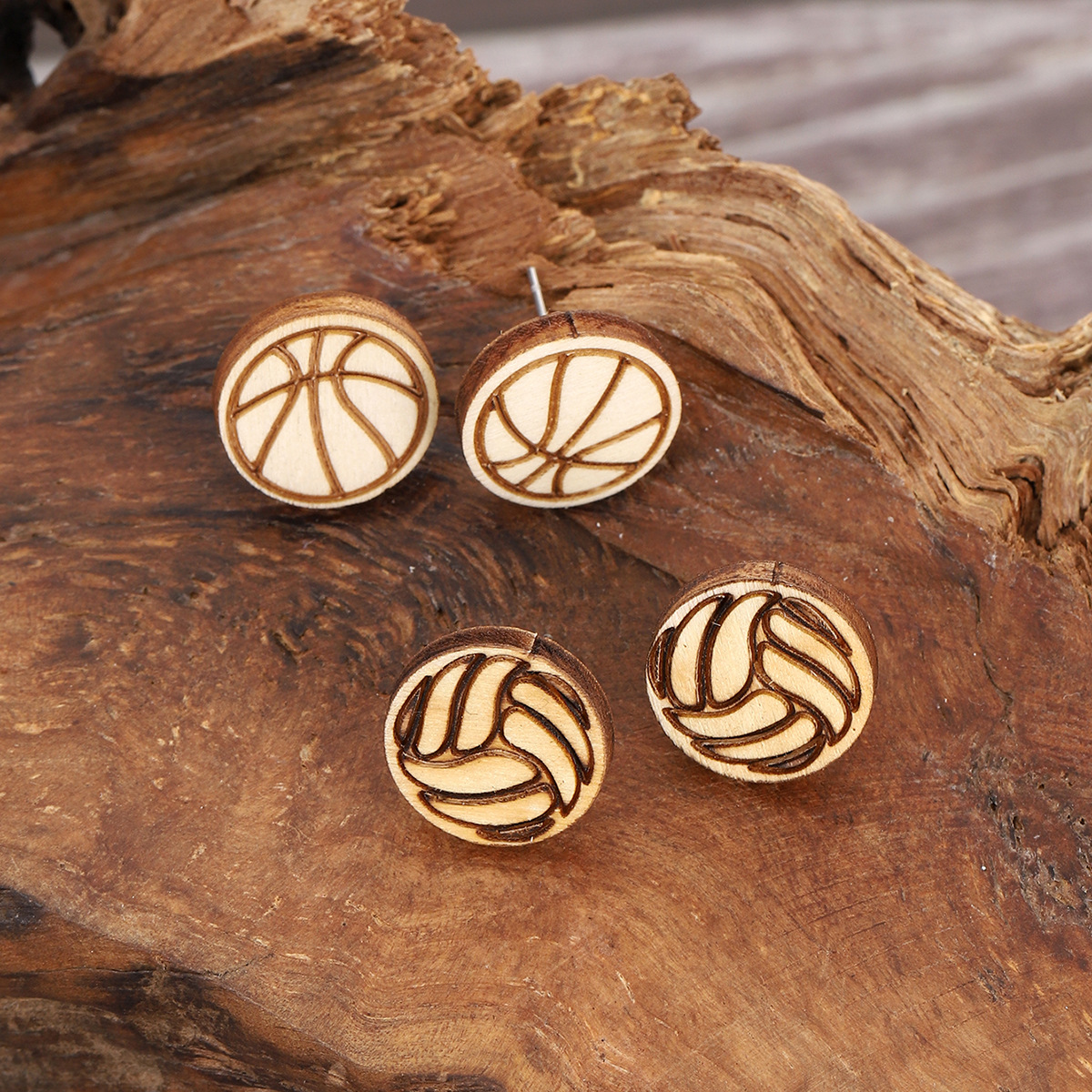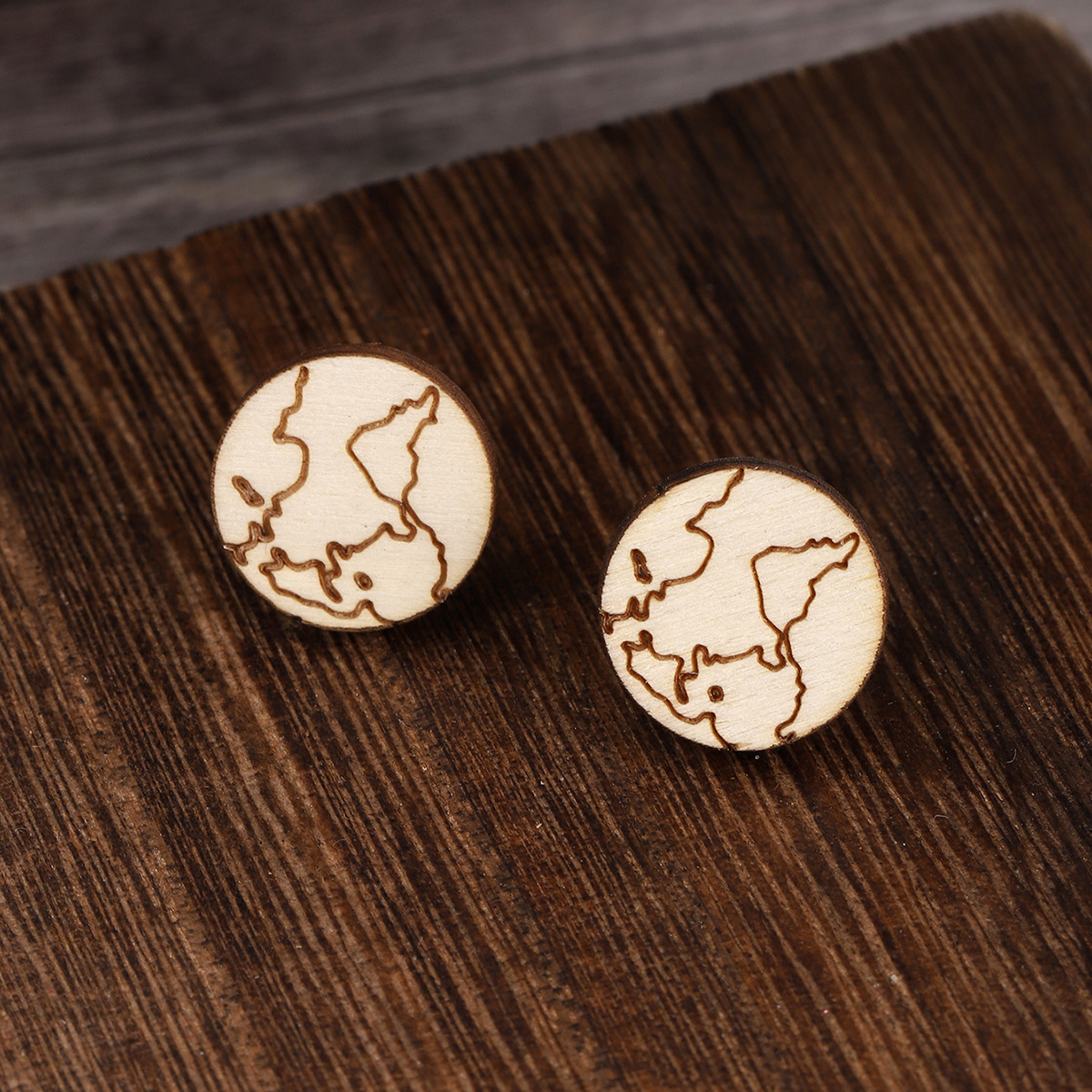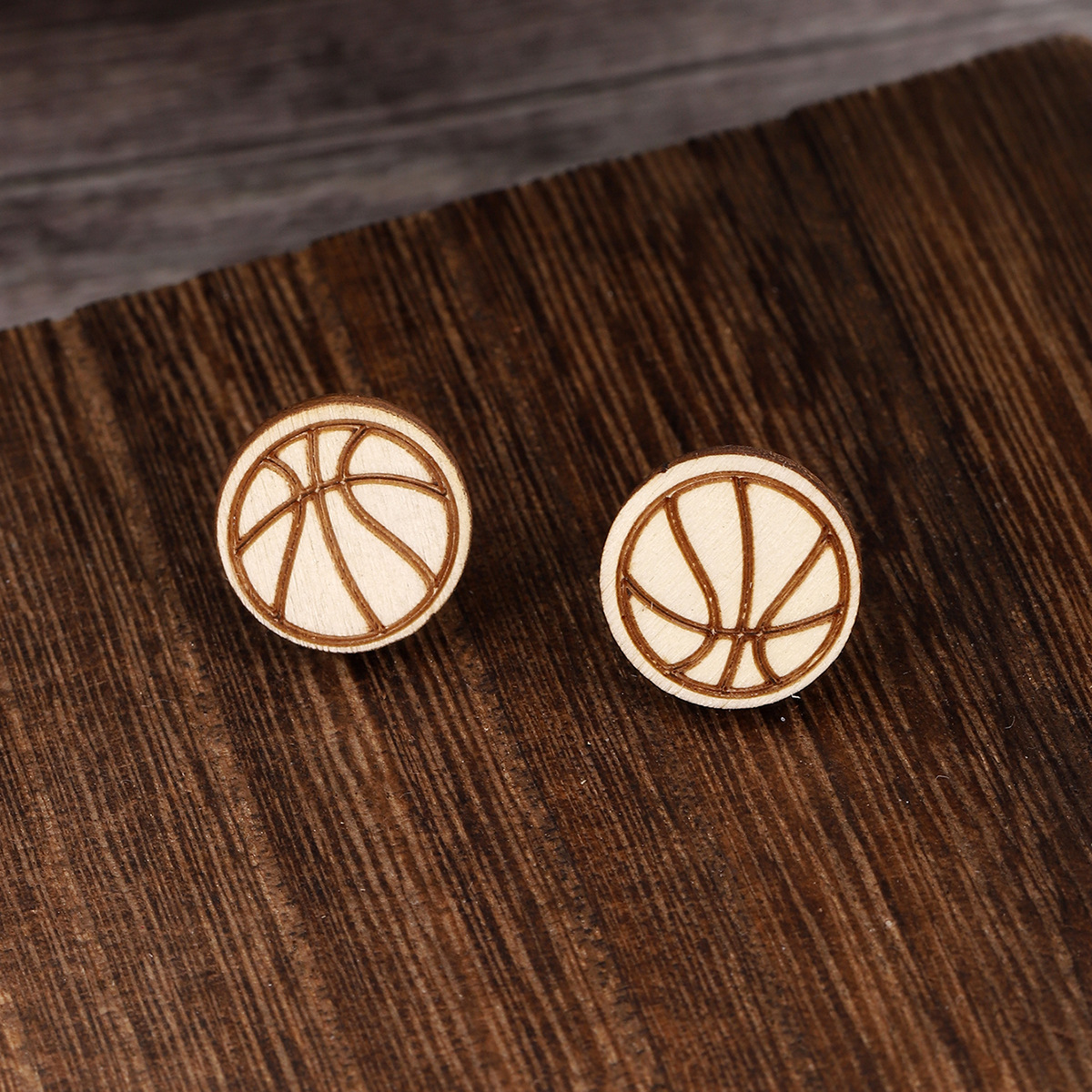 新款运动风足球小蜜蜂蜂巢地图木质耳钉创意圆形个性雕刻耳饰