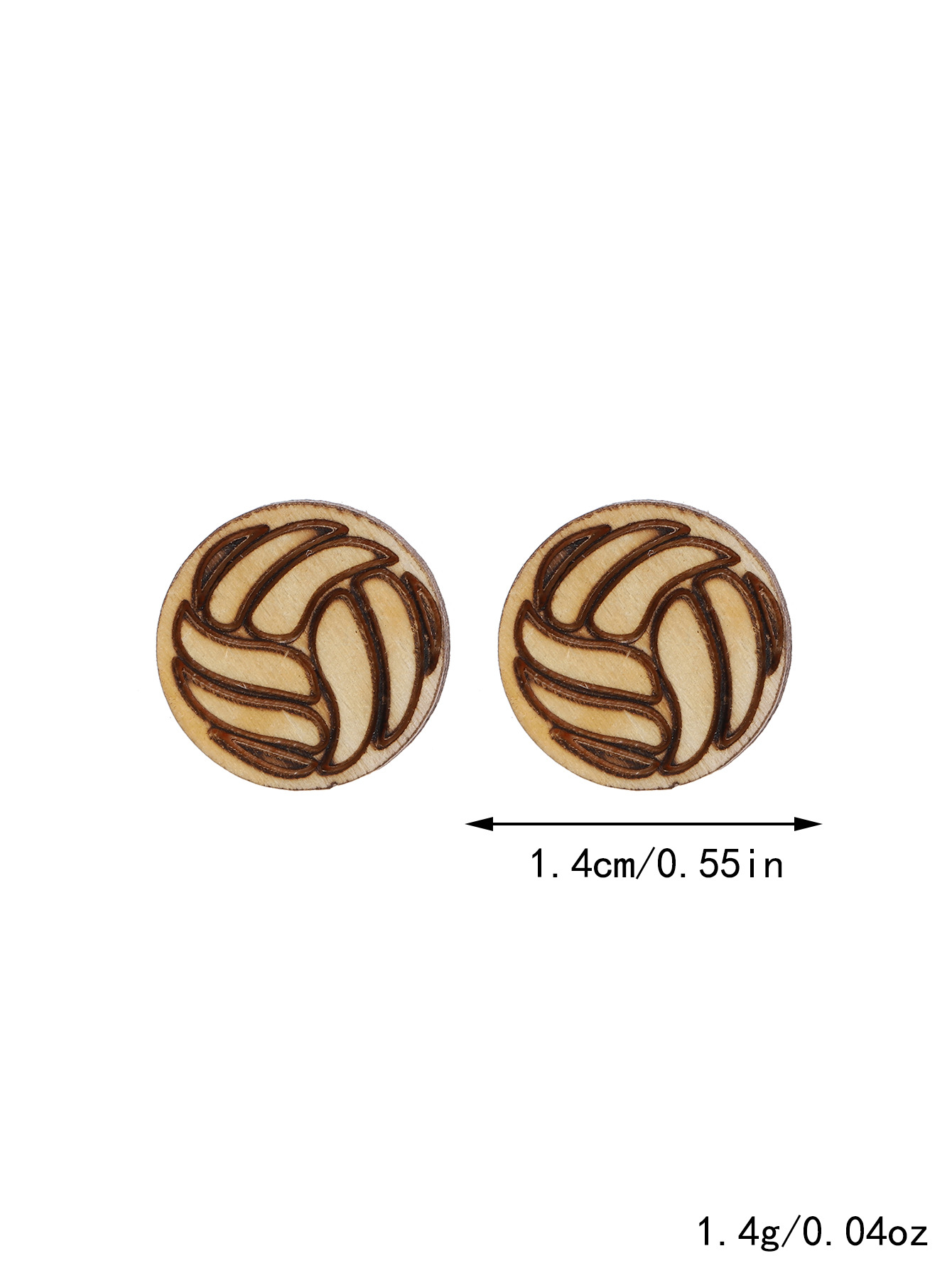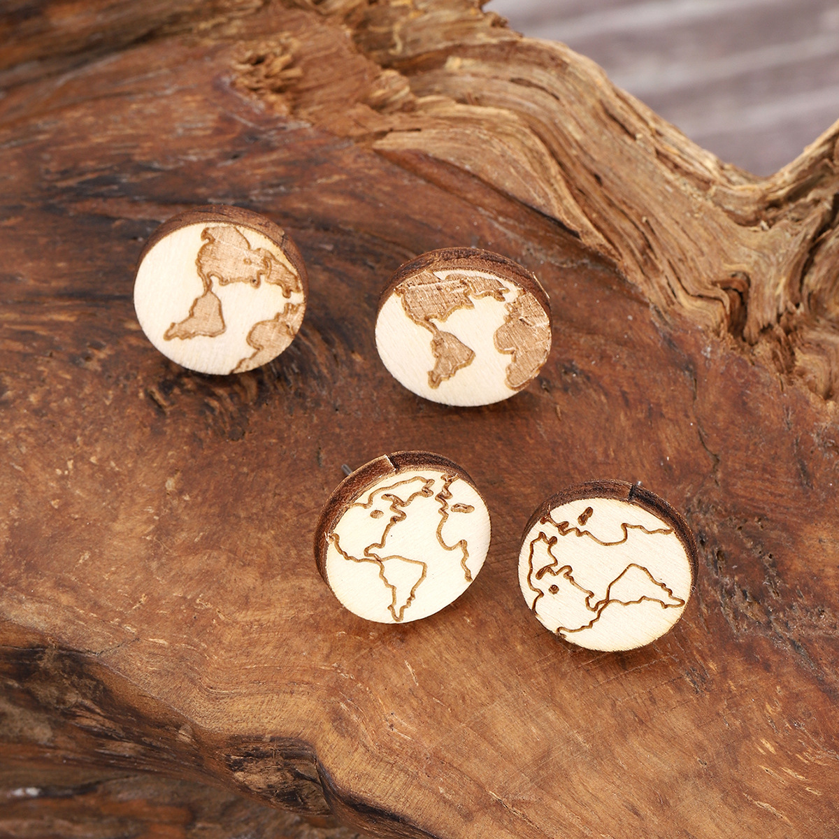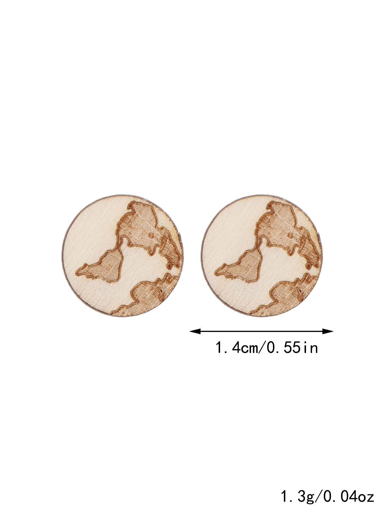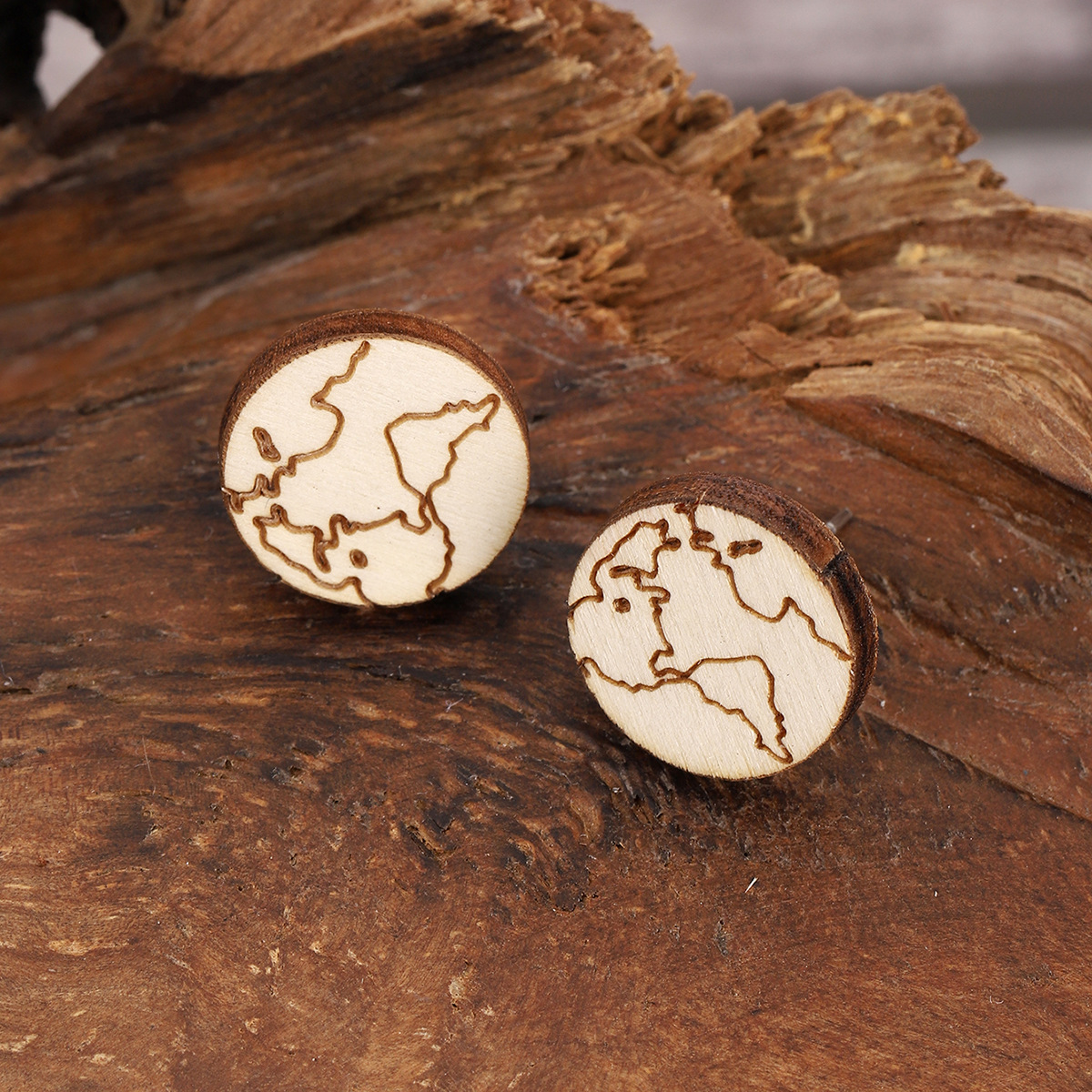 新款运动风足球小蜜蜂蜂巢地图木质耳钉创意圆形个性雕刻耳饰