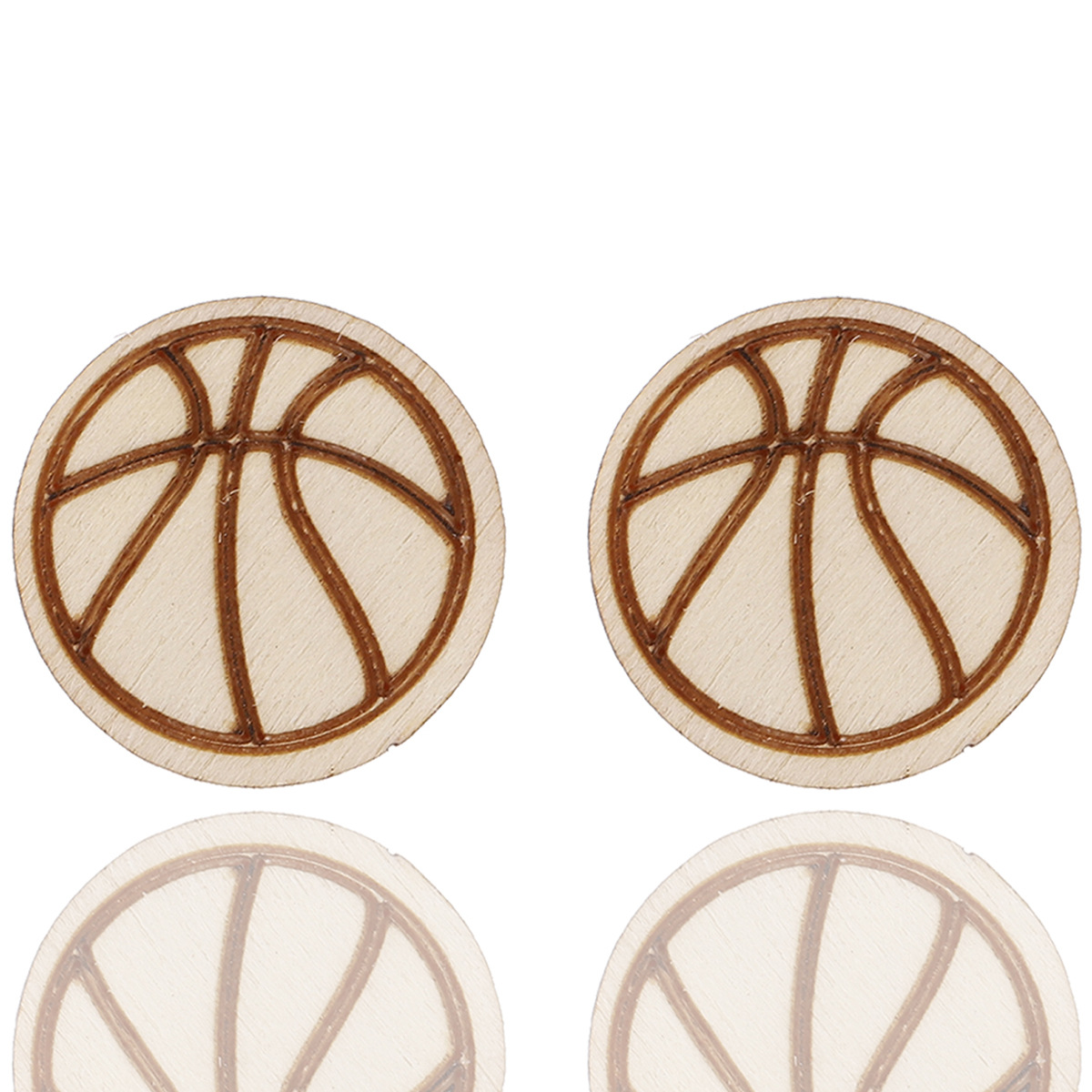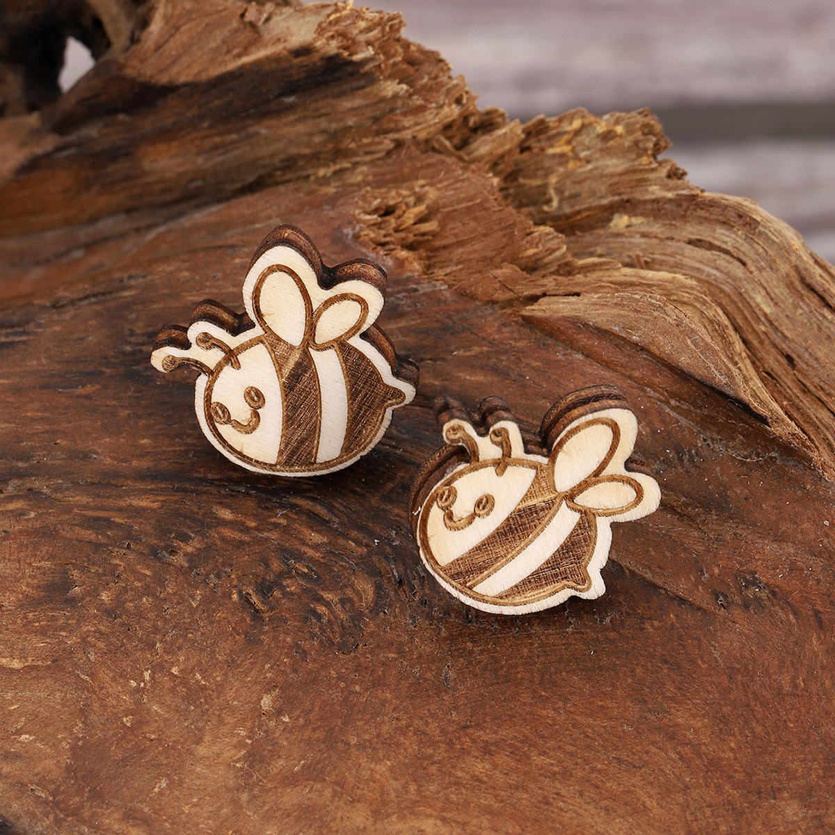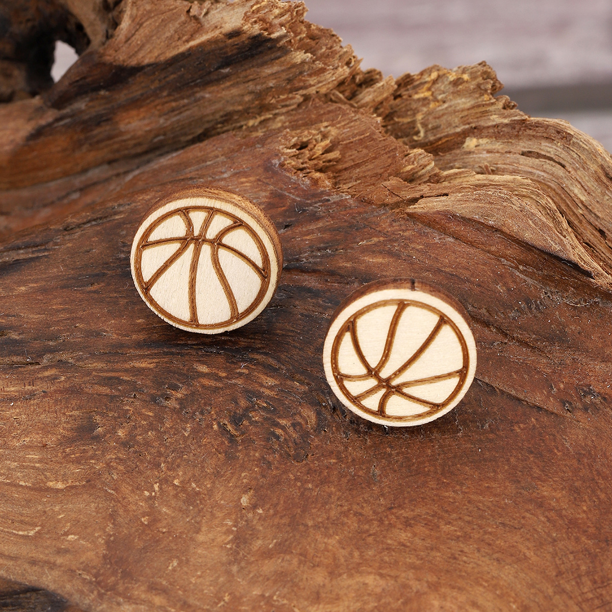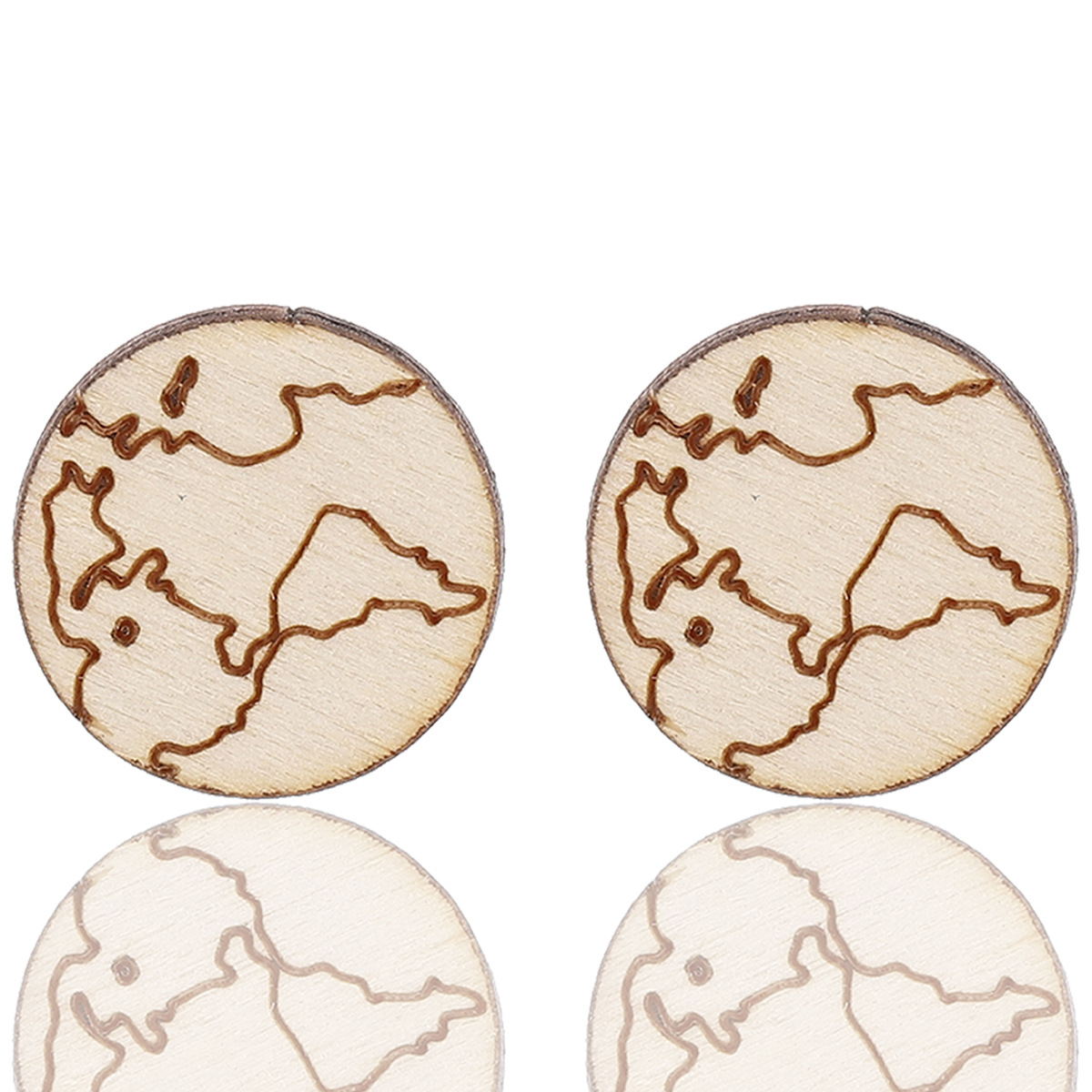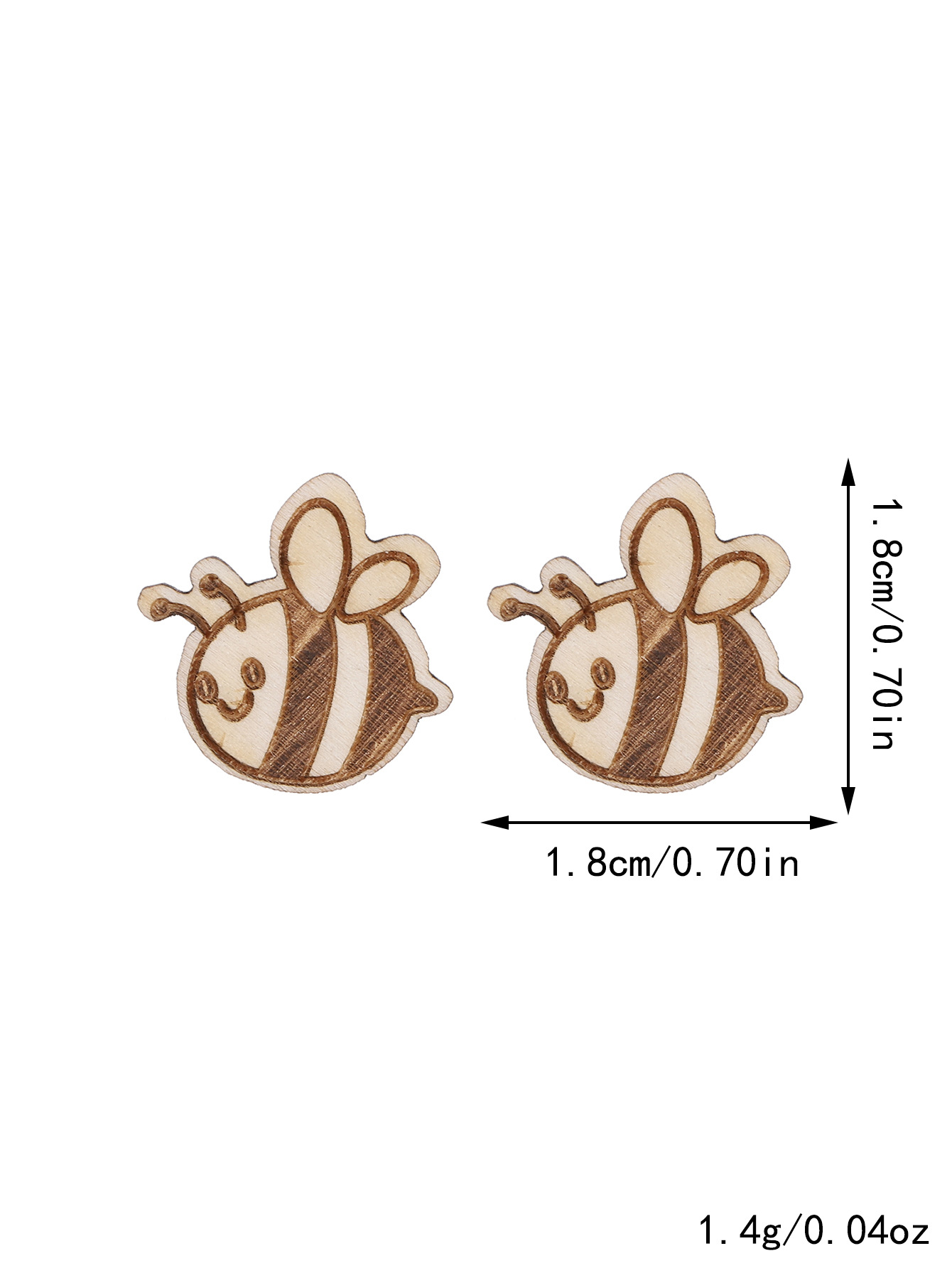 新款运动风足球小蜜蜂蜂巢地图木质耳钉创意圆形个性雕刻耳饰