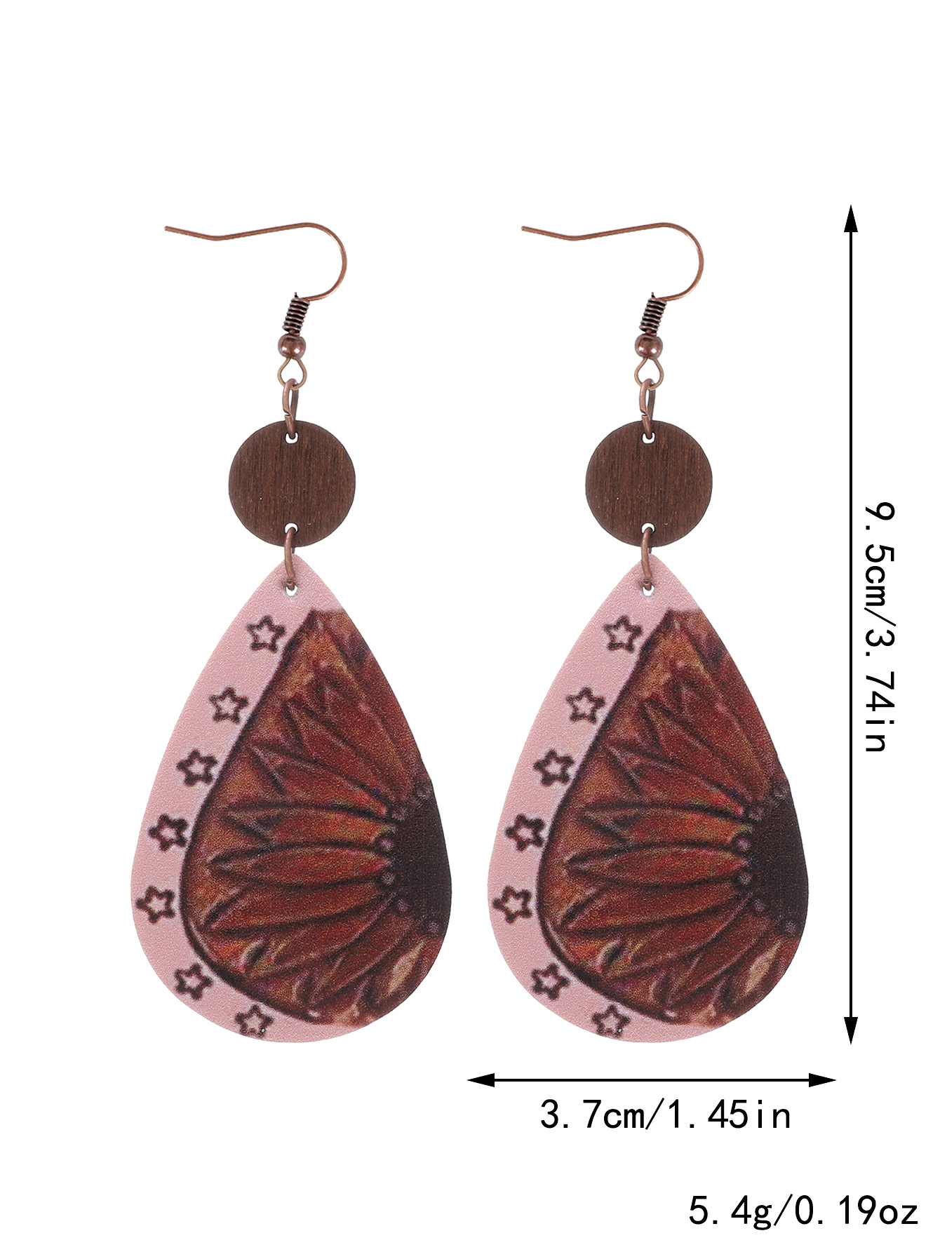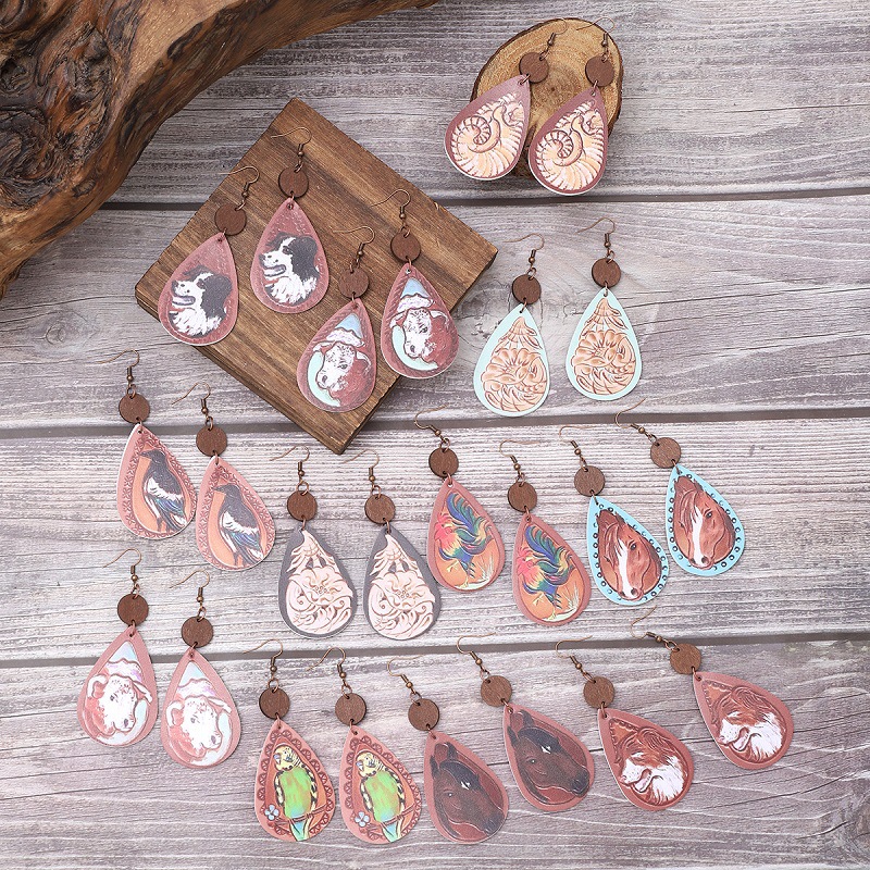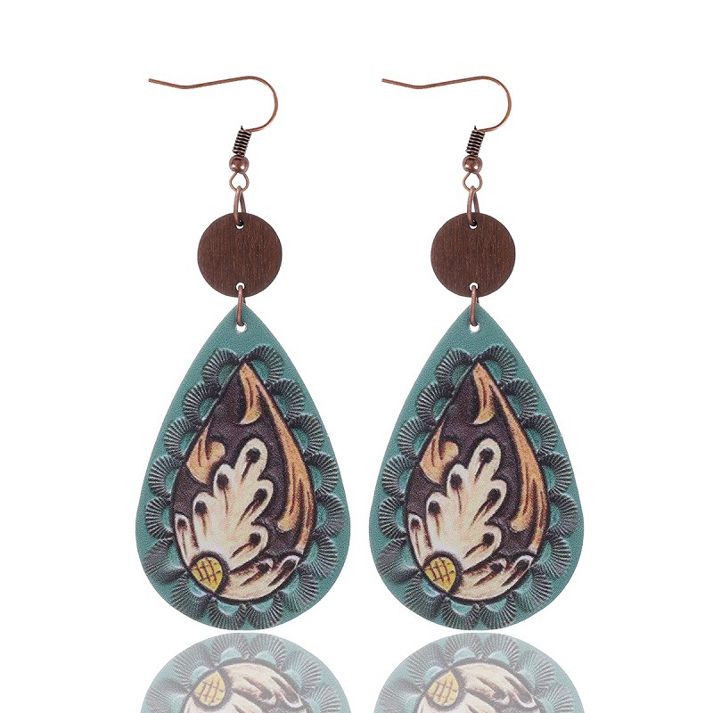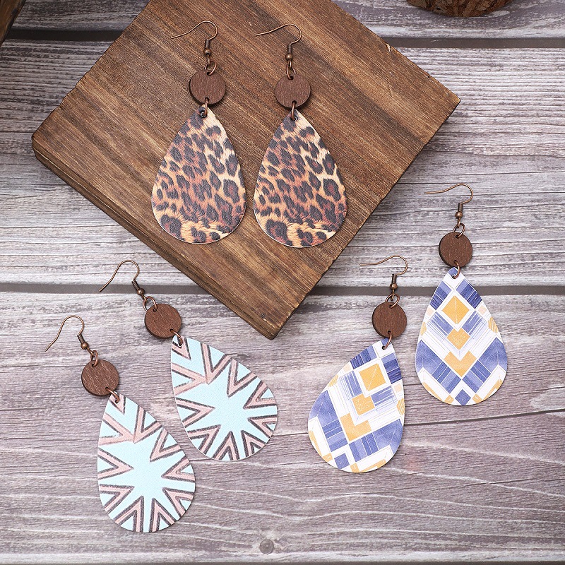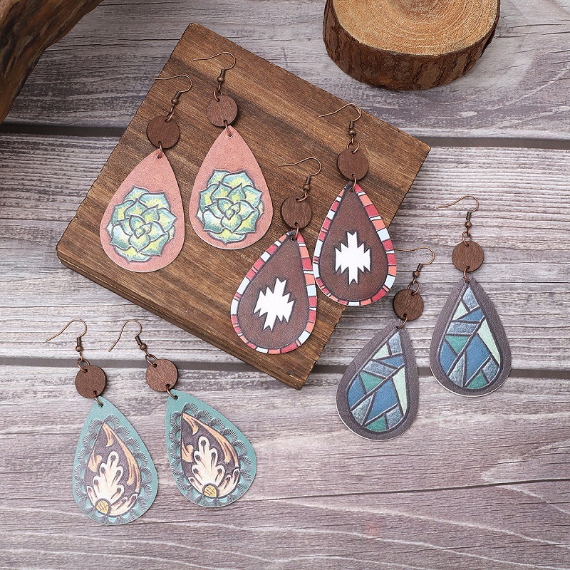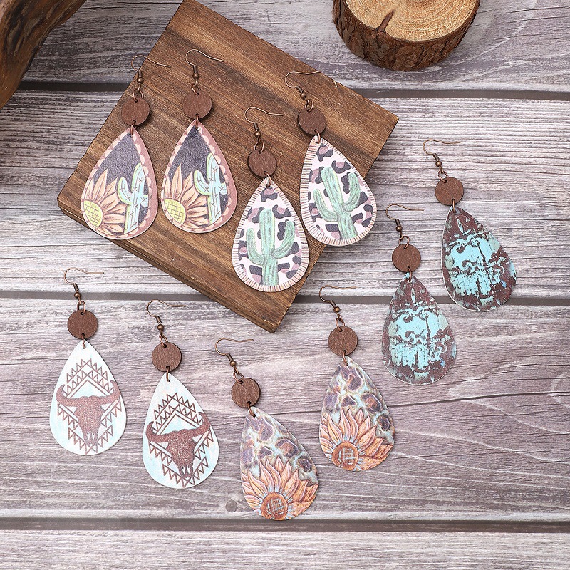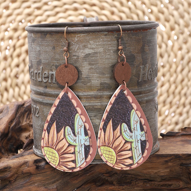 跨境不规则图形仙人掌图案皮革耳环女士耳坠速卖通亚马逊
