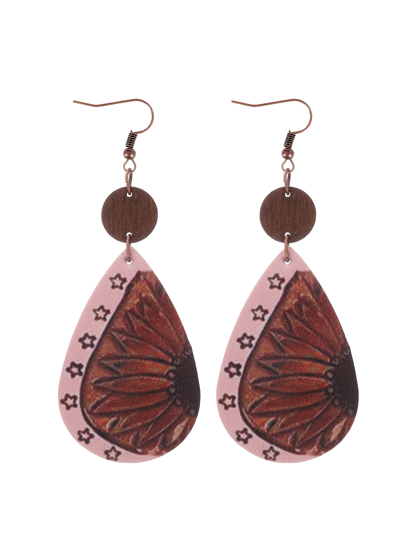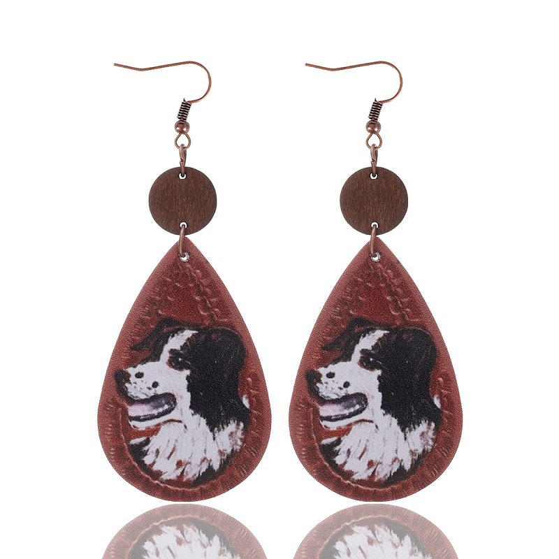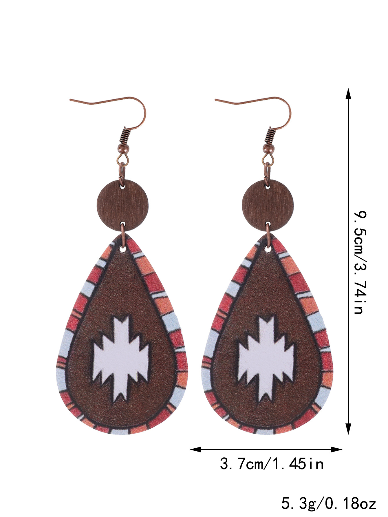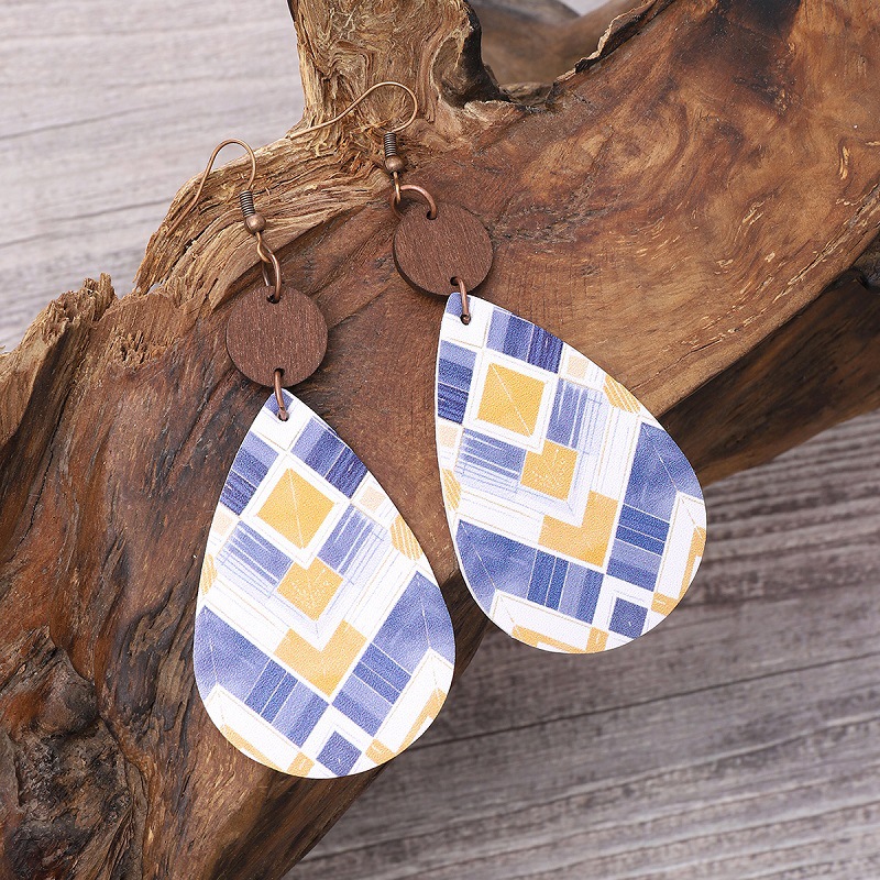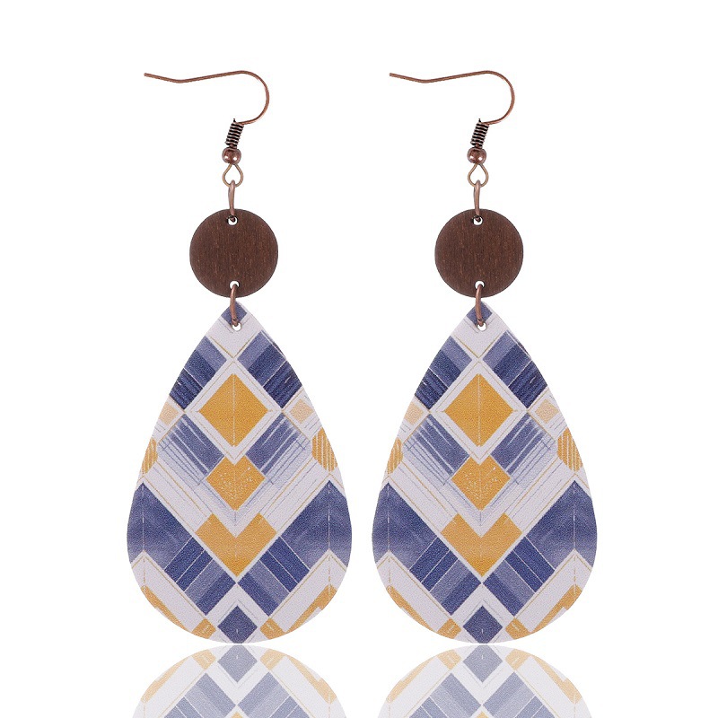 跨境不规则图形仙人掌图案皮革耳环女士耳坠速卖通亚马逊
