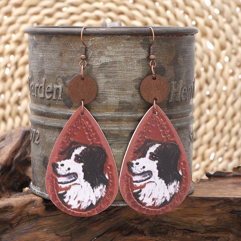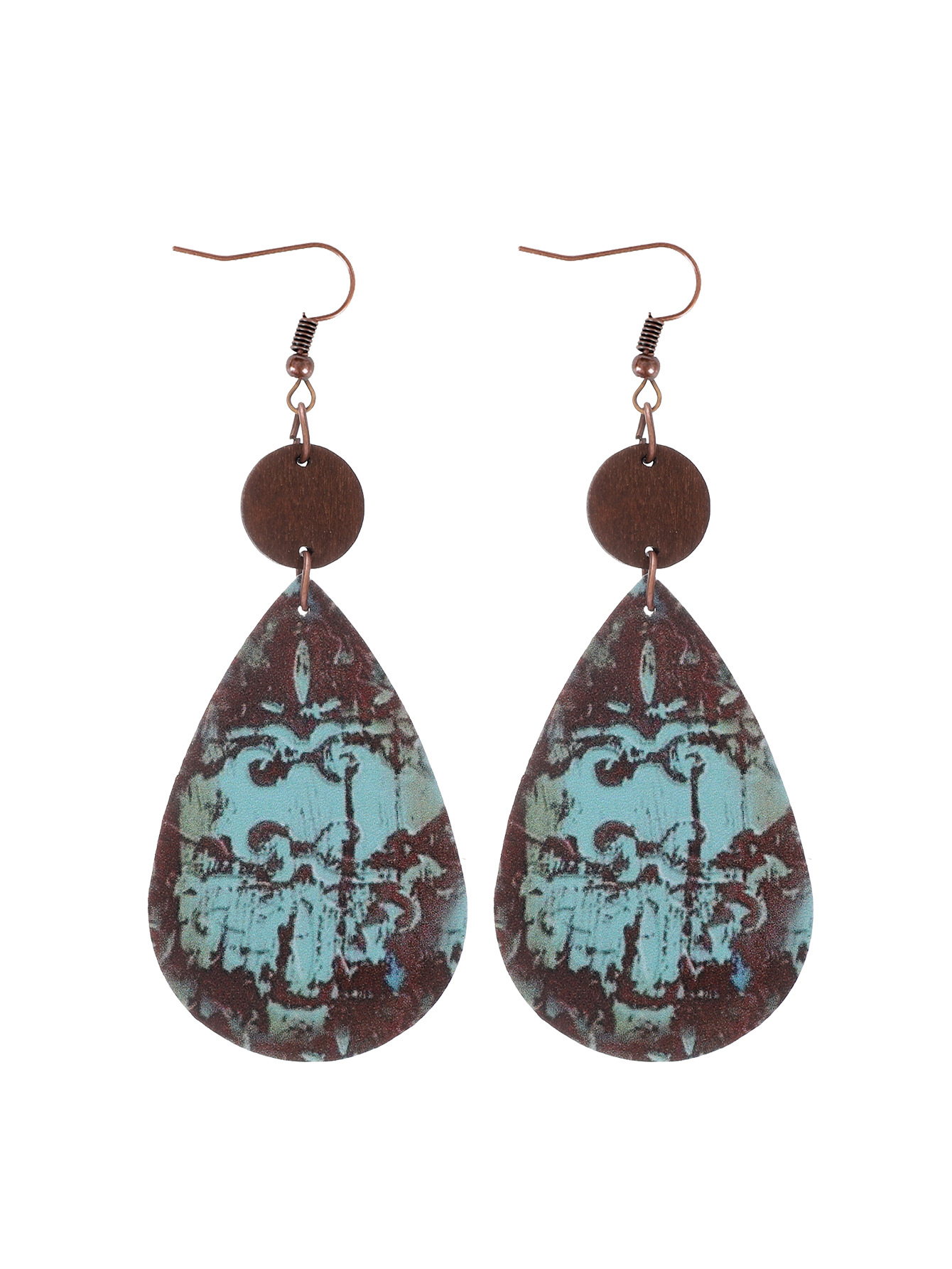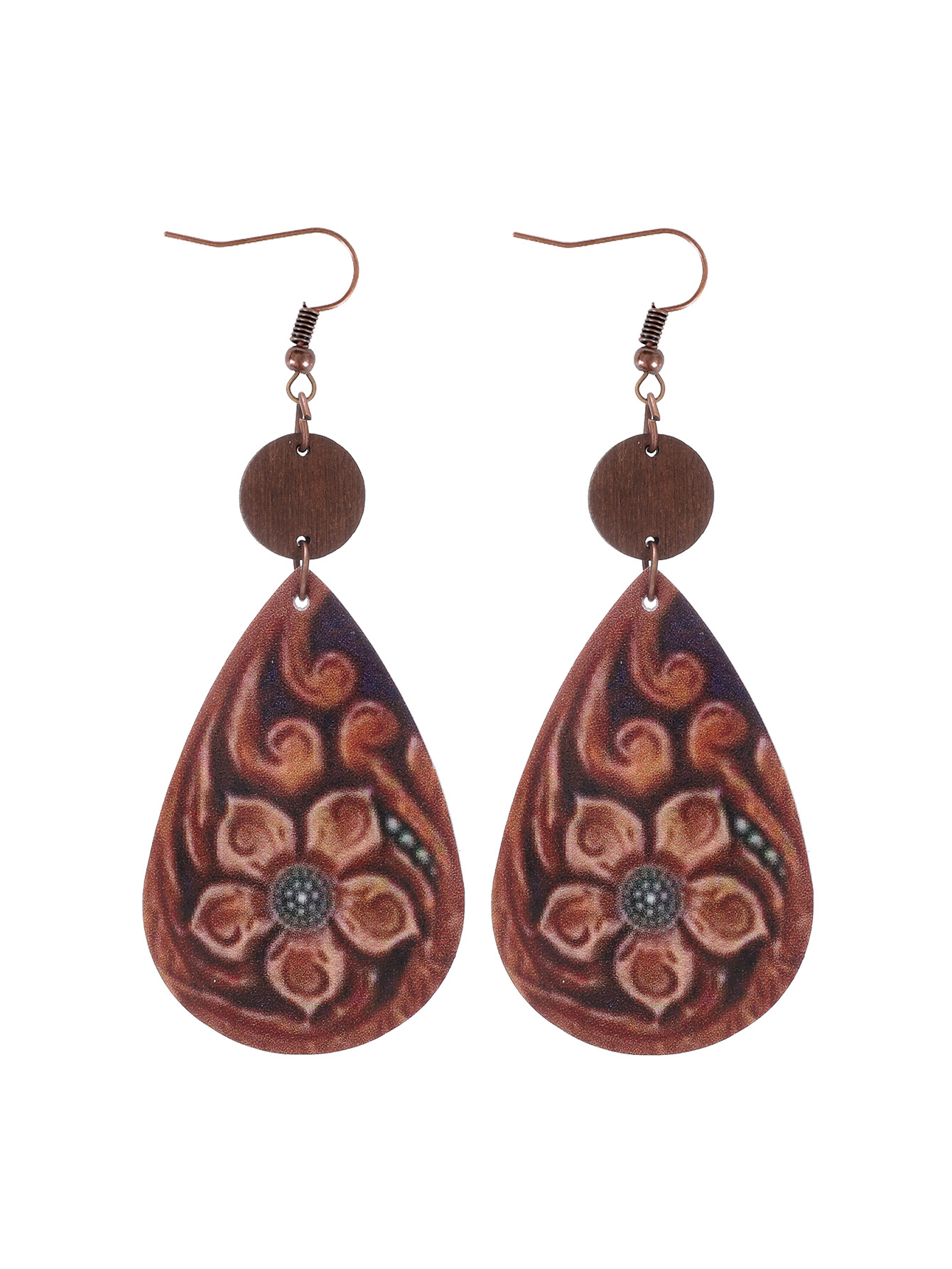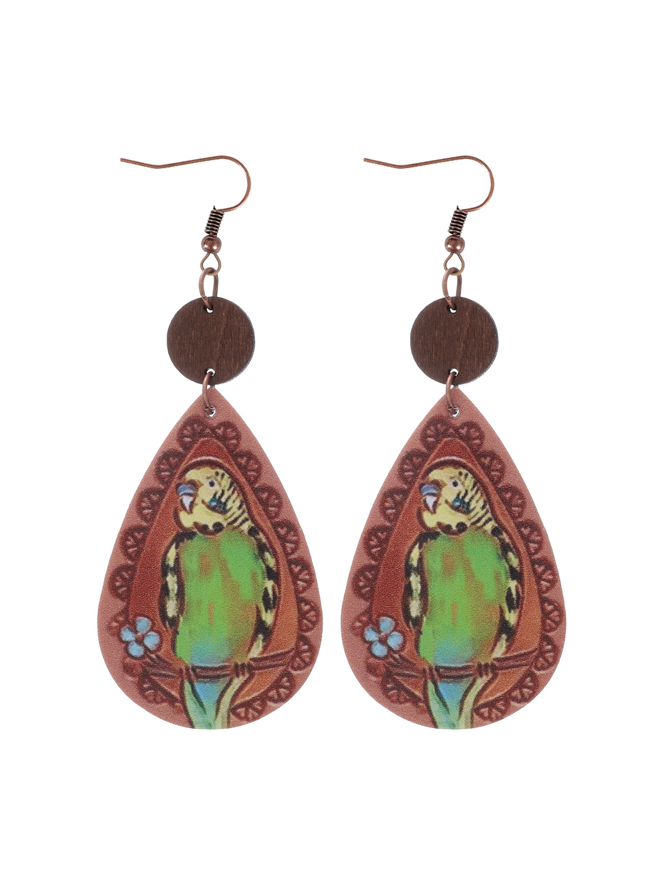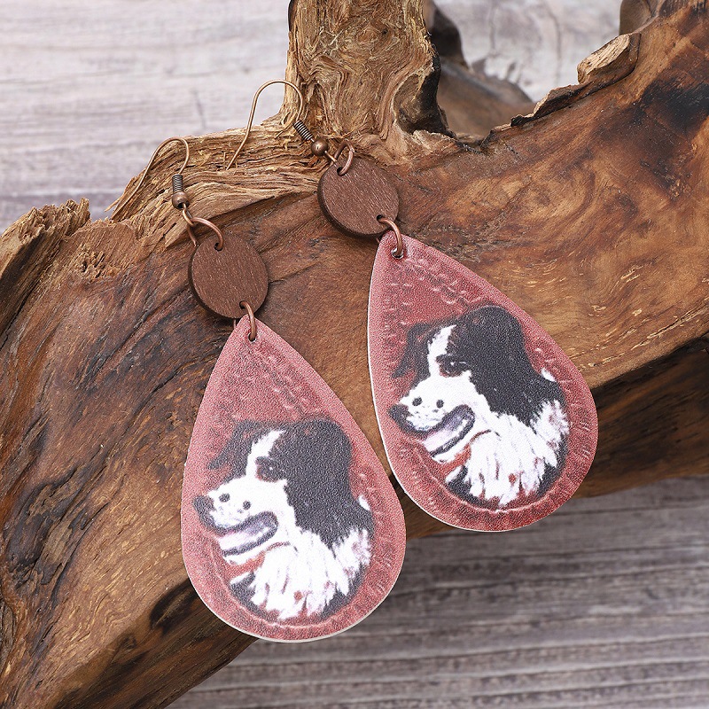 跨境不规则图形仙人掌图案皮革耳环女士耳坠速卖通亚马逊