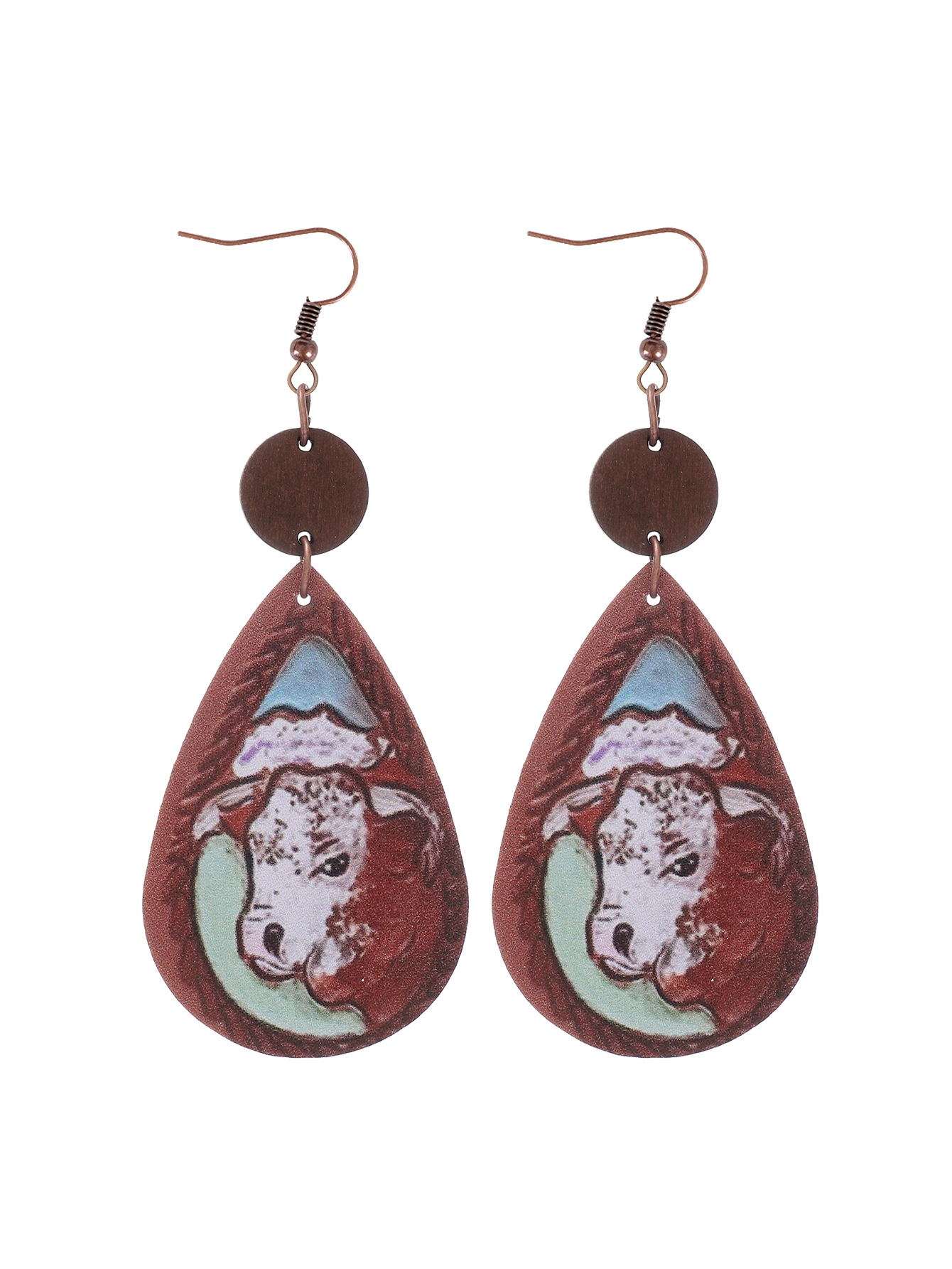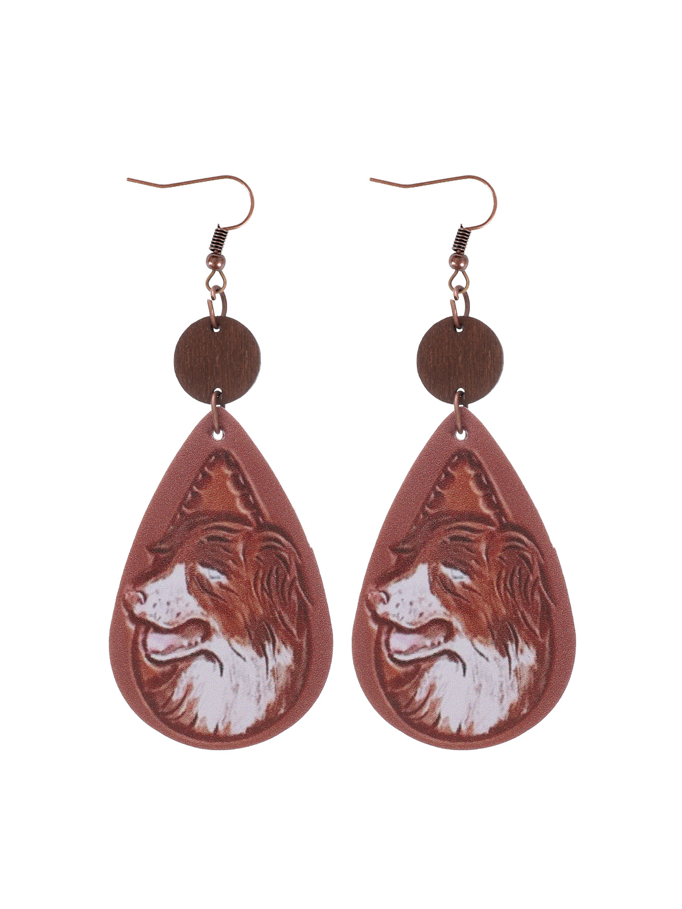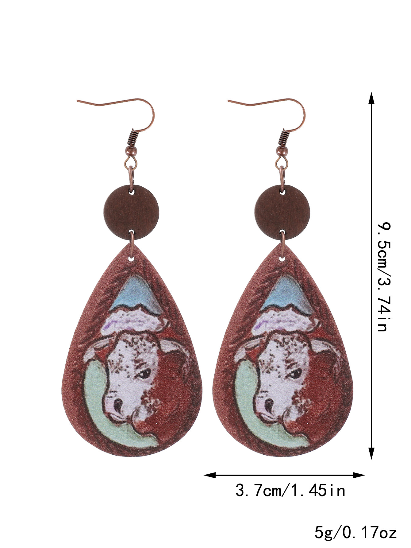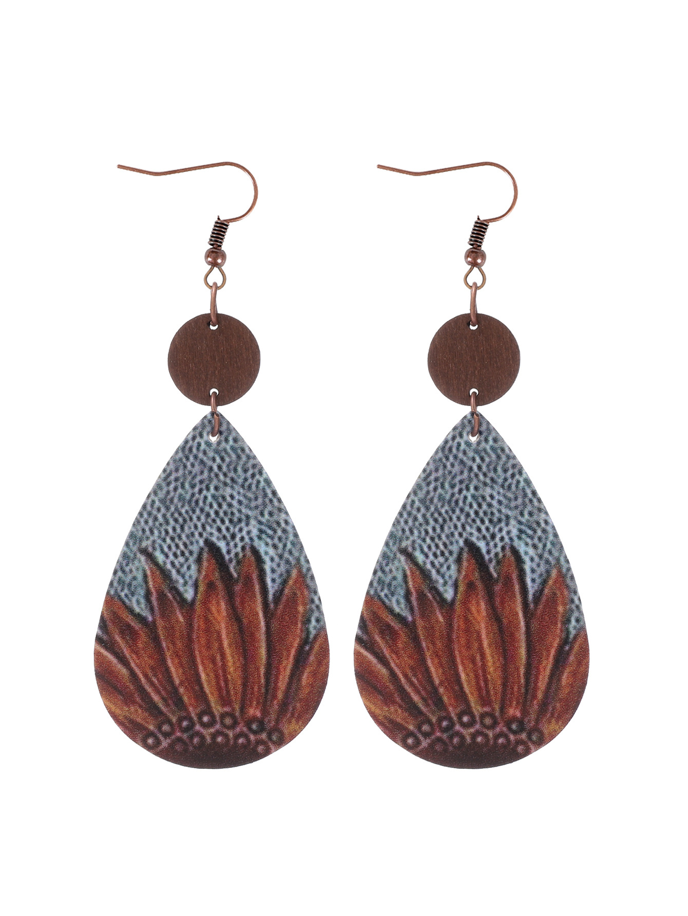 跨境不规则图形仙人掌图案皮革耳环女士耳坠速卖通亚马逊