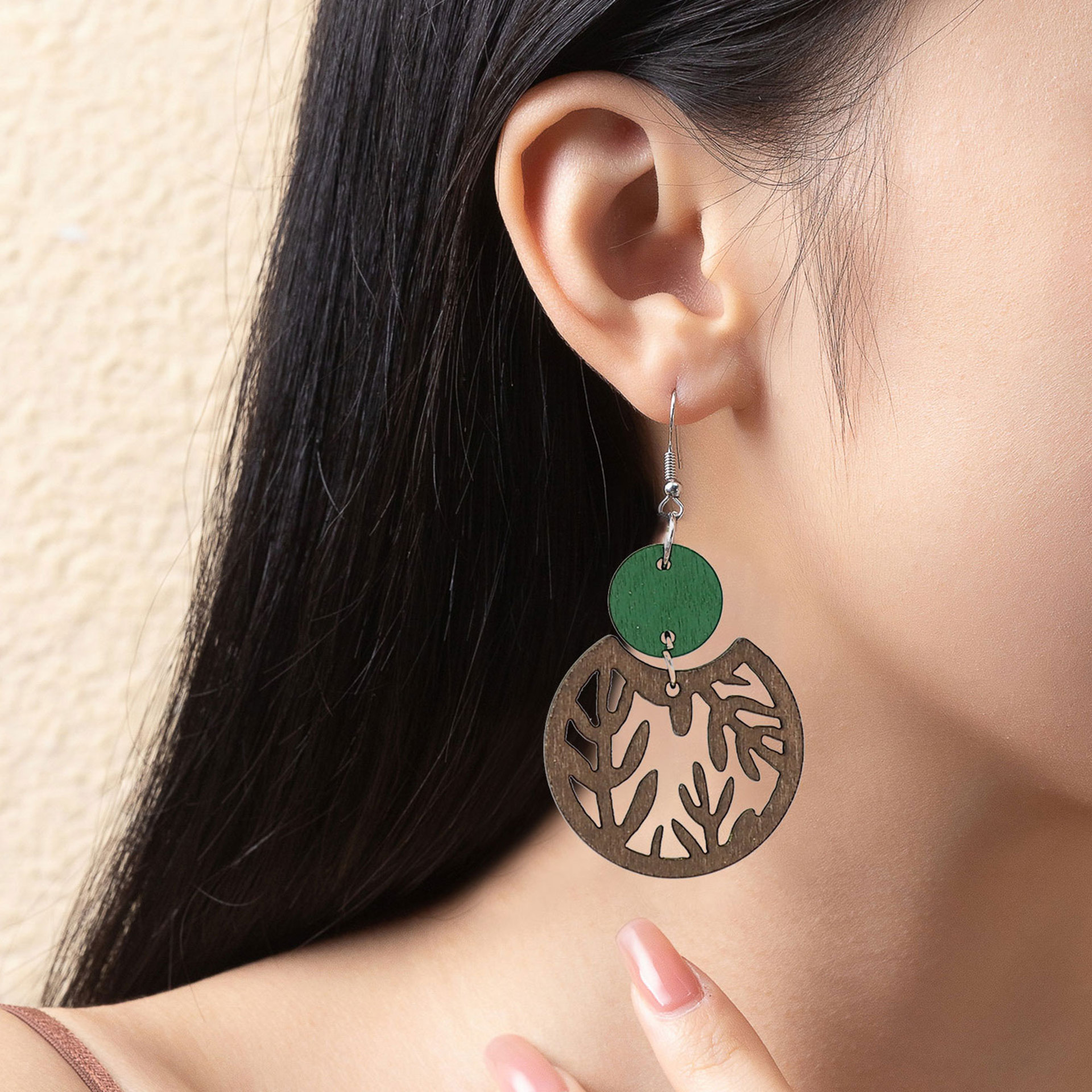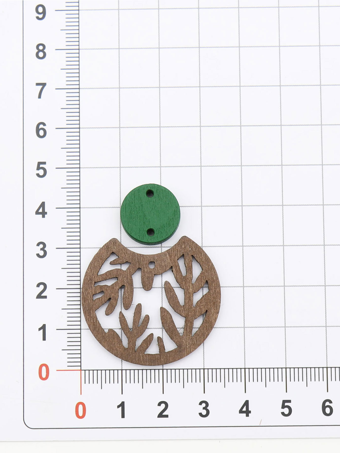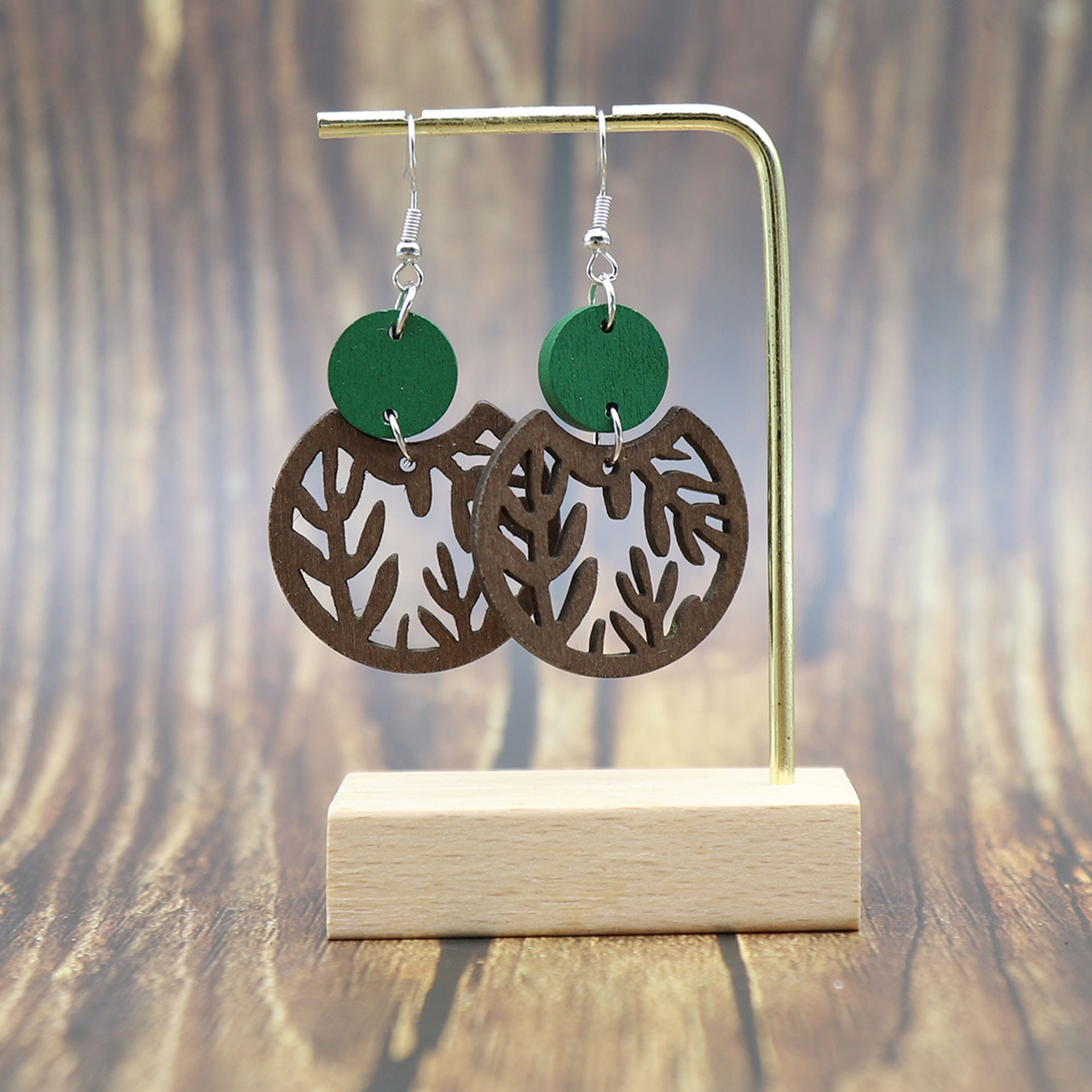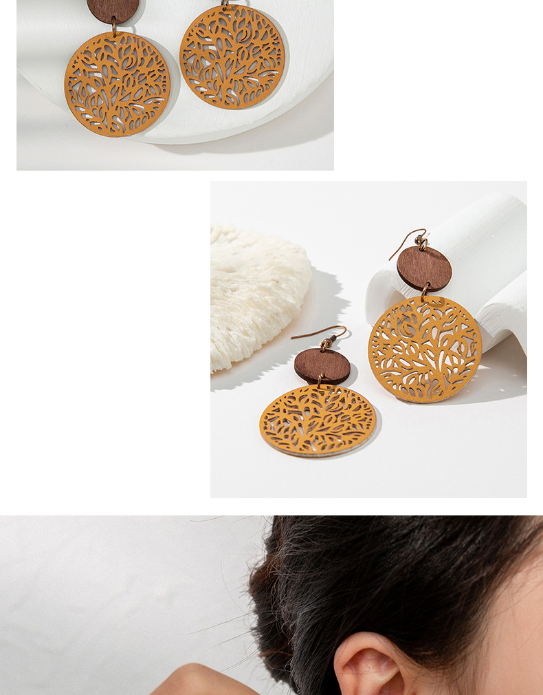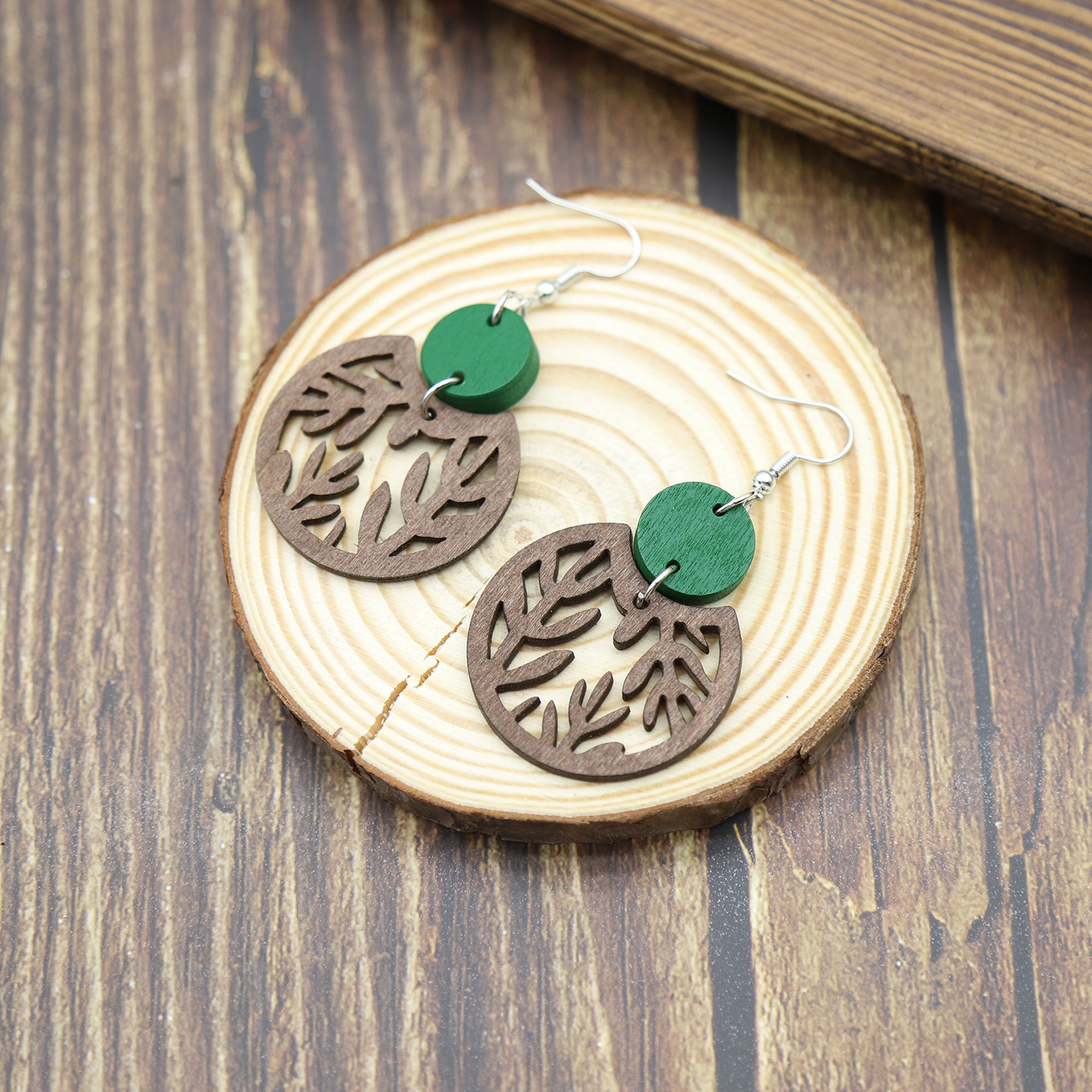 镂空雕花金色皮革圆形木片组合耳环耳坠跨境亚马逊耳饰