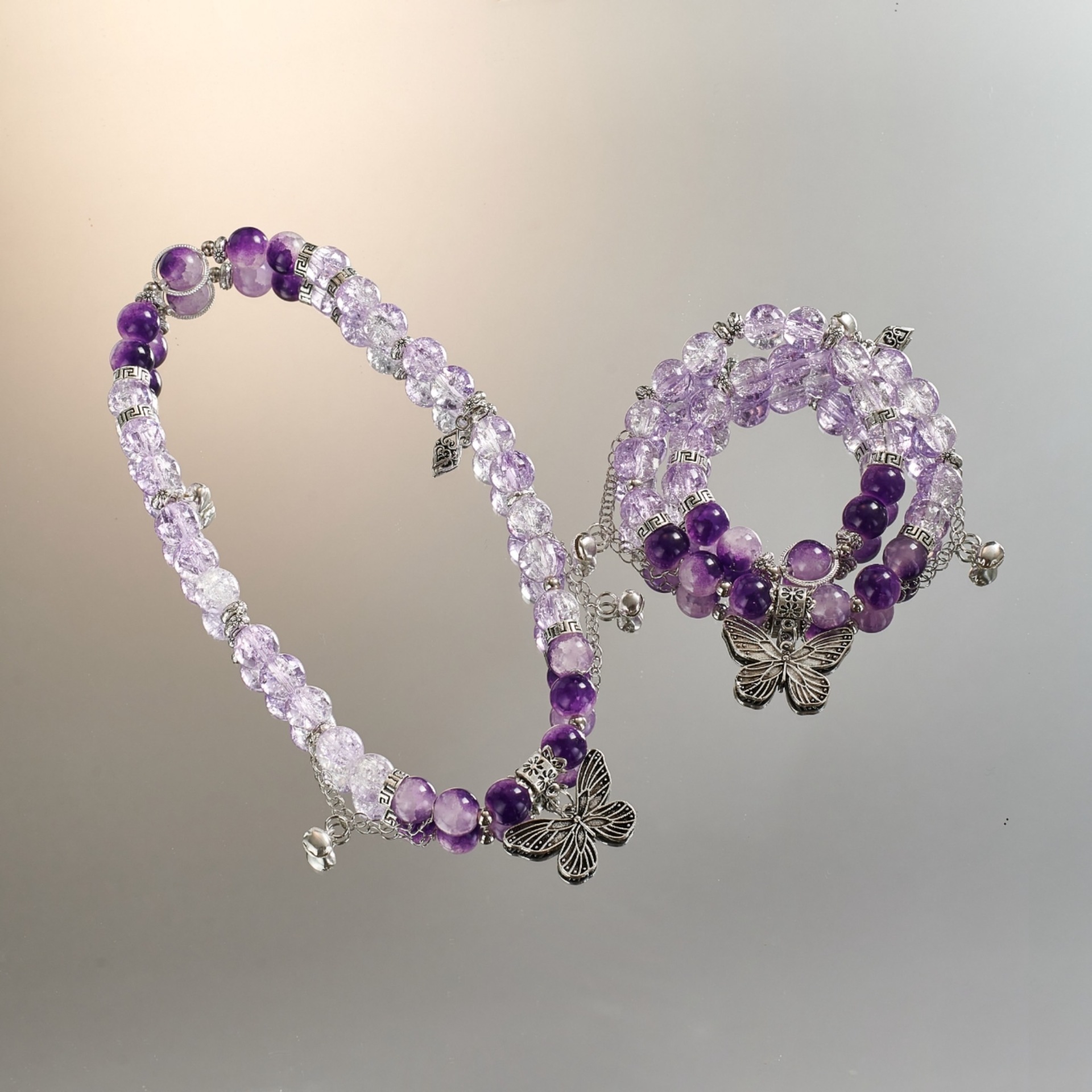 紫铃蝶梦超仙双层渐变紫蝴蝶甜美风送情侣闺蜜礼物文艺小众手链