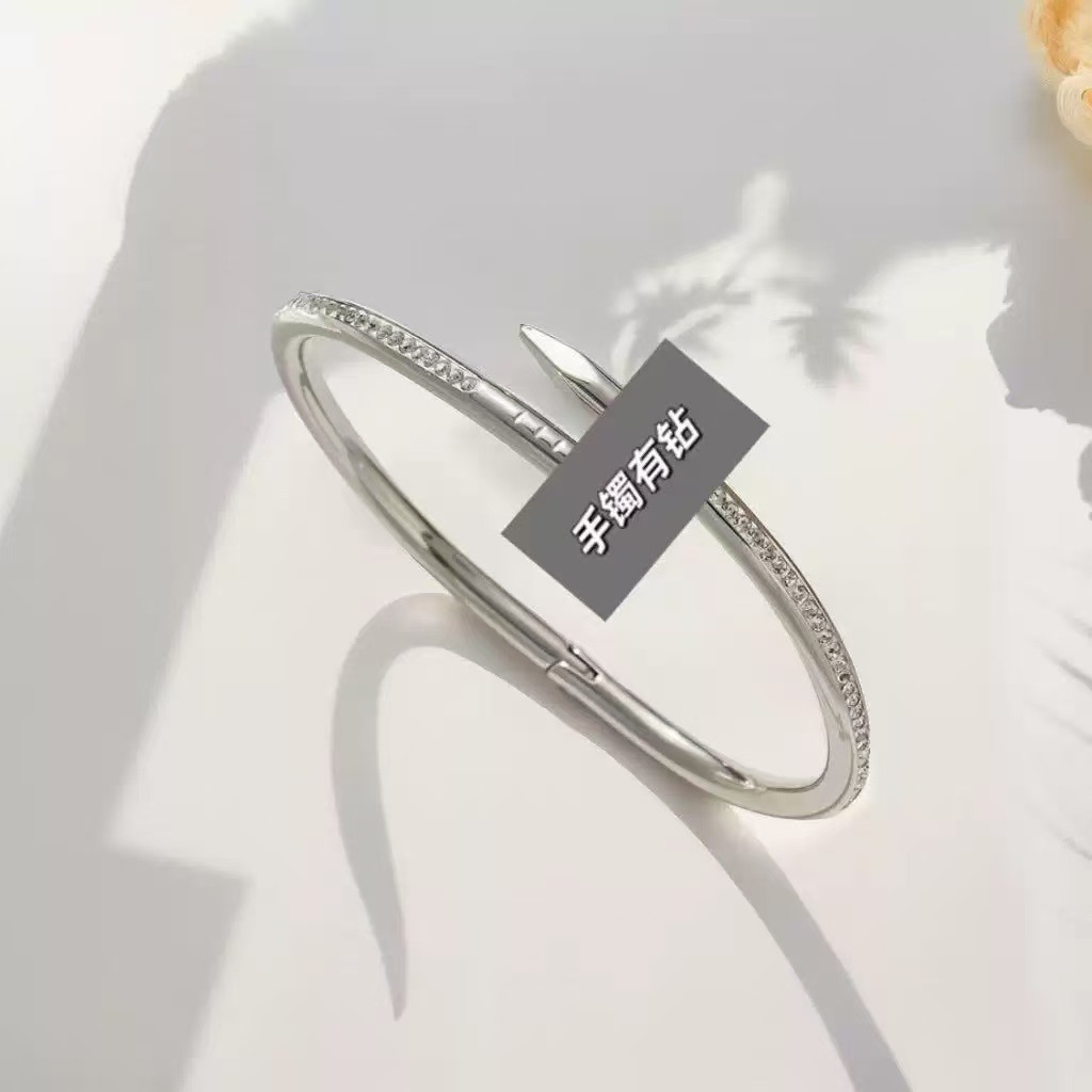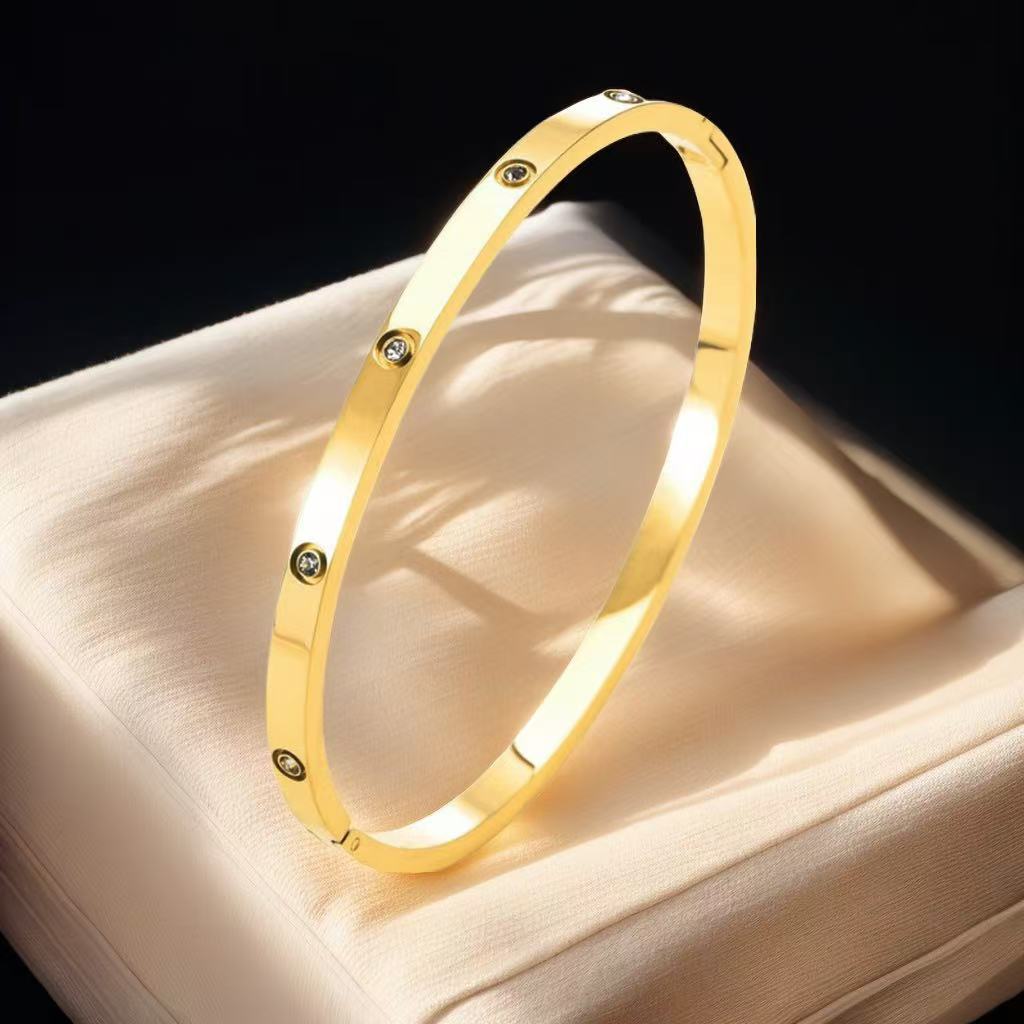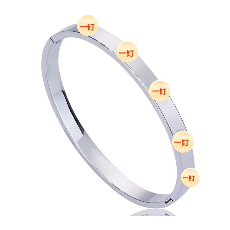 跨境不锈钢手镯女高级感电镀不掉色圆圈手环镶钻轻奢钛钢流行饰品