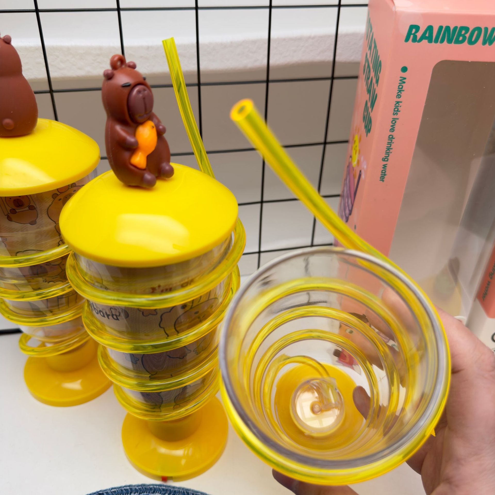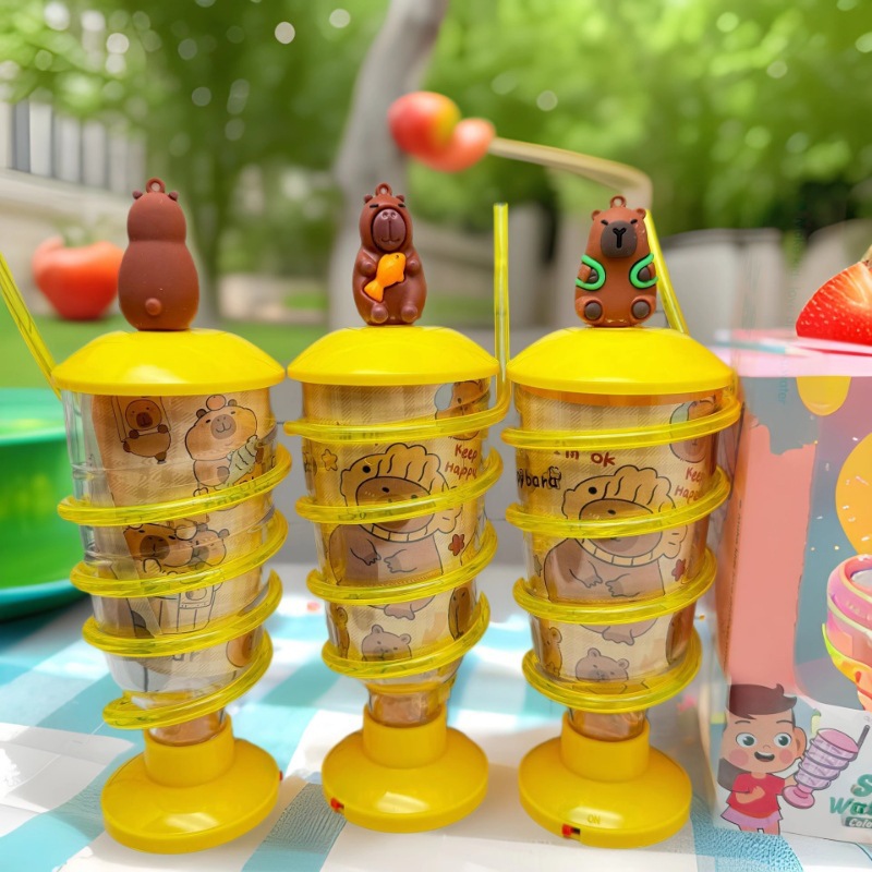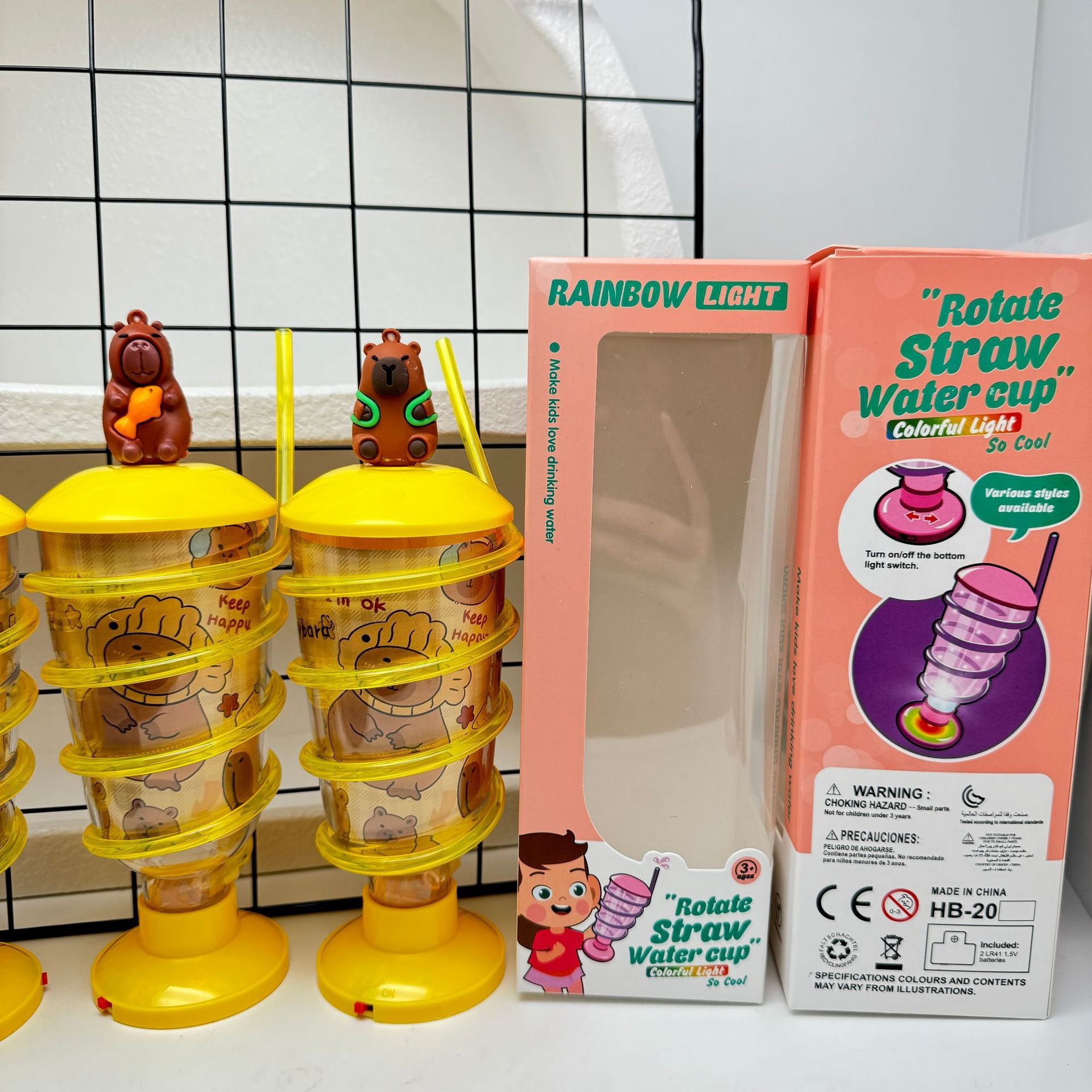 卡通高颜值卡皮巴拉吸管杯学生便携带豚鼠公仔发光闪光杯子奖品