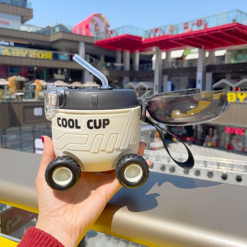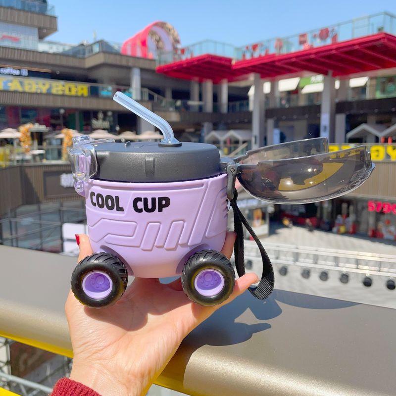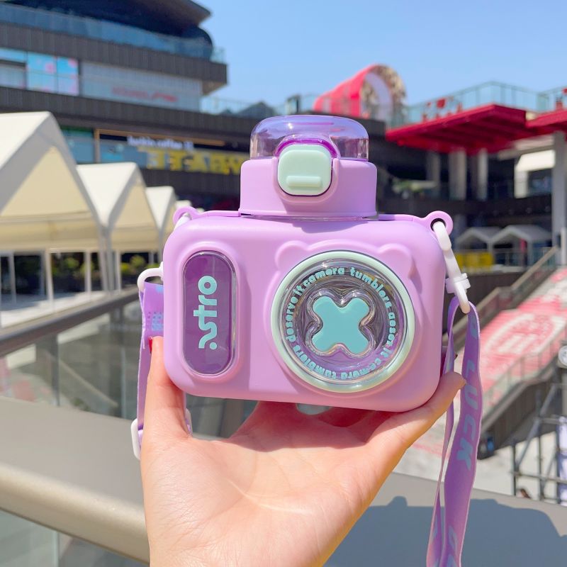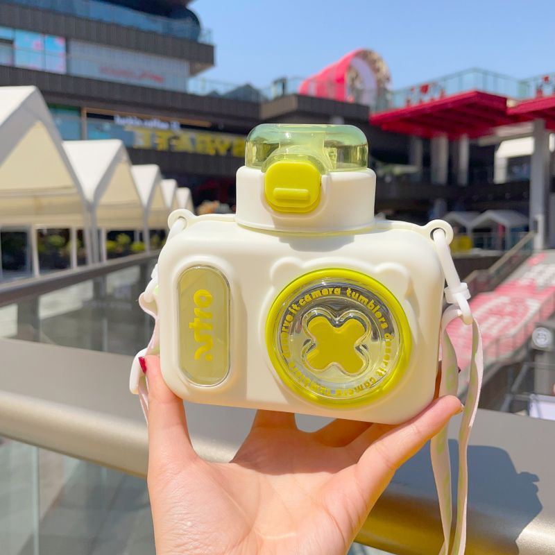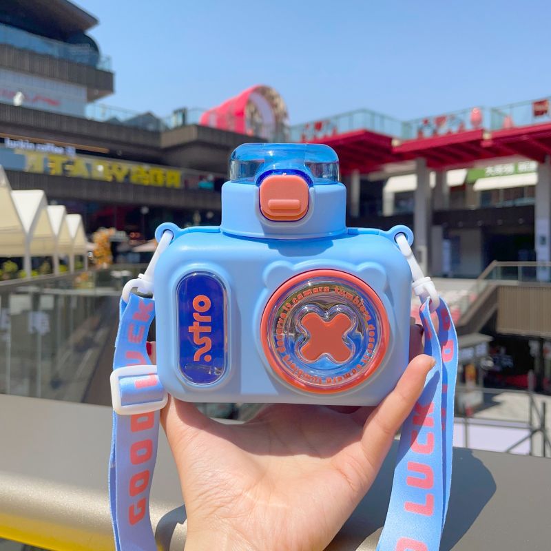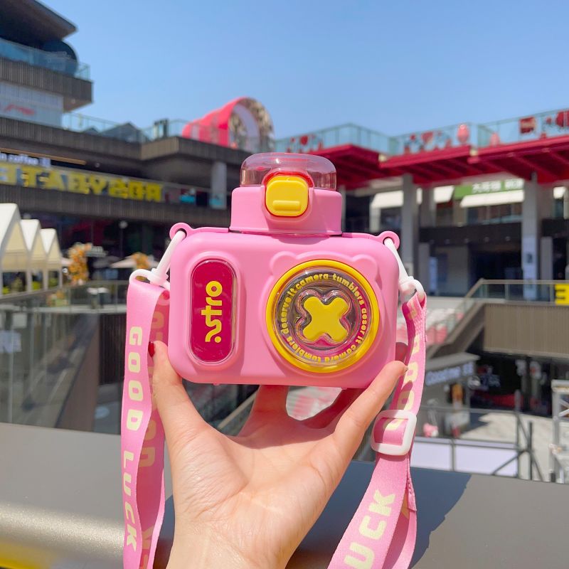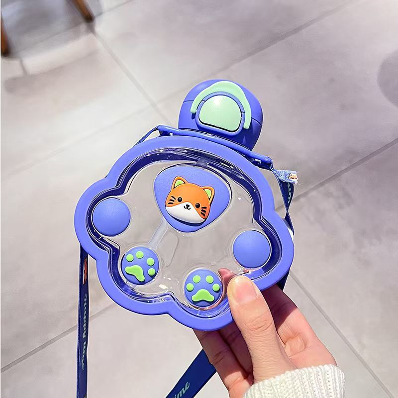新款儿童猫爪塑料杯卡通吸管水杯创意男女学生背带便携大容量杯子