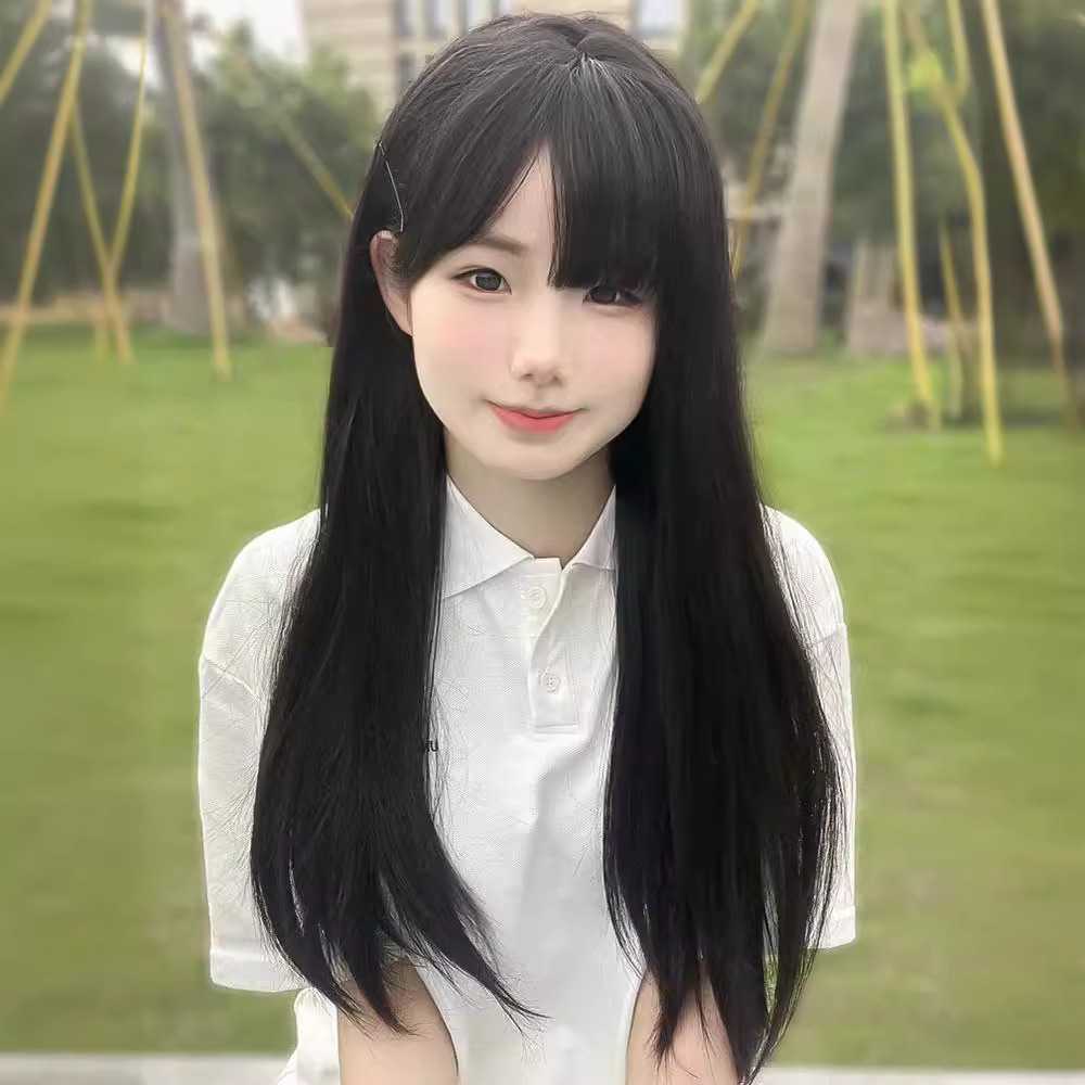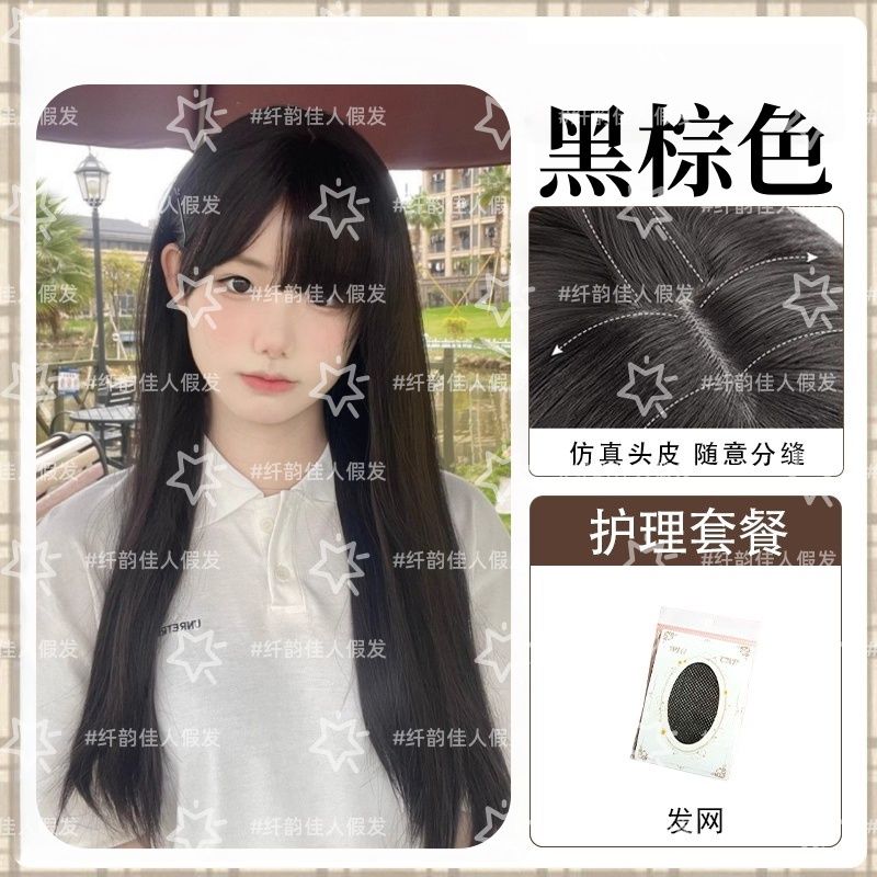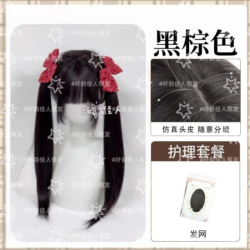 纤韵佳人【扎好马尾】假发女黑棕色60cm长直发甜美lolita全头套式