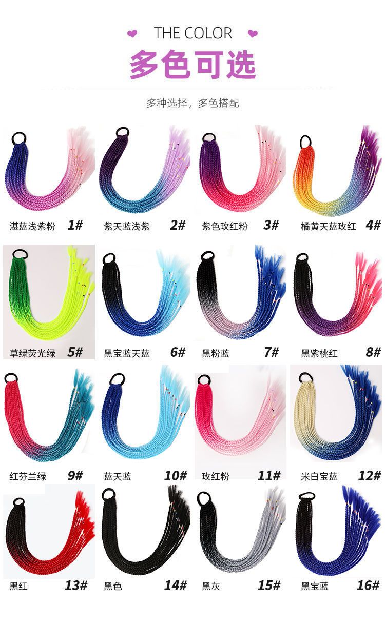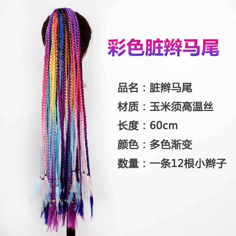 辫子假发女长发彩色小辫子嘻哈麻花渐变色民族风三股欧美脏辫马尾