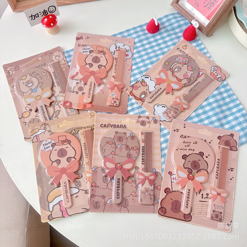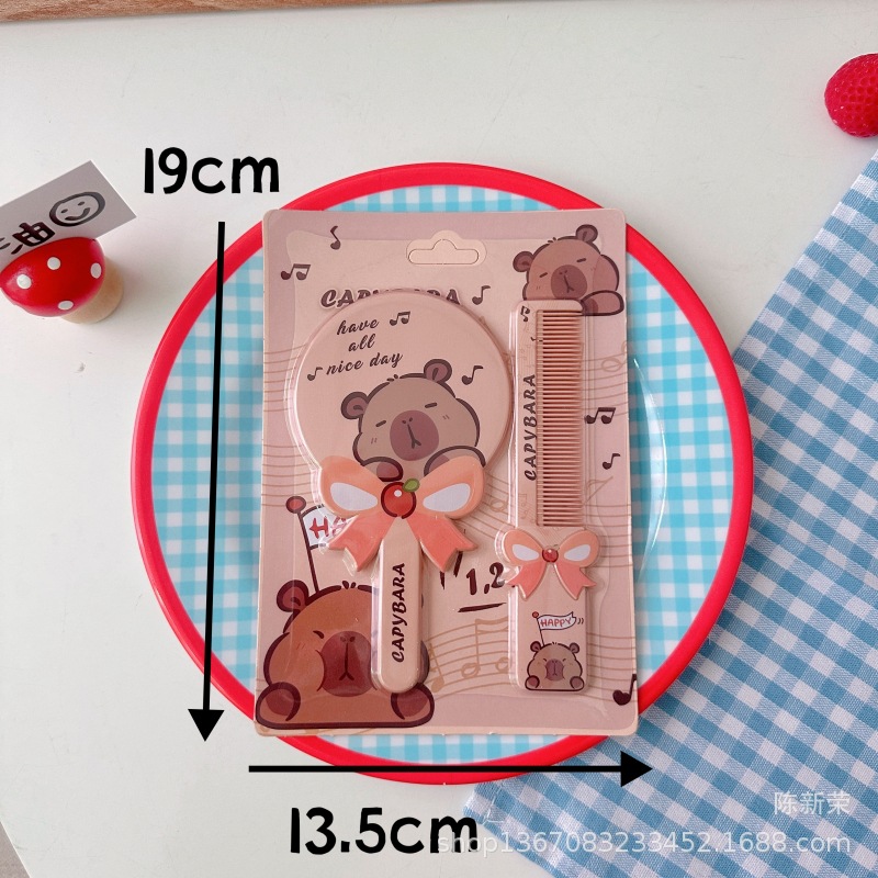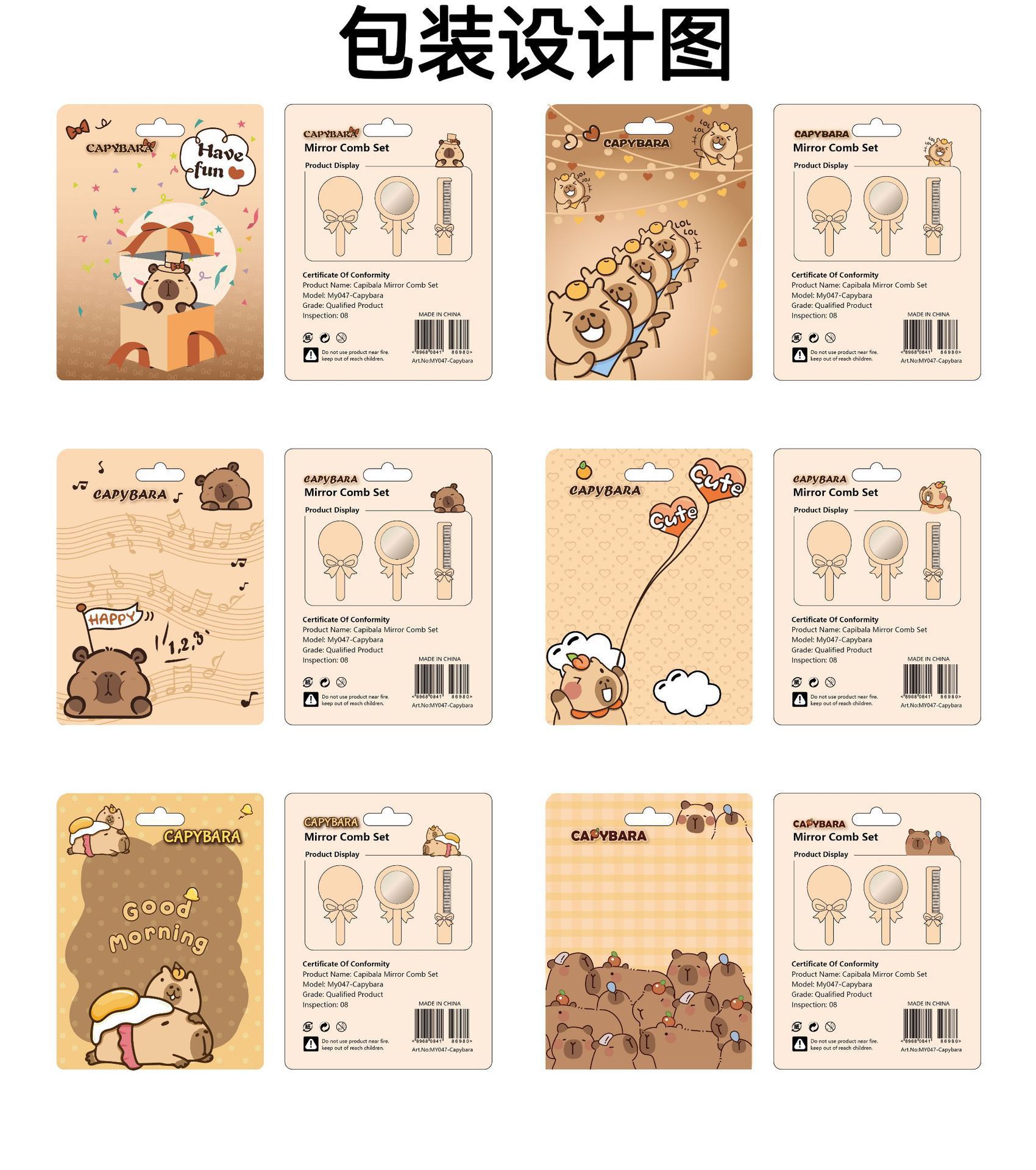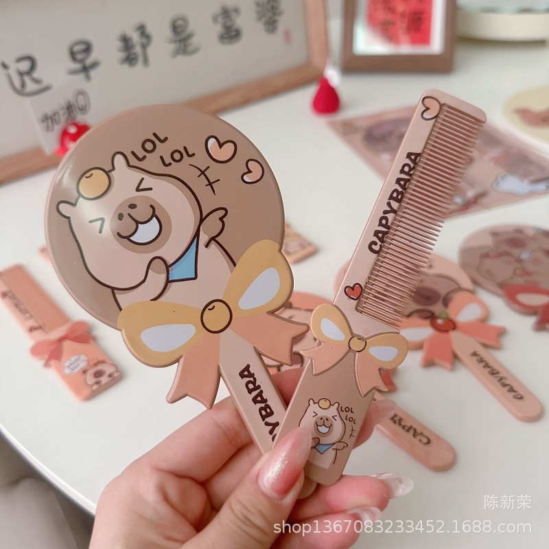 新款二合一卡皮巴拉梳子镜子儿童卡通镜梳便捷外出携带镜梳套装