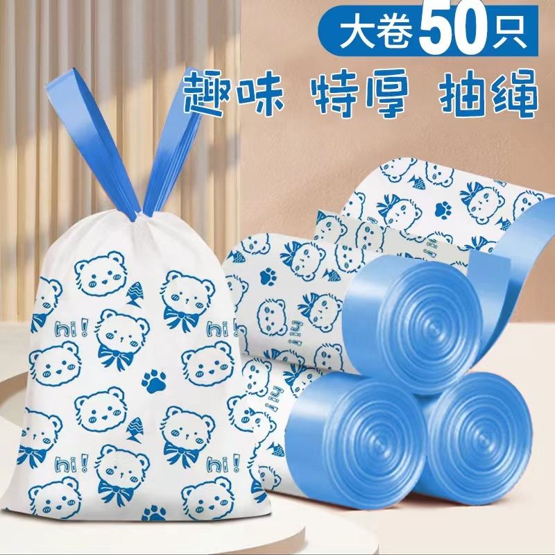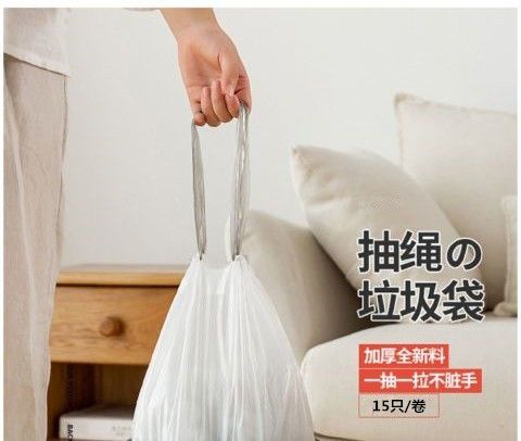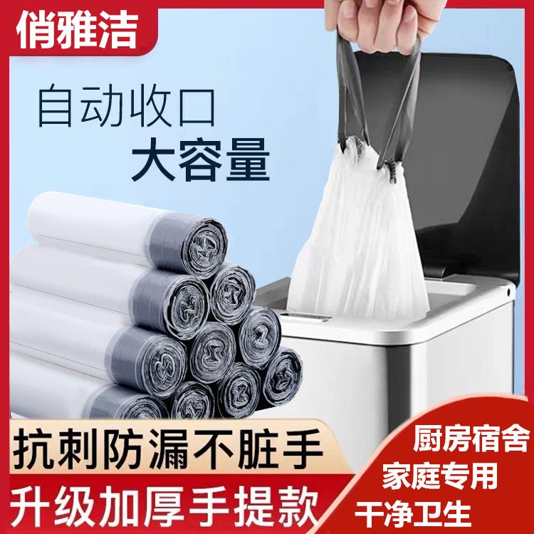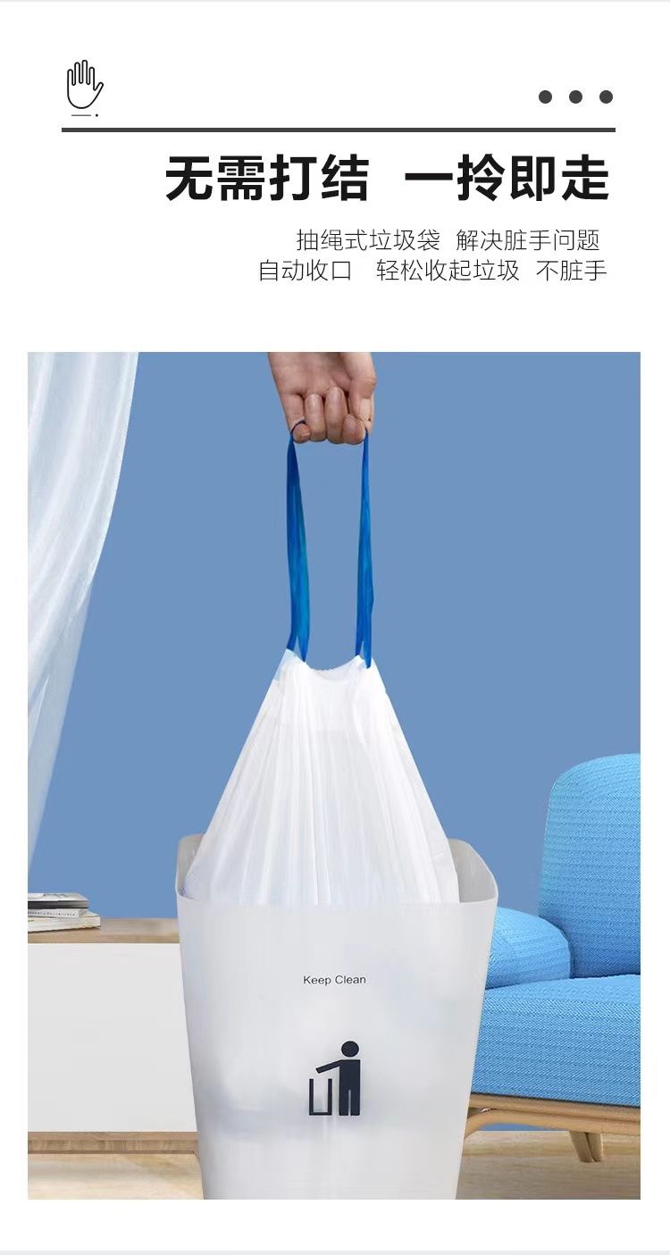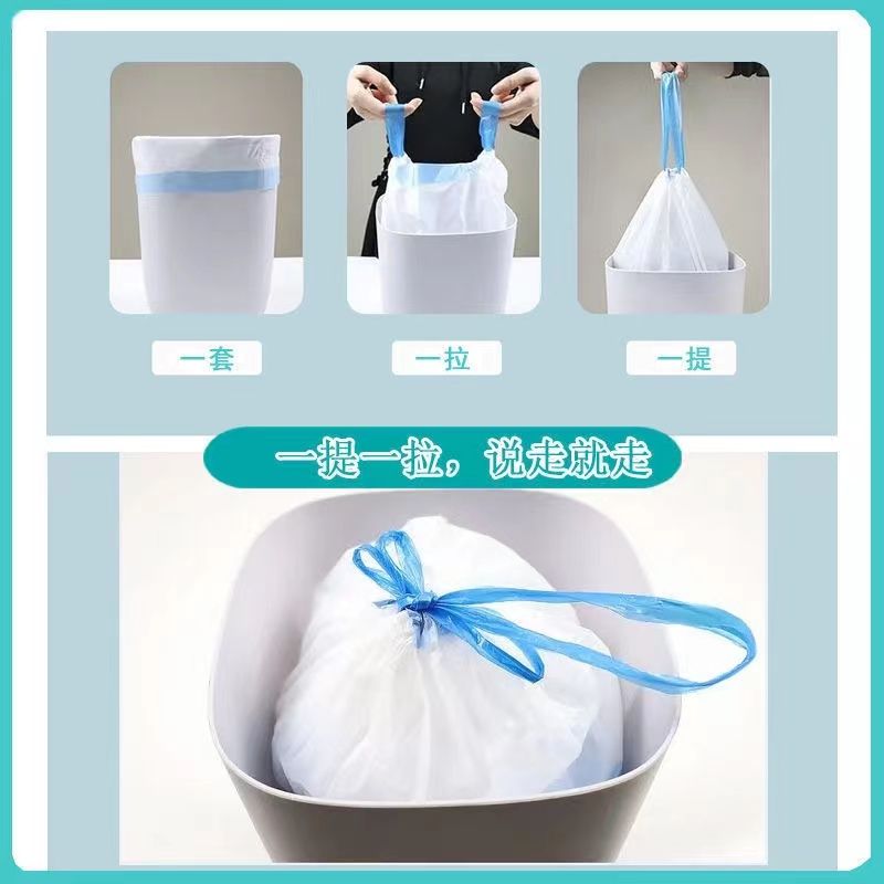 垃圾袋加厚抽绳式自动收口袋手提式穿绳家庭厨房学生宿舍用塑料袋