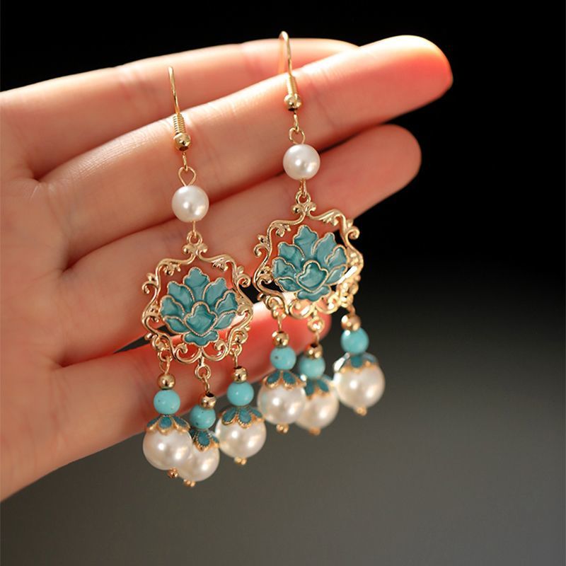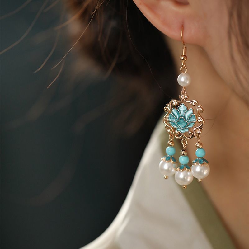 | song dynasty blue tassel ear hook 1(宋代蓝色流苏耳钩1只) | USD $0.98 | 999999 piece available |