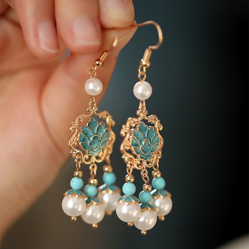 宋代耳环秋冬高级感新中式烧蓝复古国风耳饰 汉服旗袍配饰耳坠女