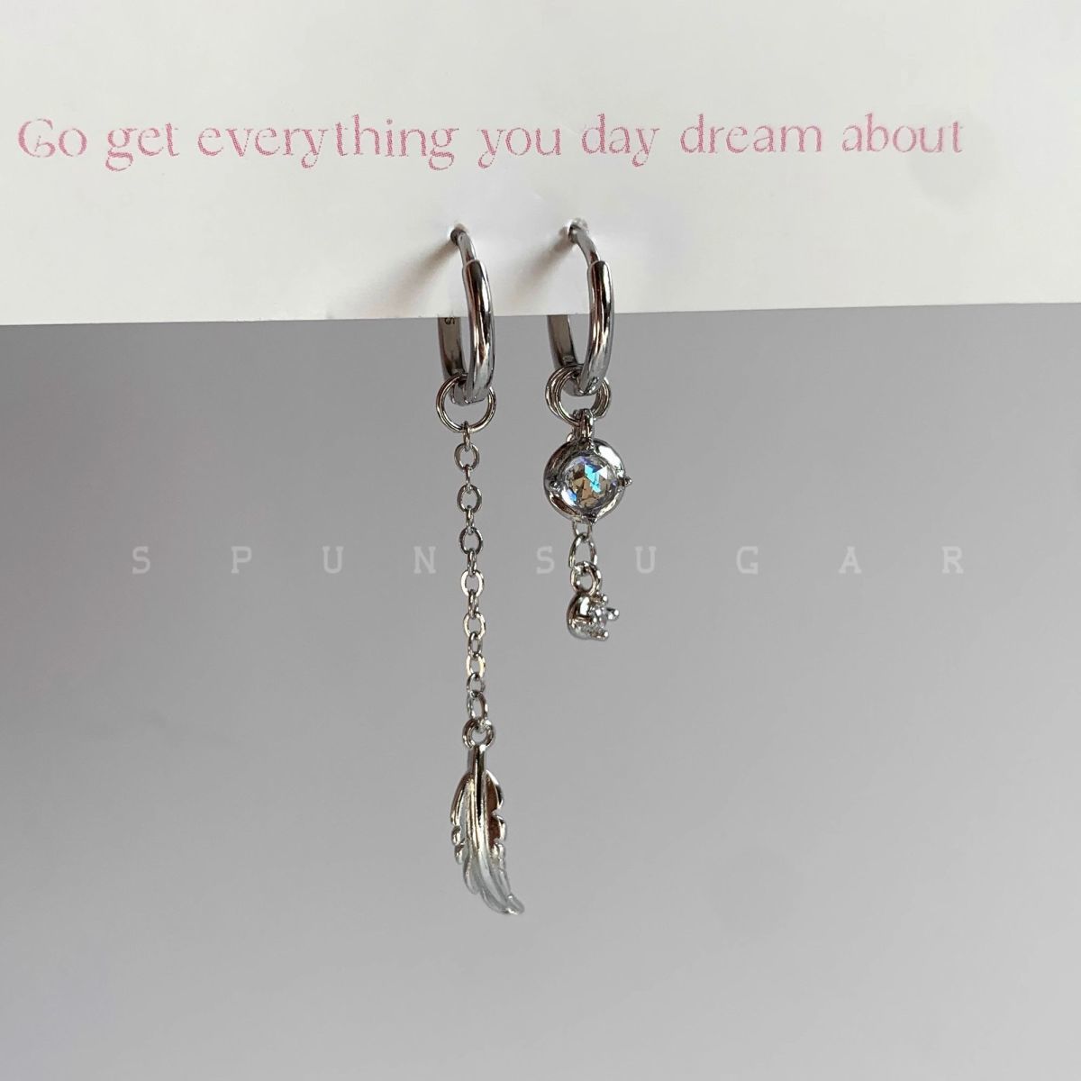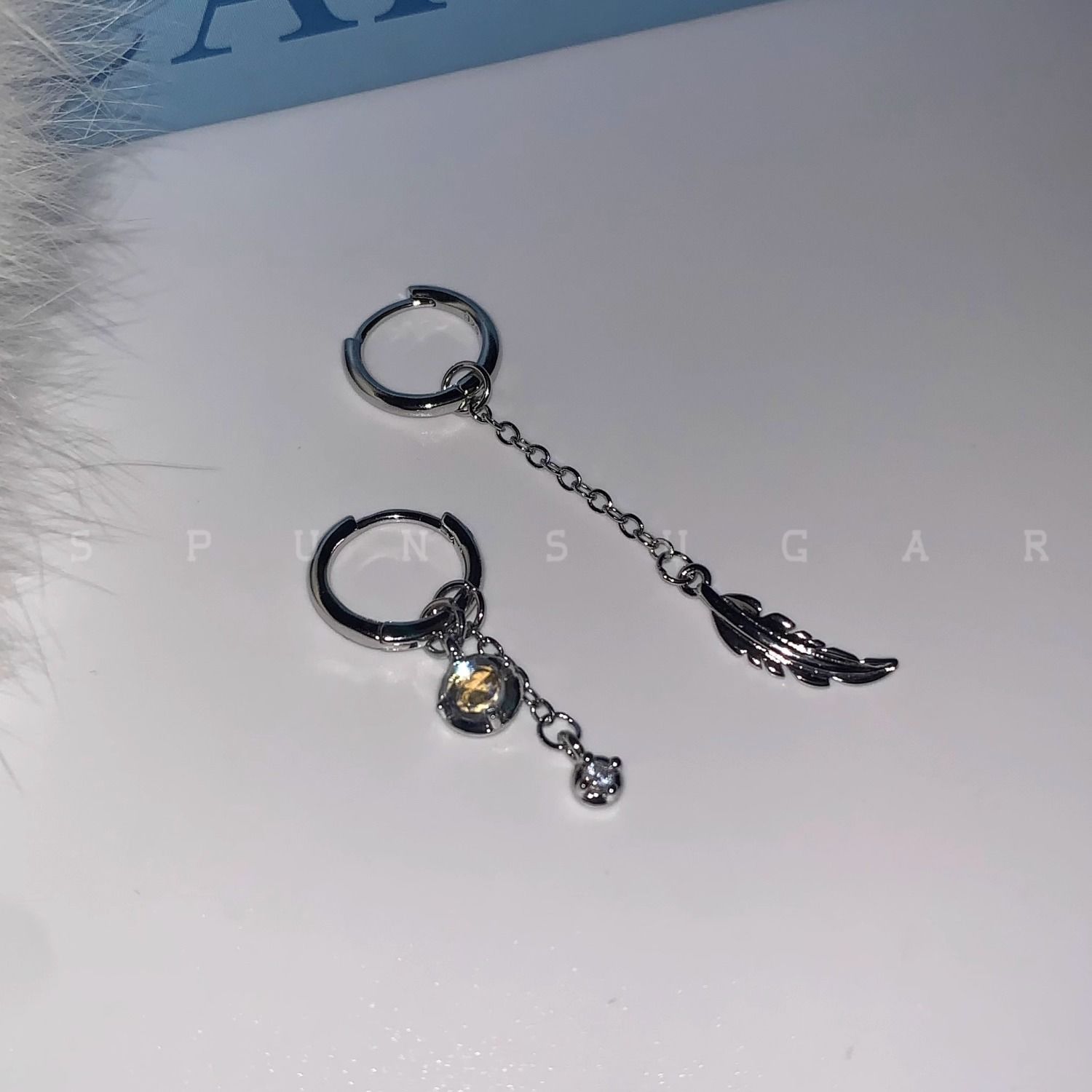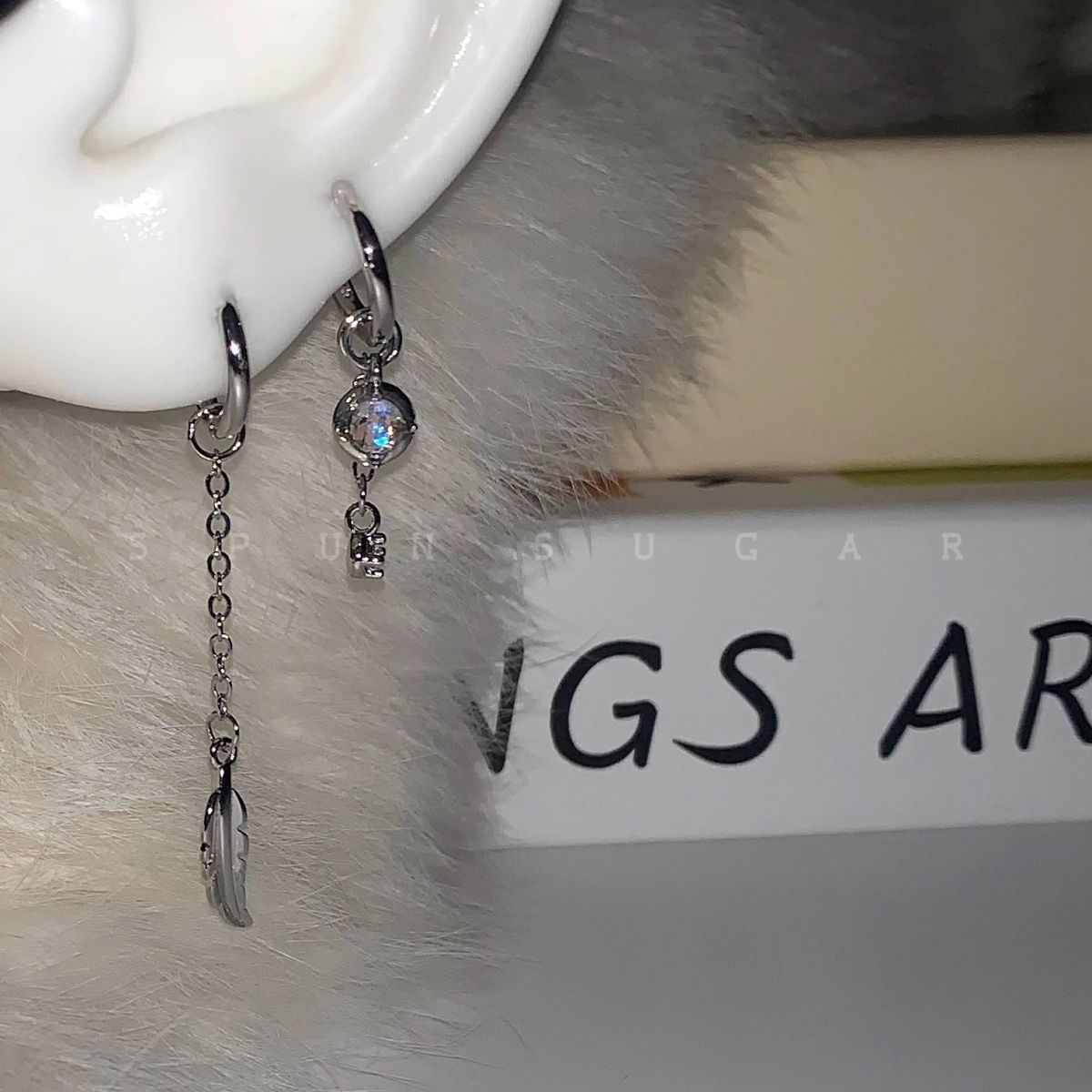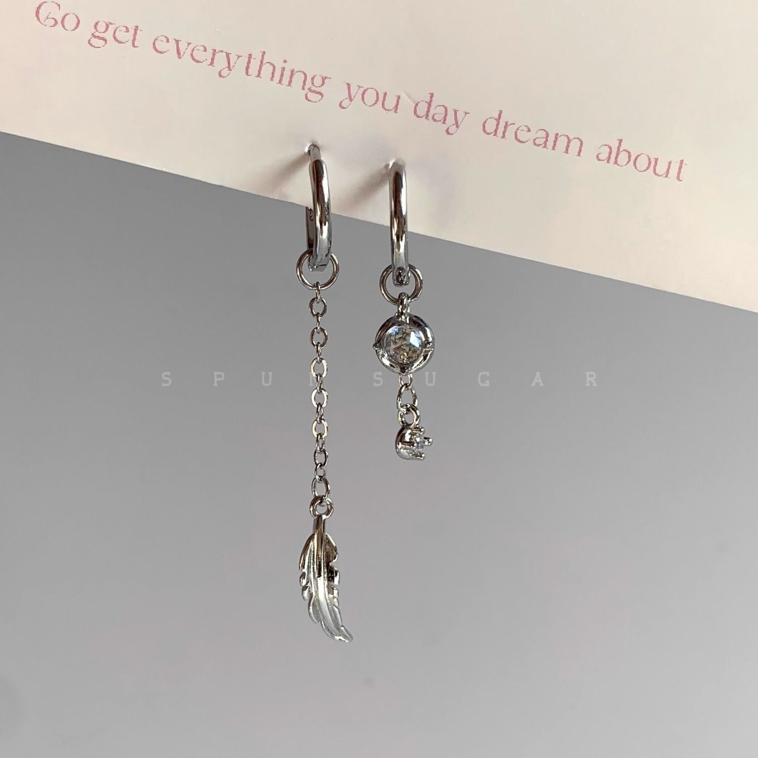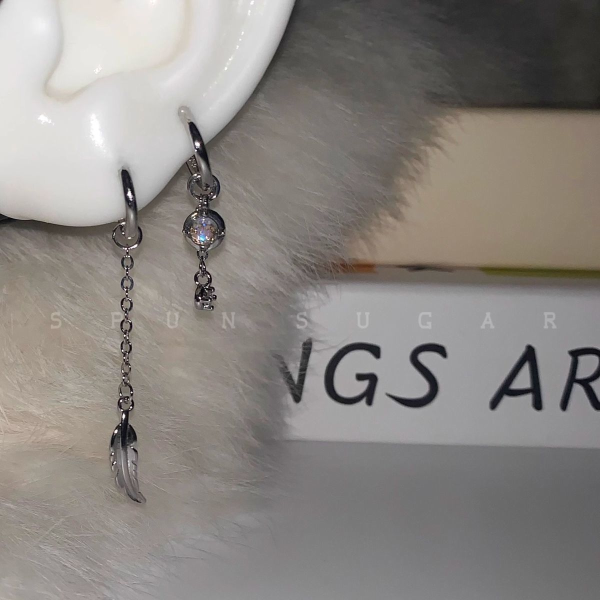 双耳洞不对称流苏羽翼耳环小众个性幻彩水滴气质长款耳扣耳饰女