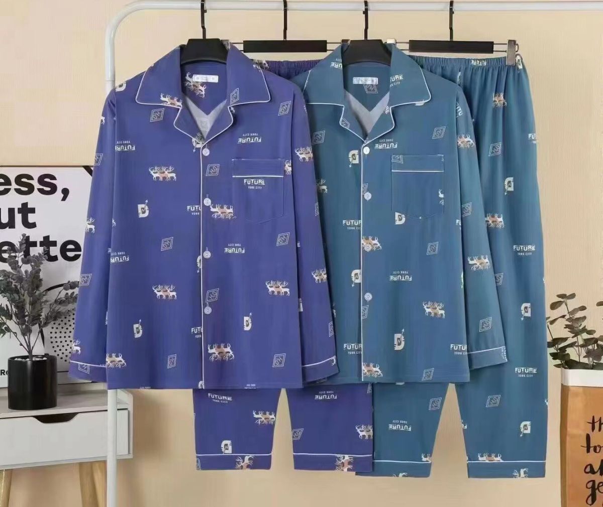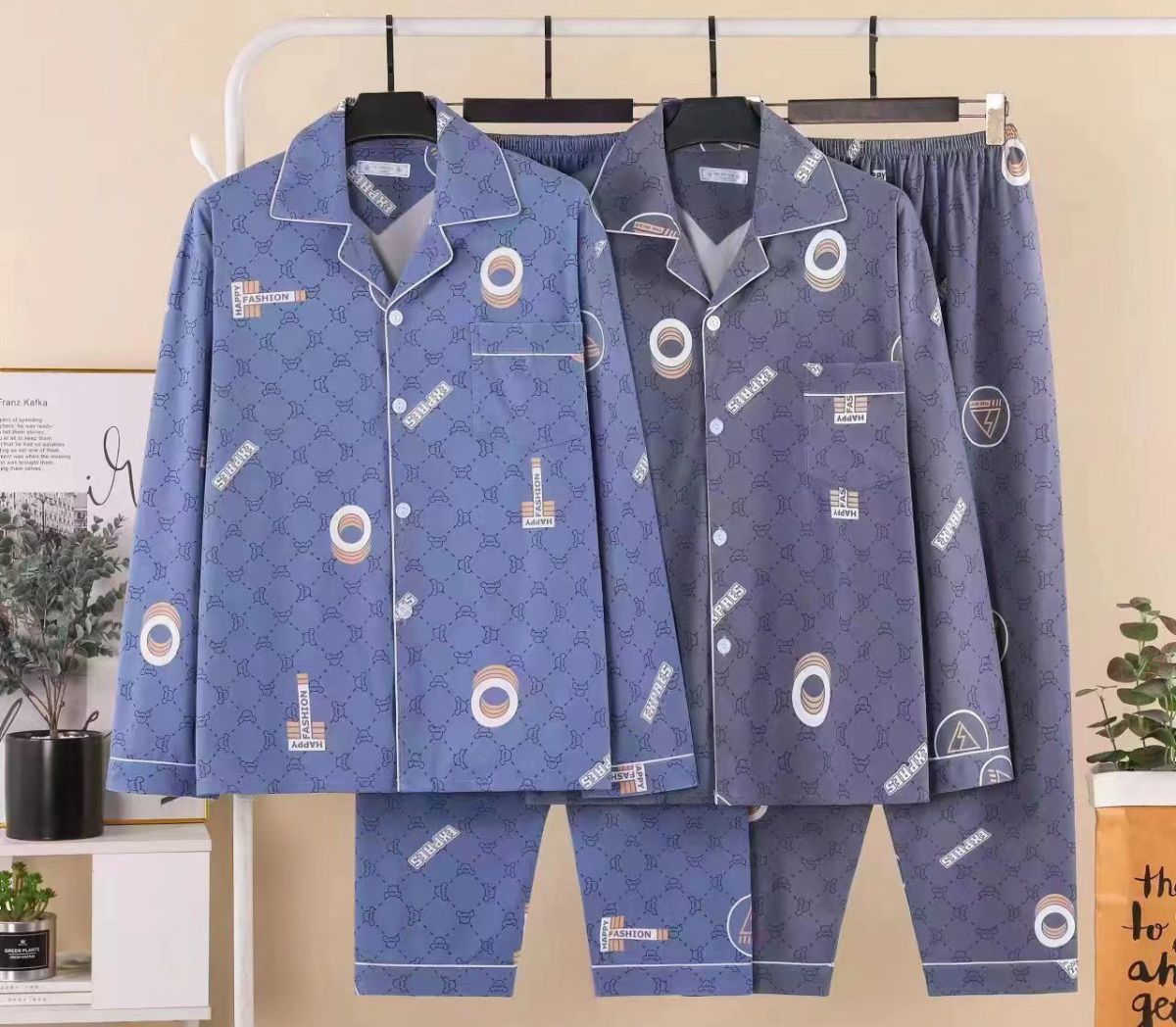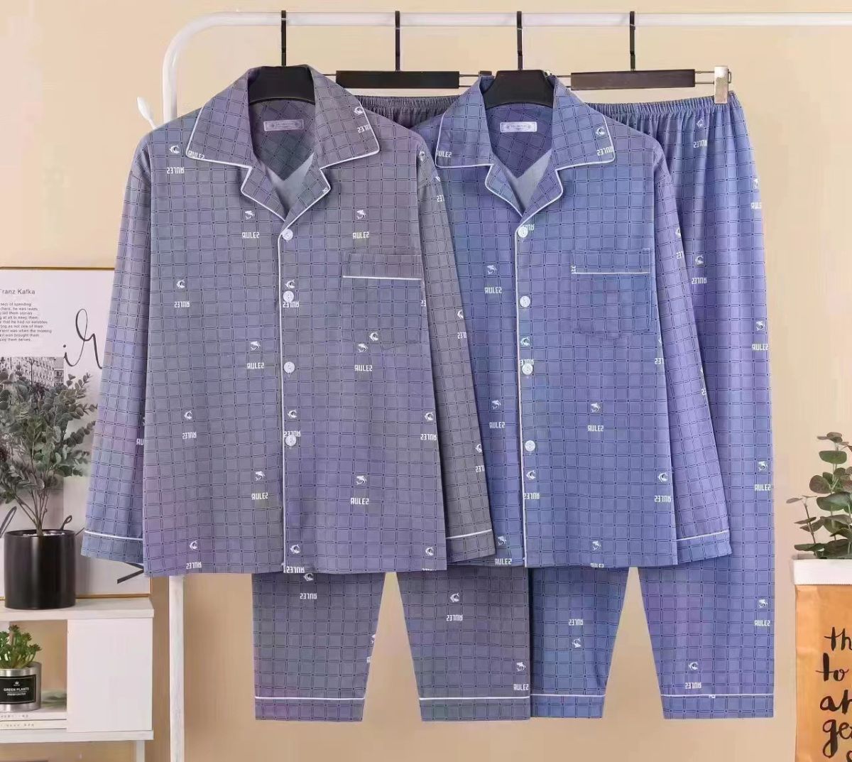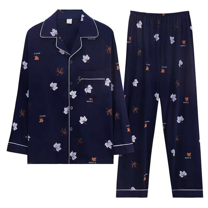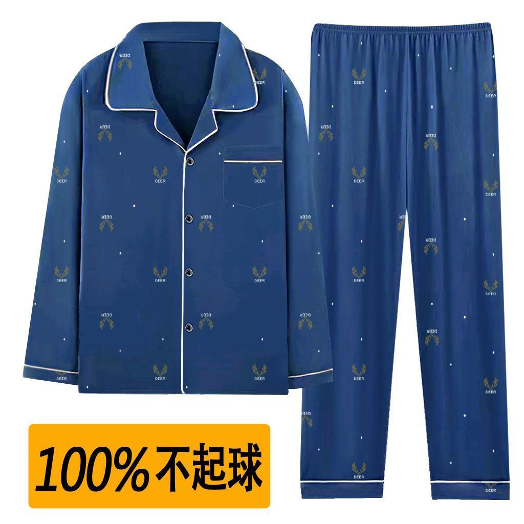 100%纯棉睡衣男士春秋季长袖全棉大码肥佬青年家居服男式开衫套装