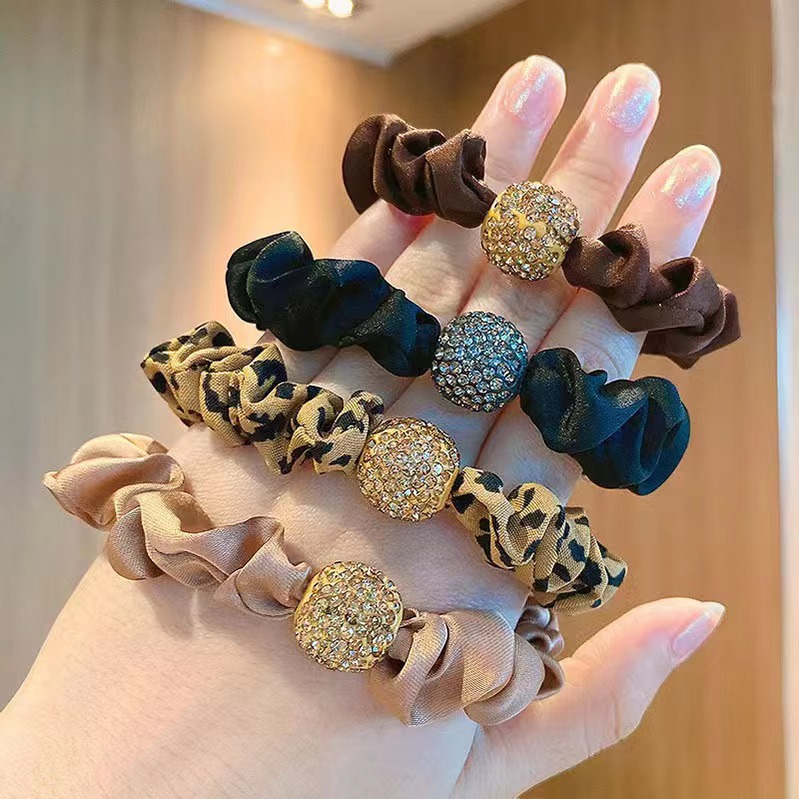 水钻球发圈发绳大肠发圈发绳欧美豹纹发圈高弹力发圈发饰