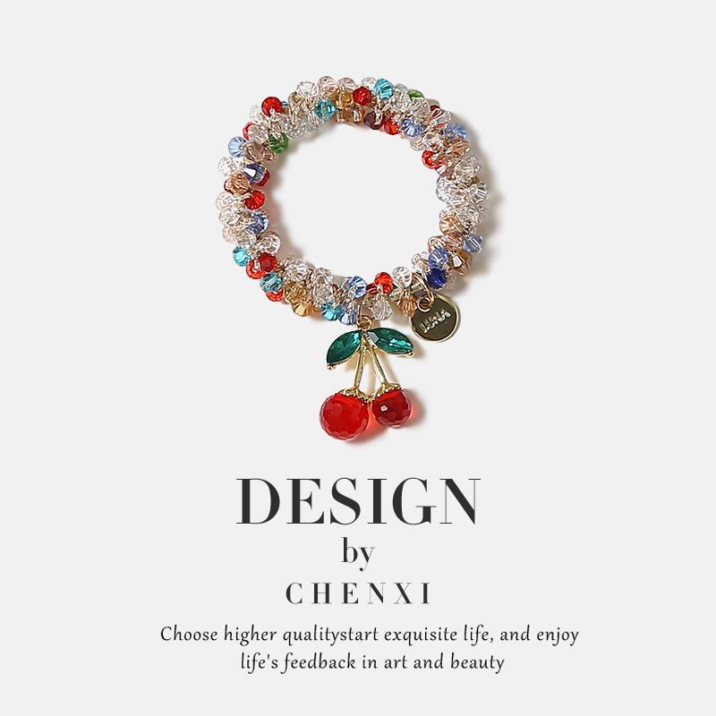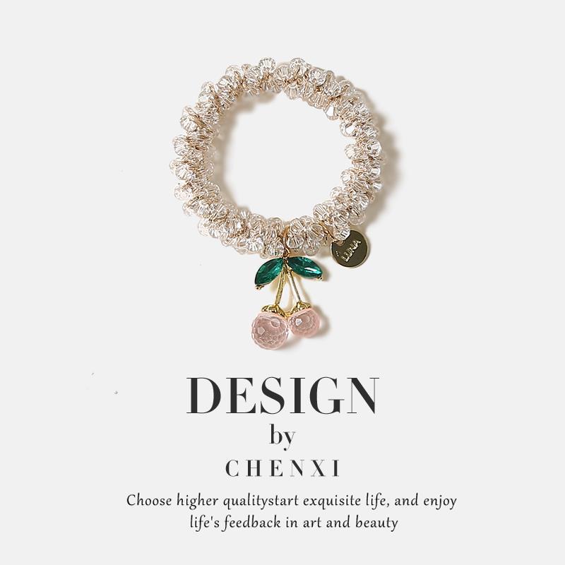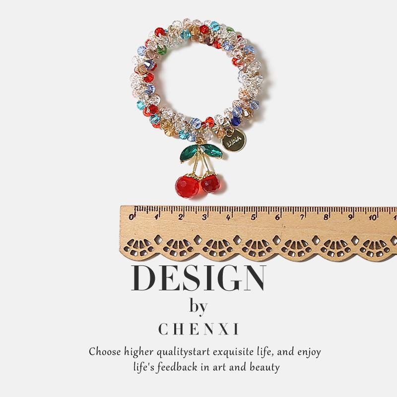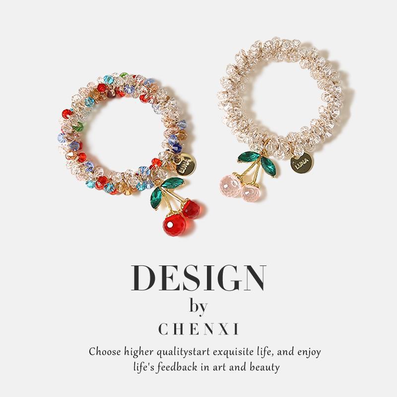 樱桃水钻琉璃水晶发圈气质扎马尾丸子发饰编织发绳皮筋扎头绳