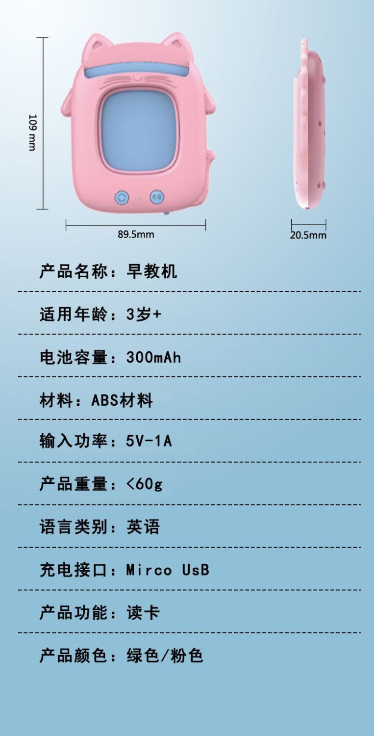 | rechargeable [cat pink] 510 bilingual reading materials + letter children's songs(充电款【猫咪粉色】510个双语读物+字母儿歌) | USD $12.69 | 999999 piece available |