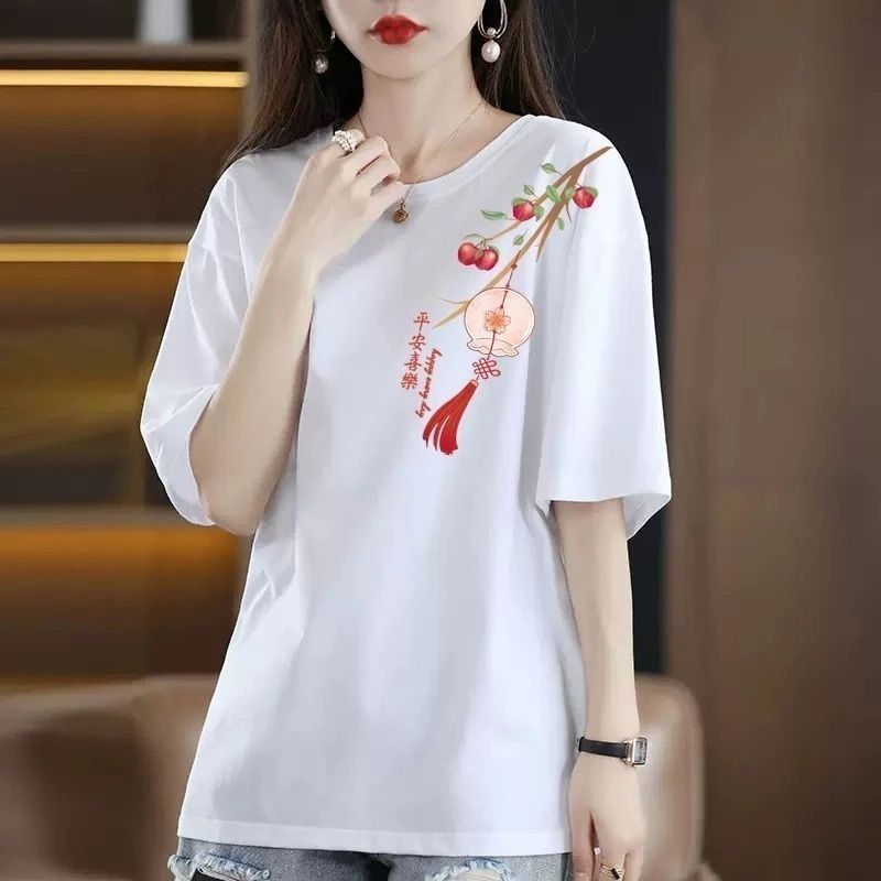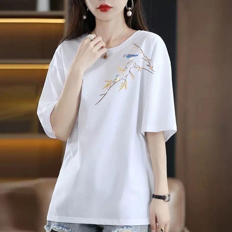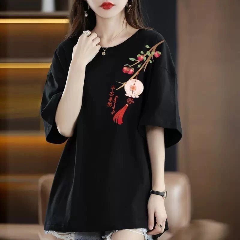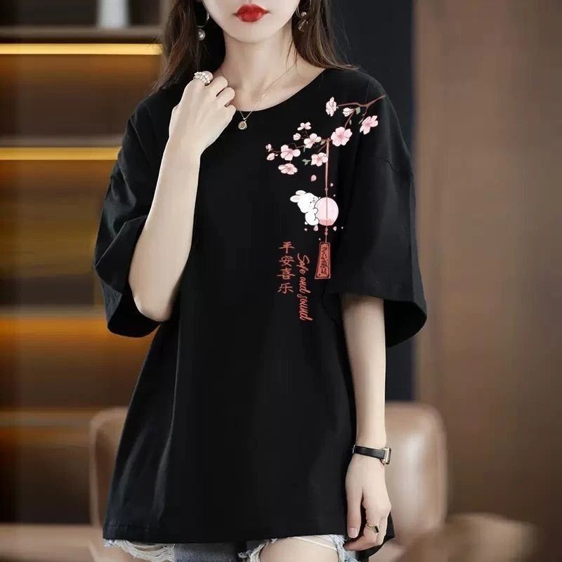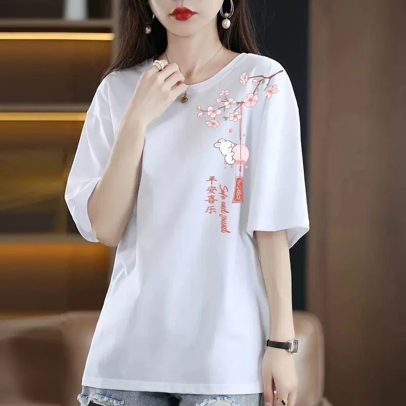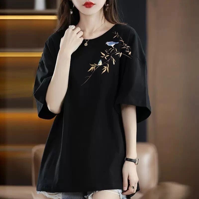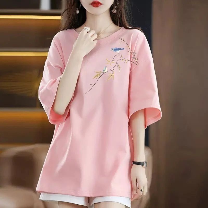 大码女装短袖t恤女2025夏季新款胖mm宽松显瘦百搭中长款休闲上衣
