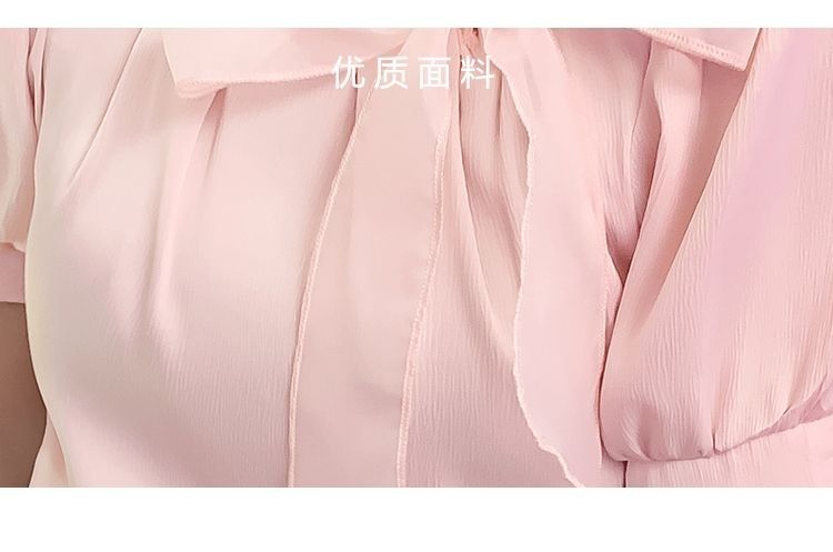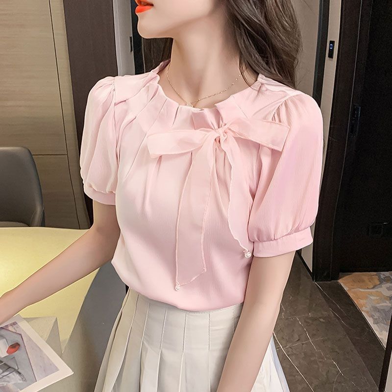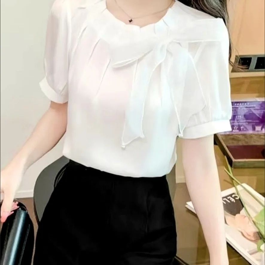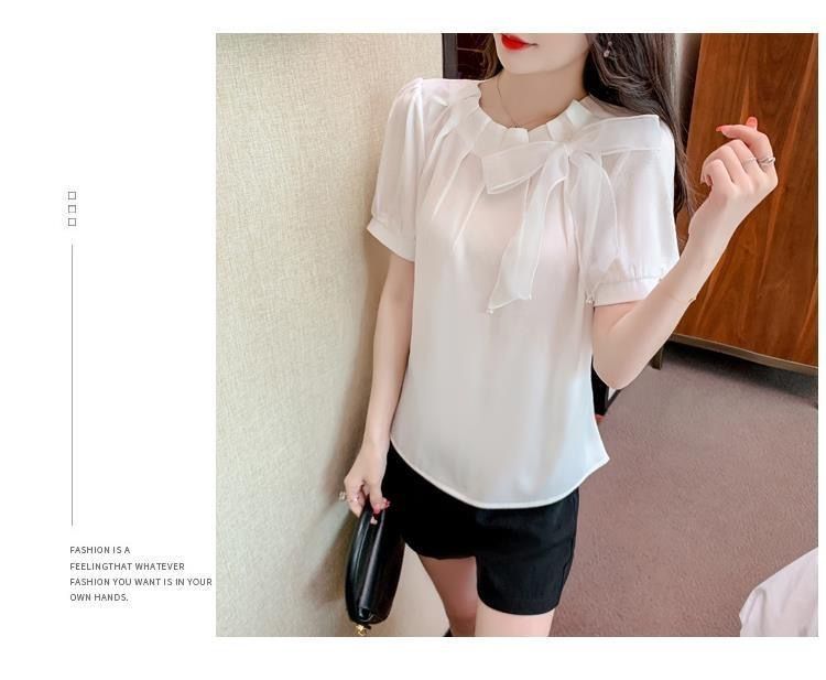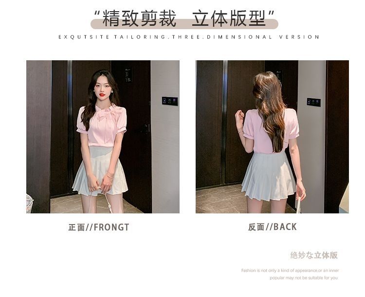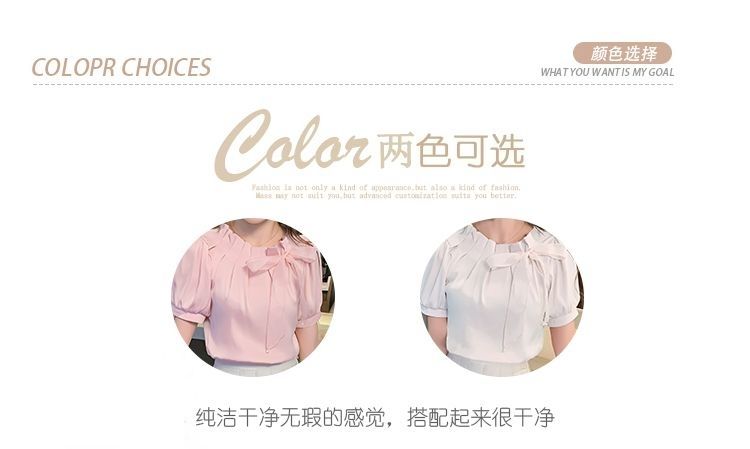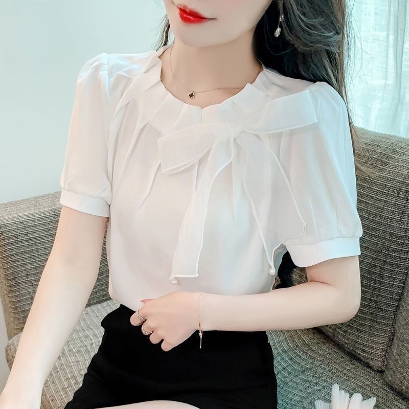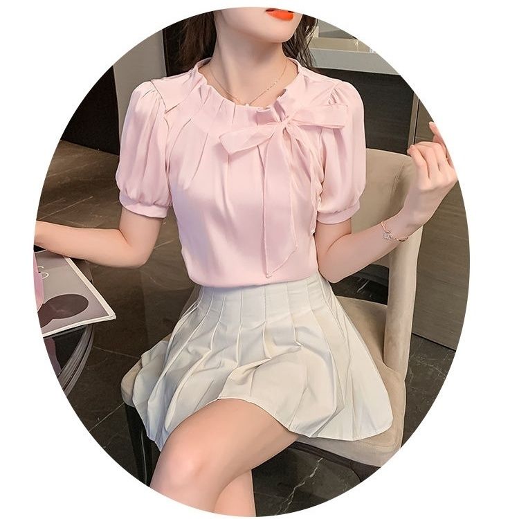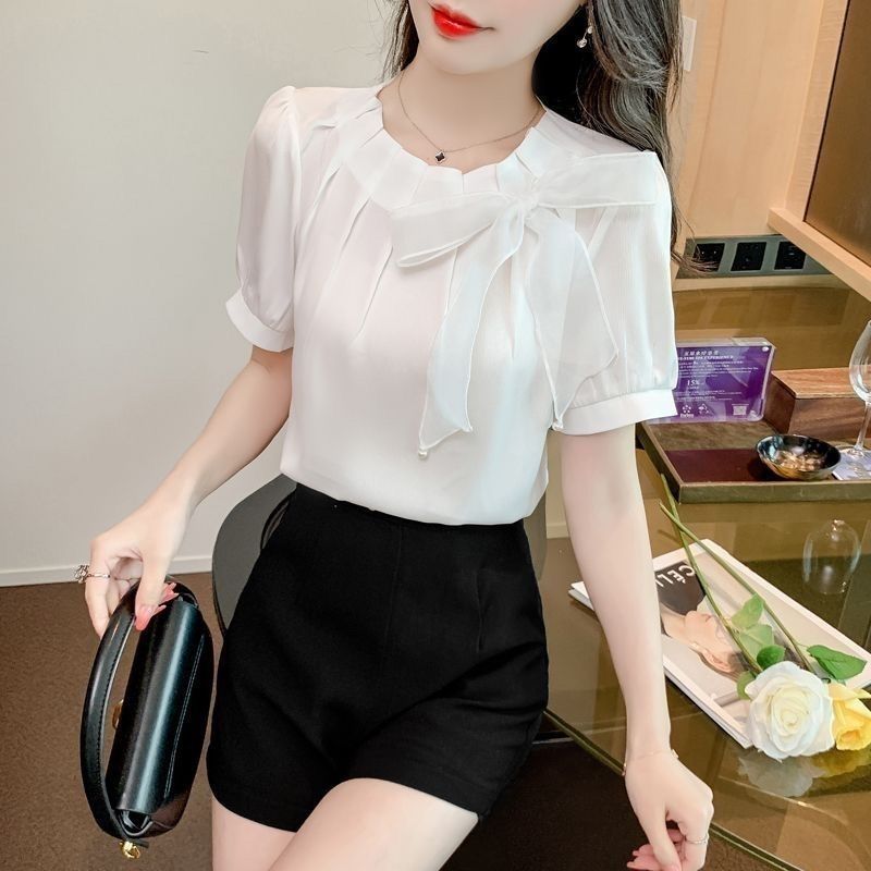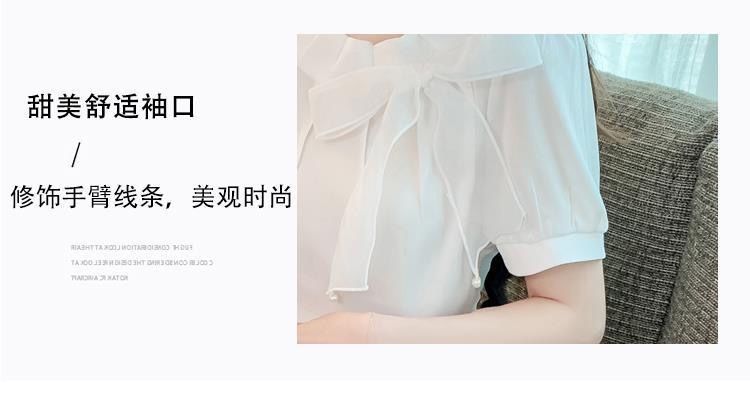 法式别致蝴蝶结短袖雪纺衬衫夏季女装设计感小众上衣洋气漂亮小衫