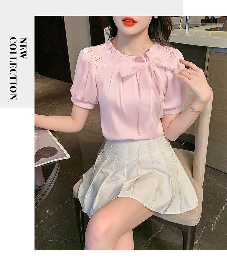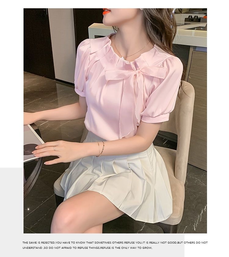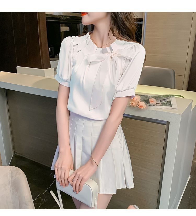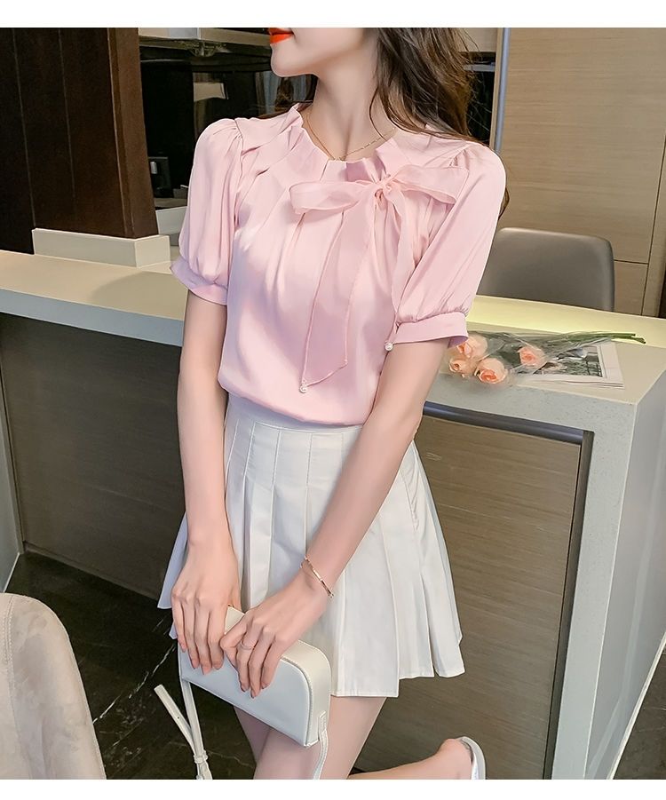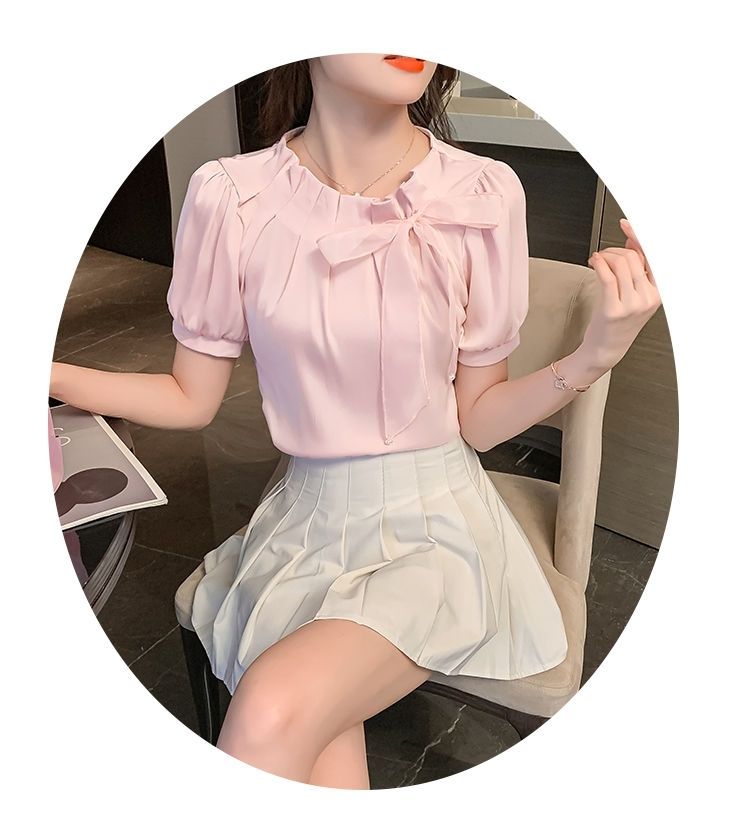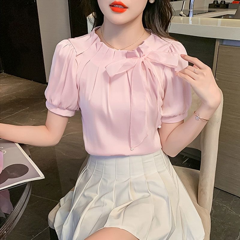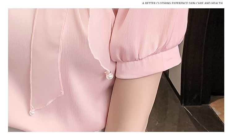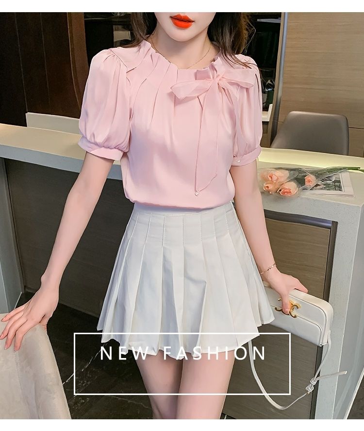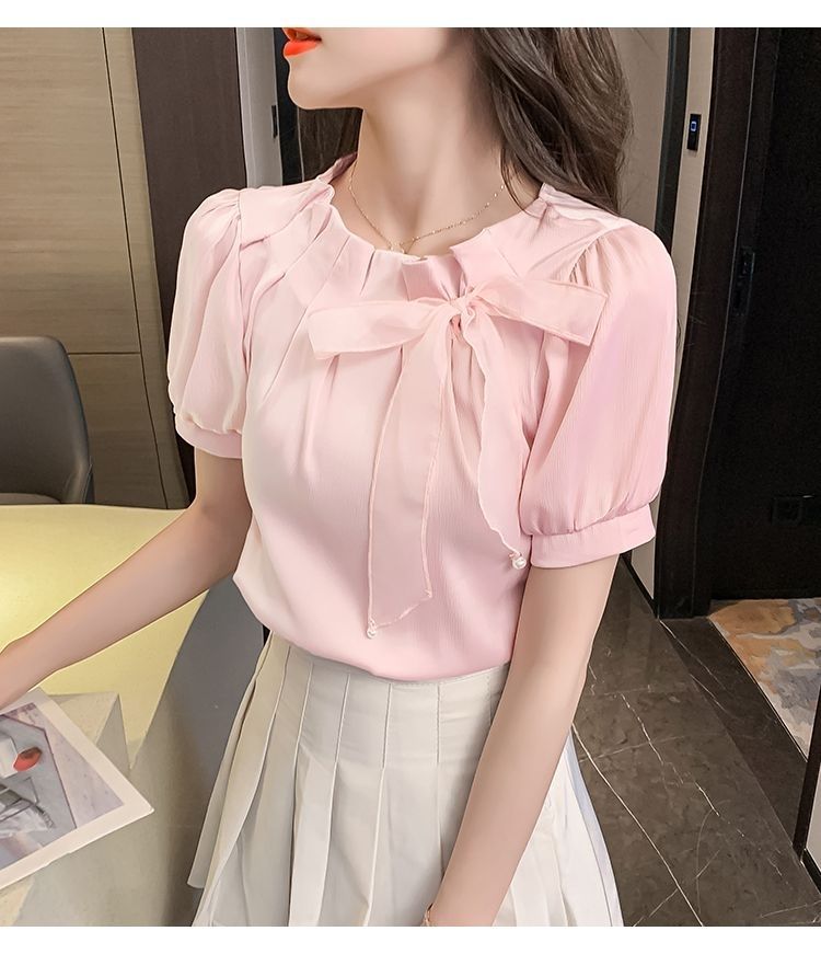 法式别致蝴蝶结短袖雪纺衬衫夏季女装设计感小众上衣洋气漂亮小衫