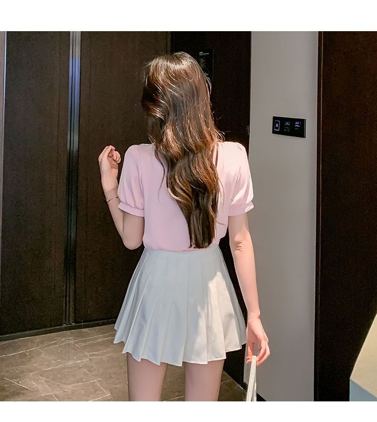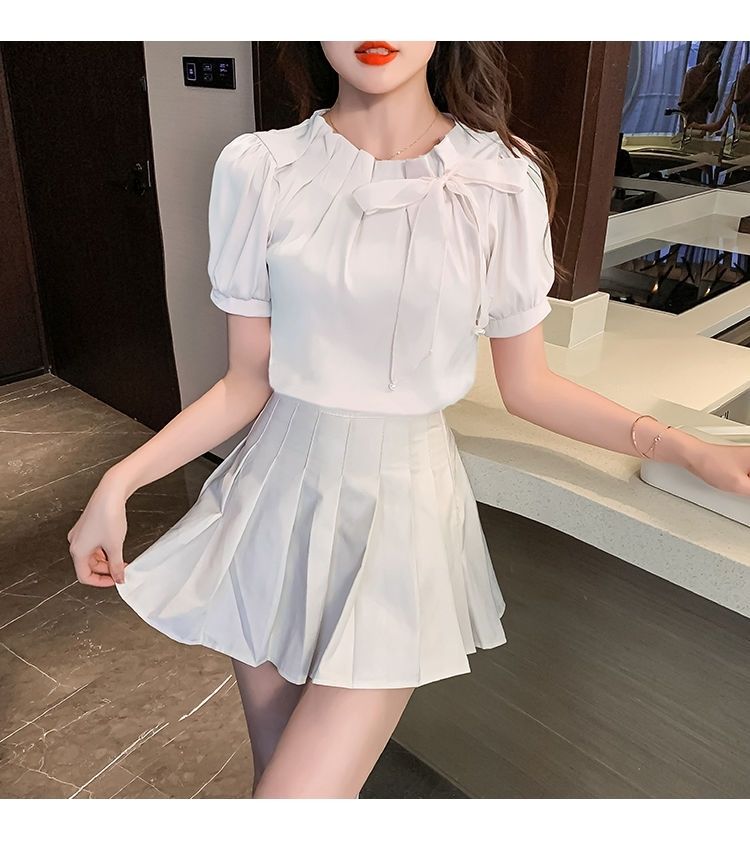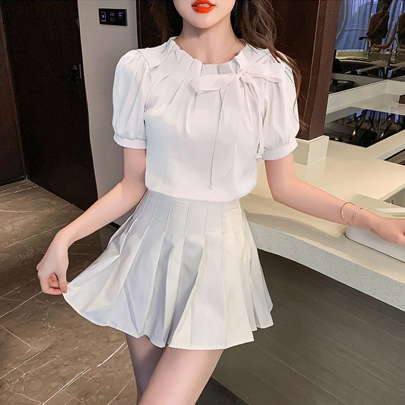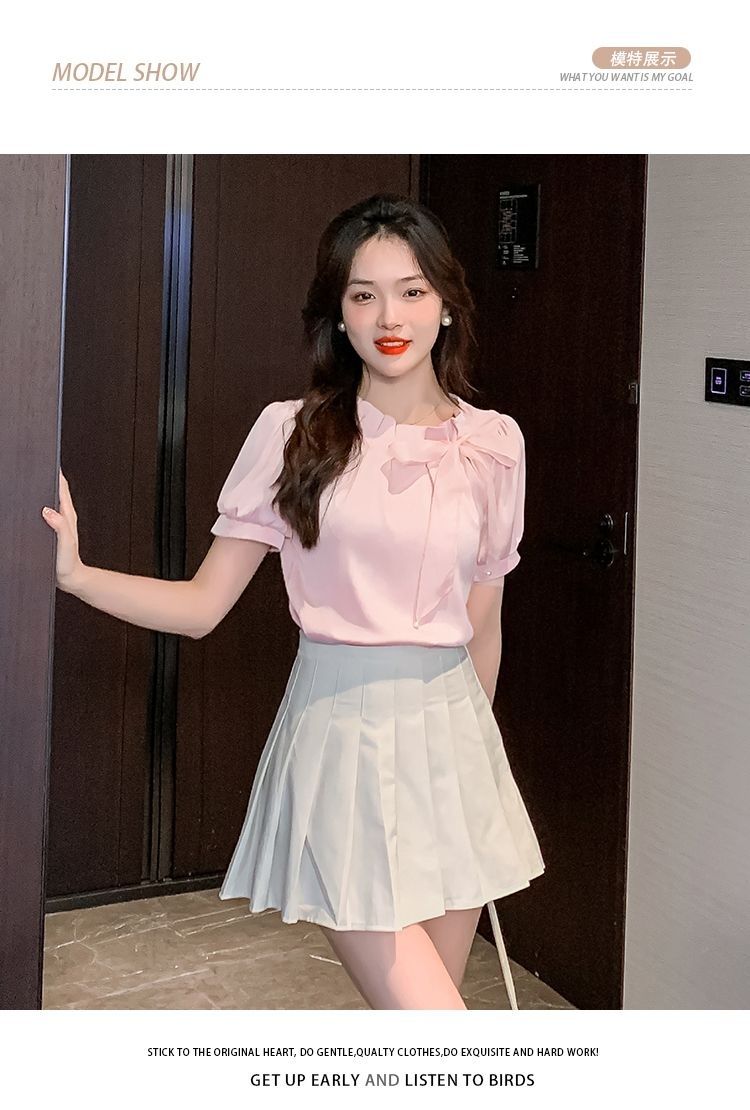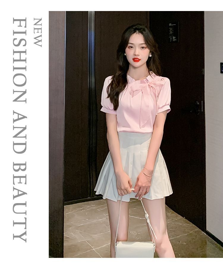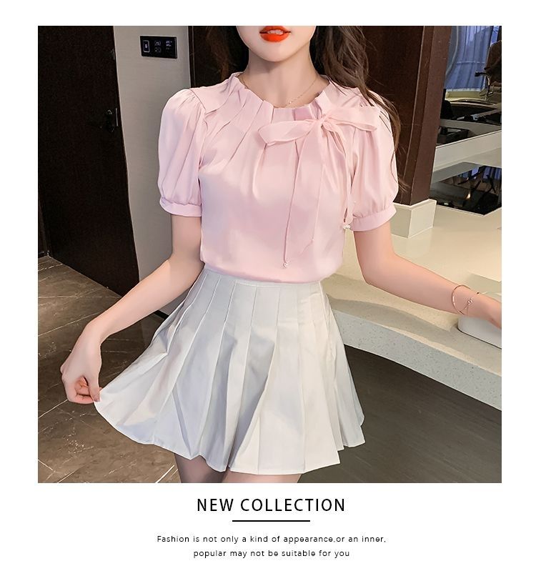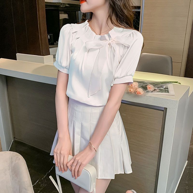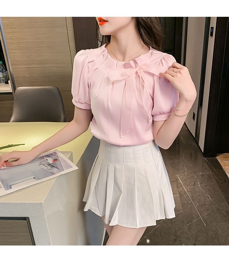 法式别致蝴蝶结短袖雪纺衬衫夏季女装设计感小众上衣洋气漂亮小衫