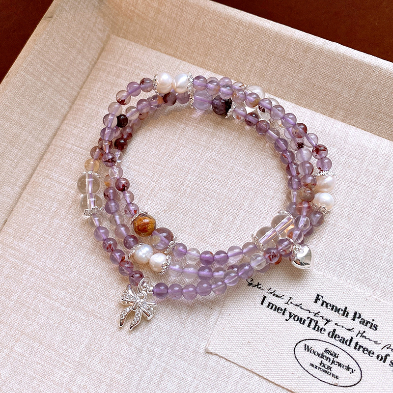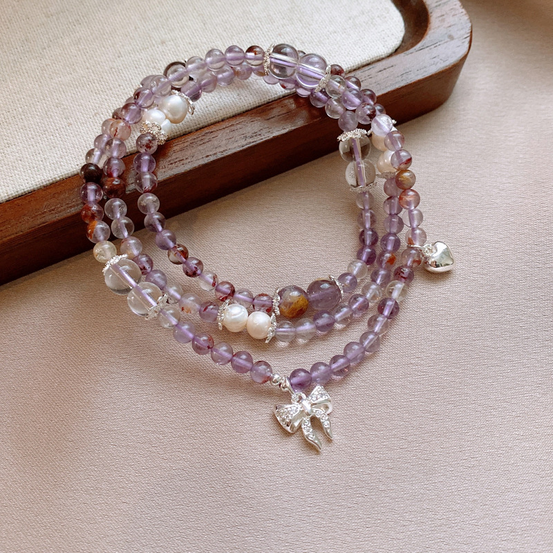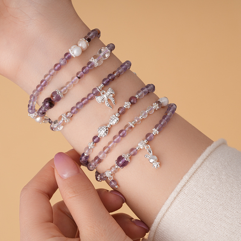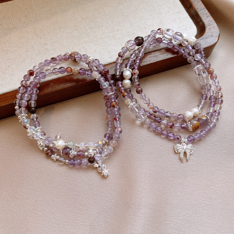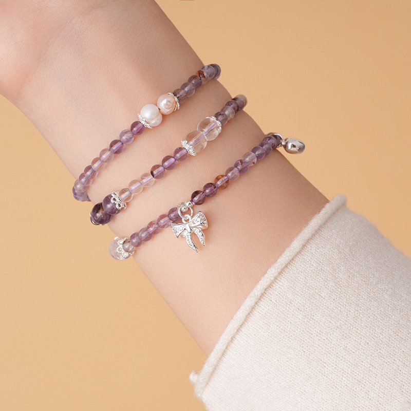 紫幽灵淡水珍珠蝴蝶结手链轻奢高级感精致时尚水晶手串新款手饰女