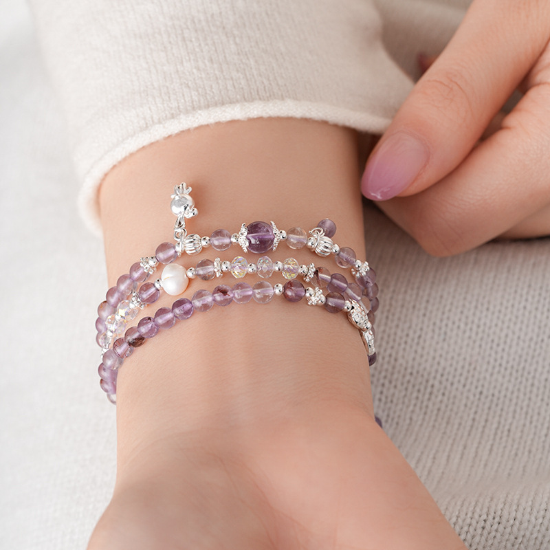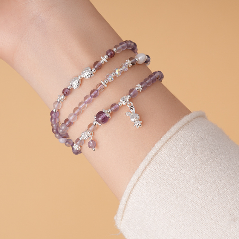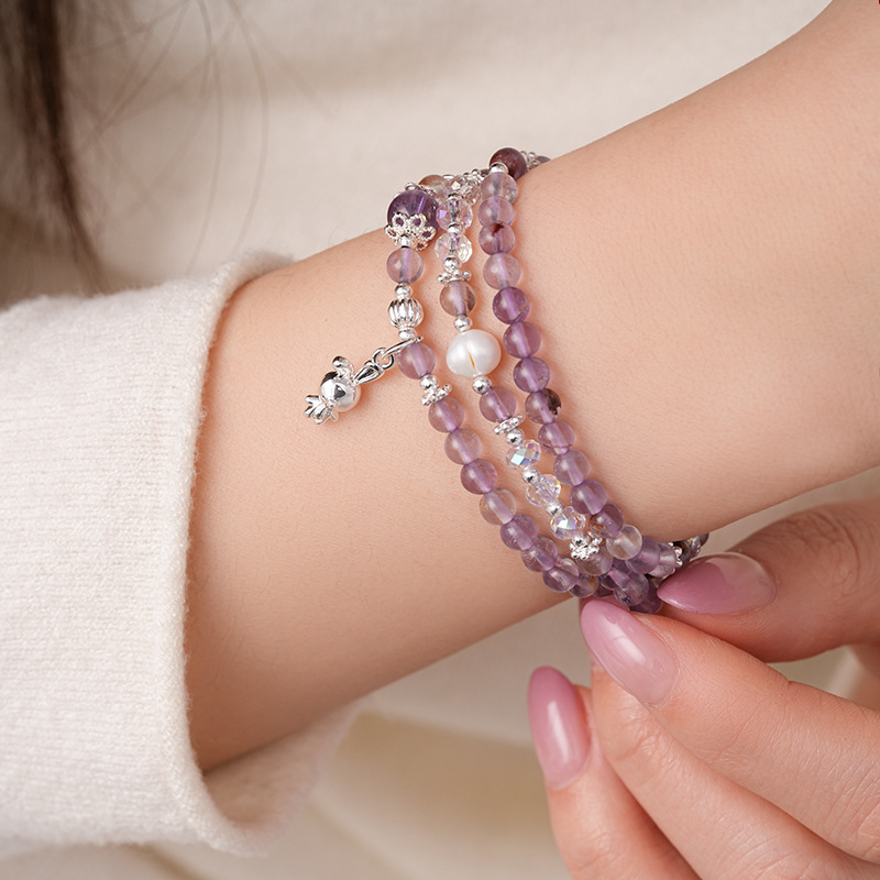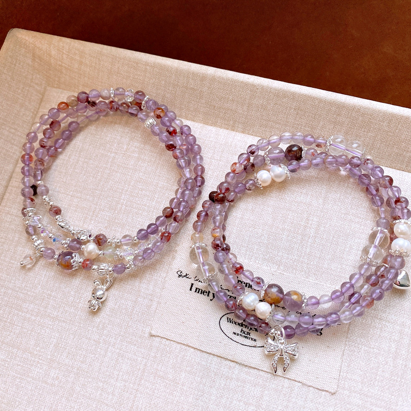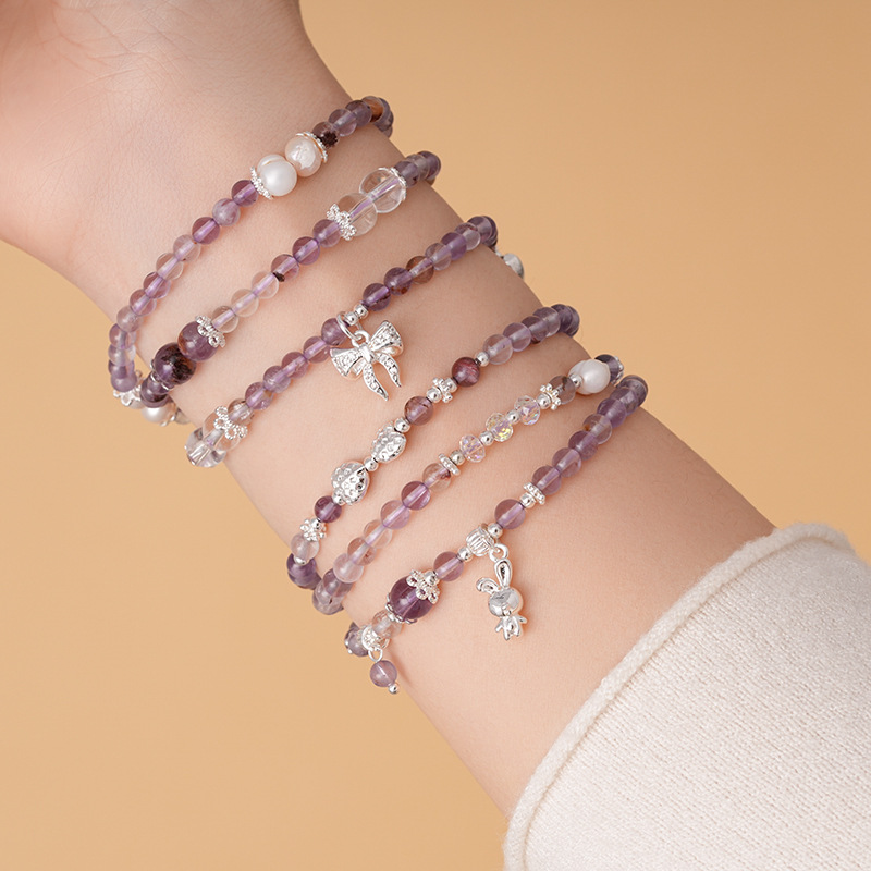 紫幽灵淡水珍珠蝴蝶结手链轻奢高级感精致时尚水晶手串新款手饰女