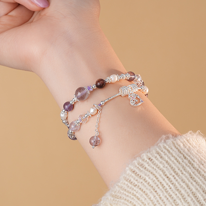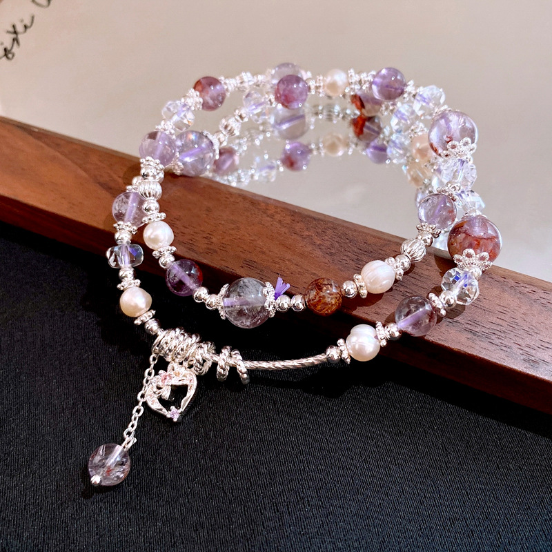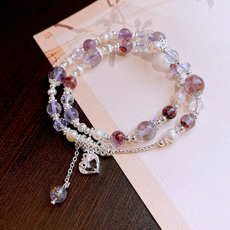 淡水珍珠爱心流苏紫水晶手链女国潮气质复古手串新中式高级感手饰