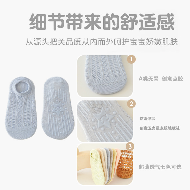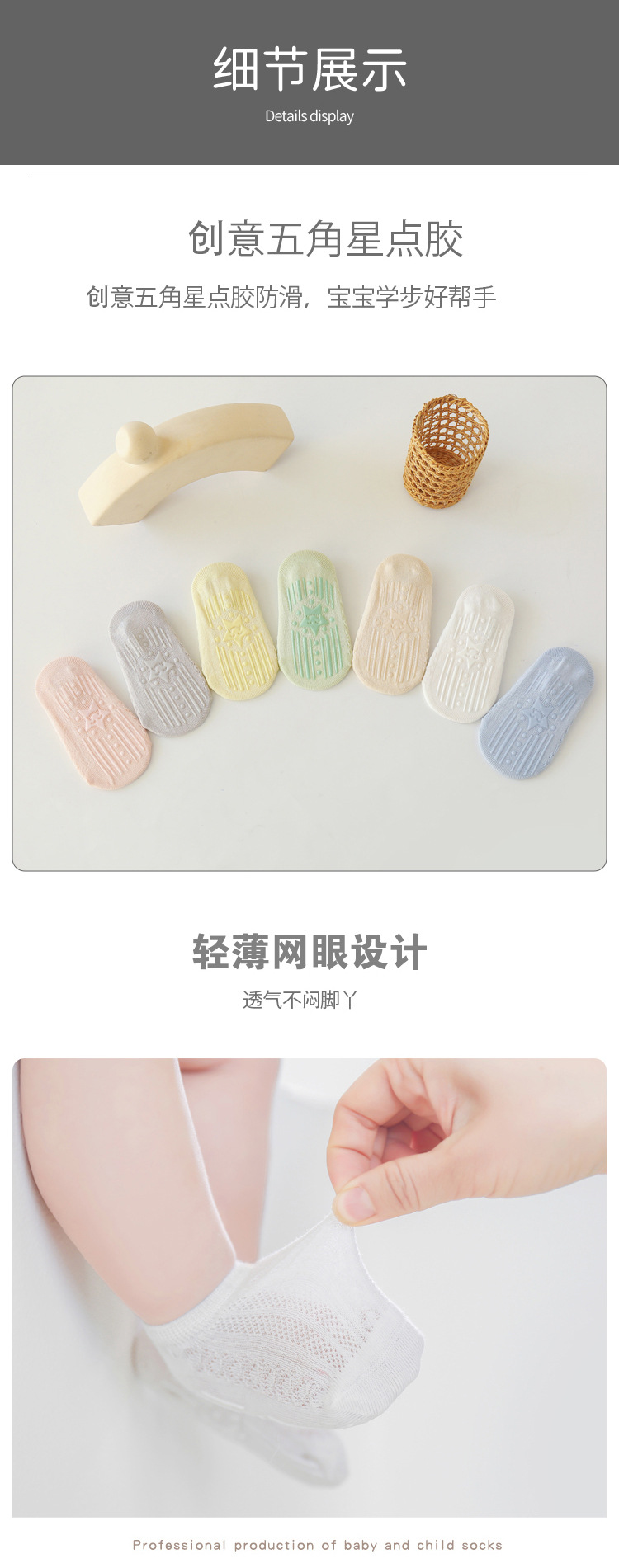 夏季薄款无骨宝宝网眼短船袜婴幼儿童防滑底地板袜创意五角星点胶