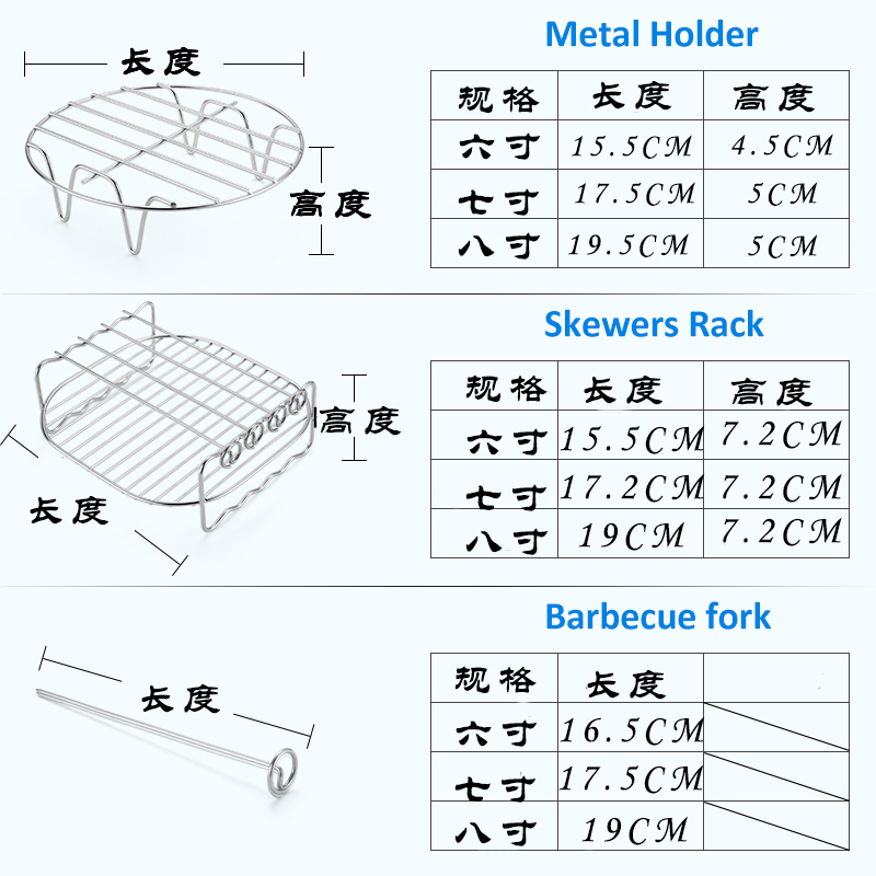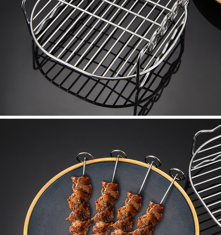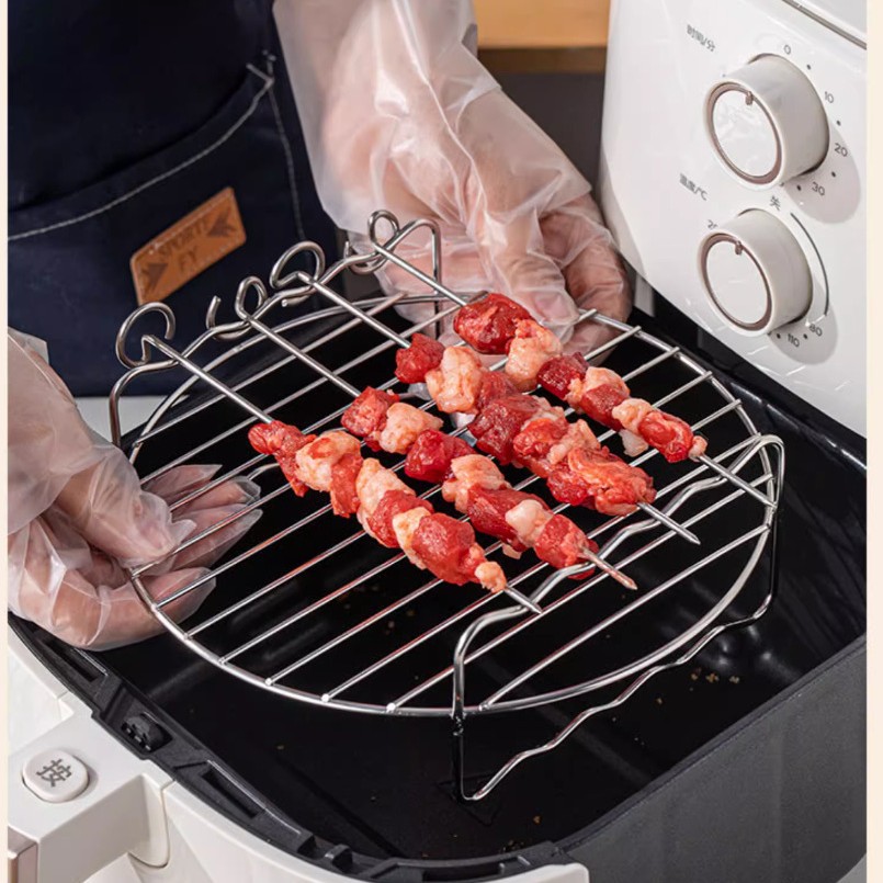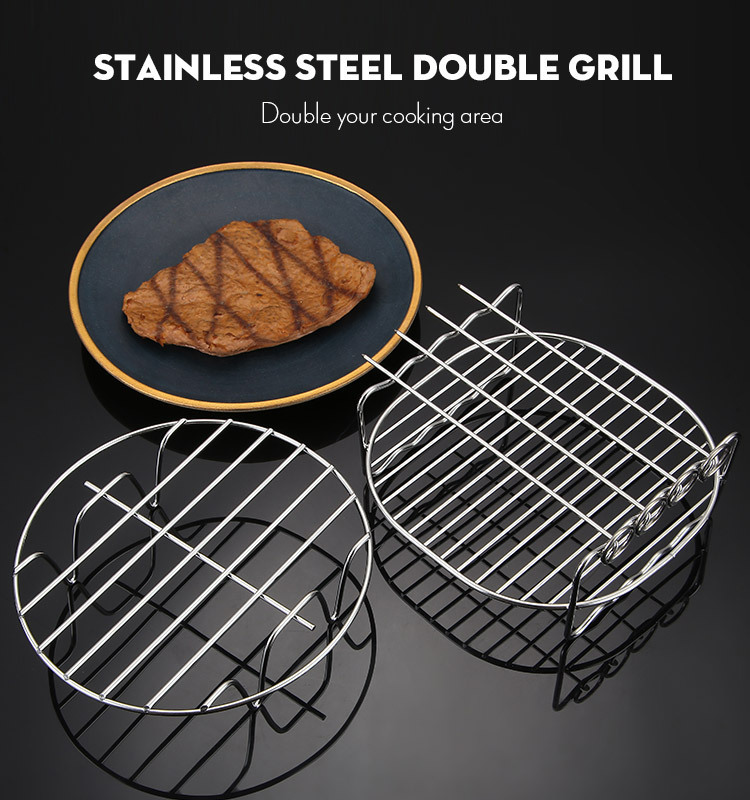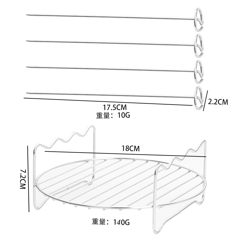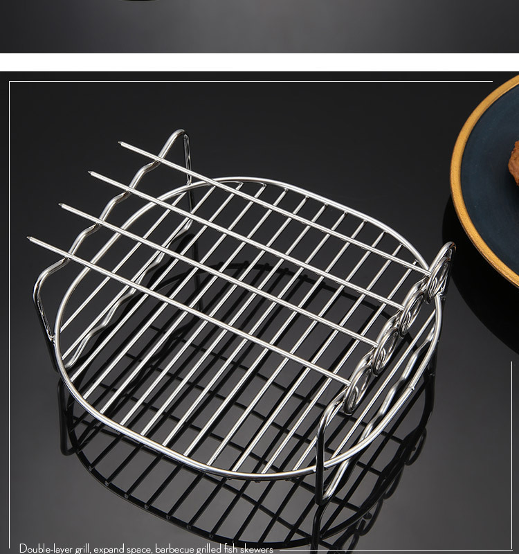 不锈钢67寸8寸空气炸锅双层蒸烤架4针电炸锅配件烧烤架子内置网架