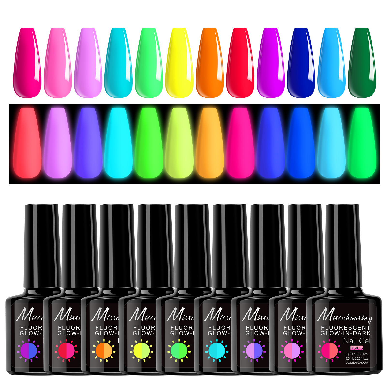 跨境专供美甲爆款12色美甲色胶荧光色UV LED甲油胶夜光胶批发套装
