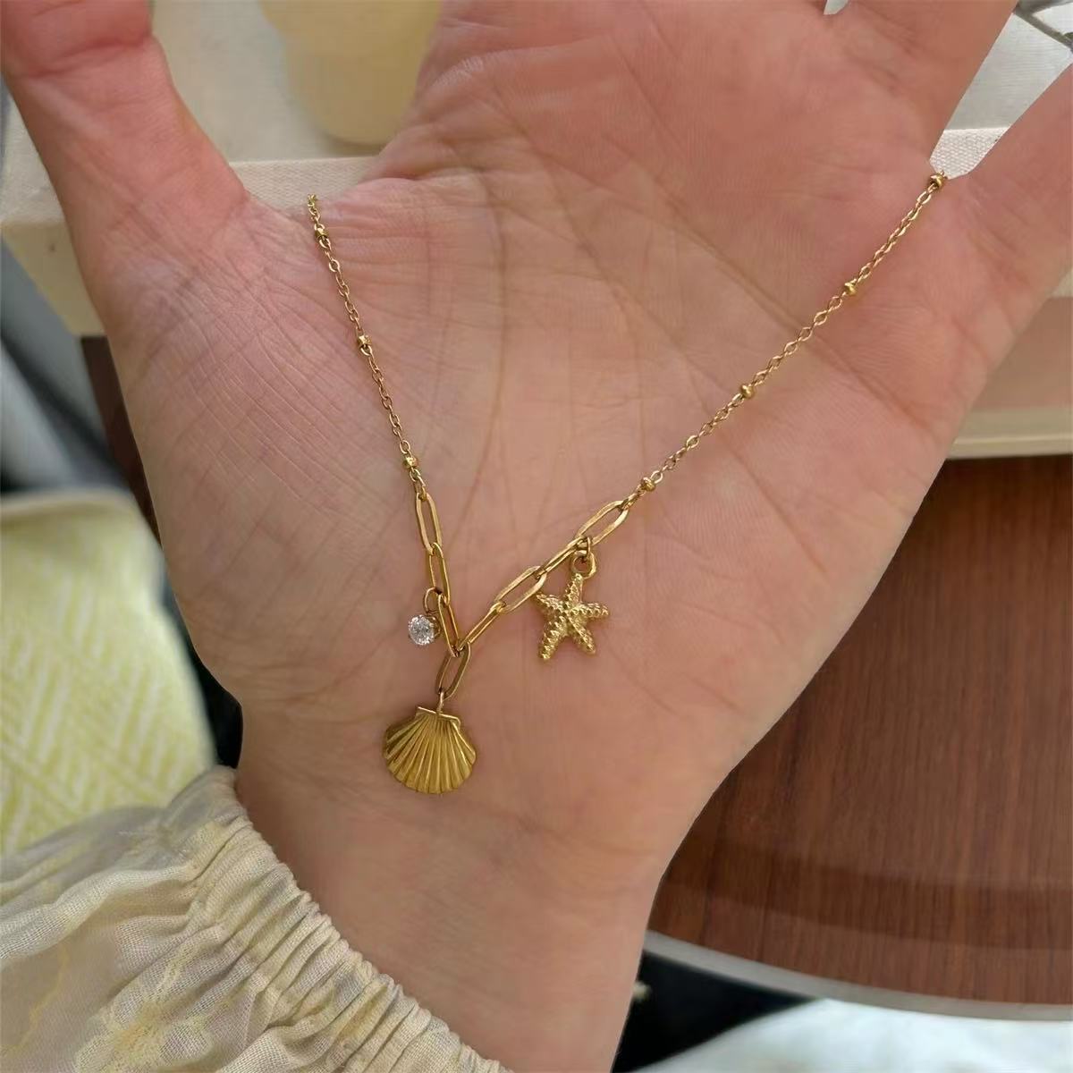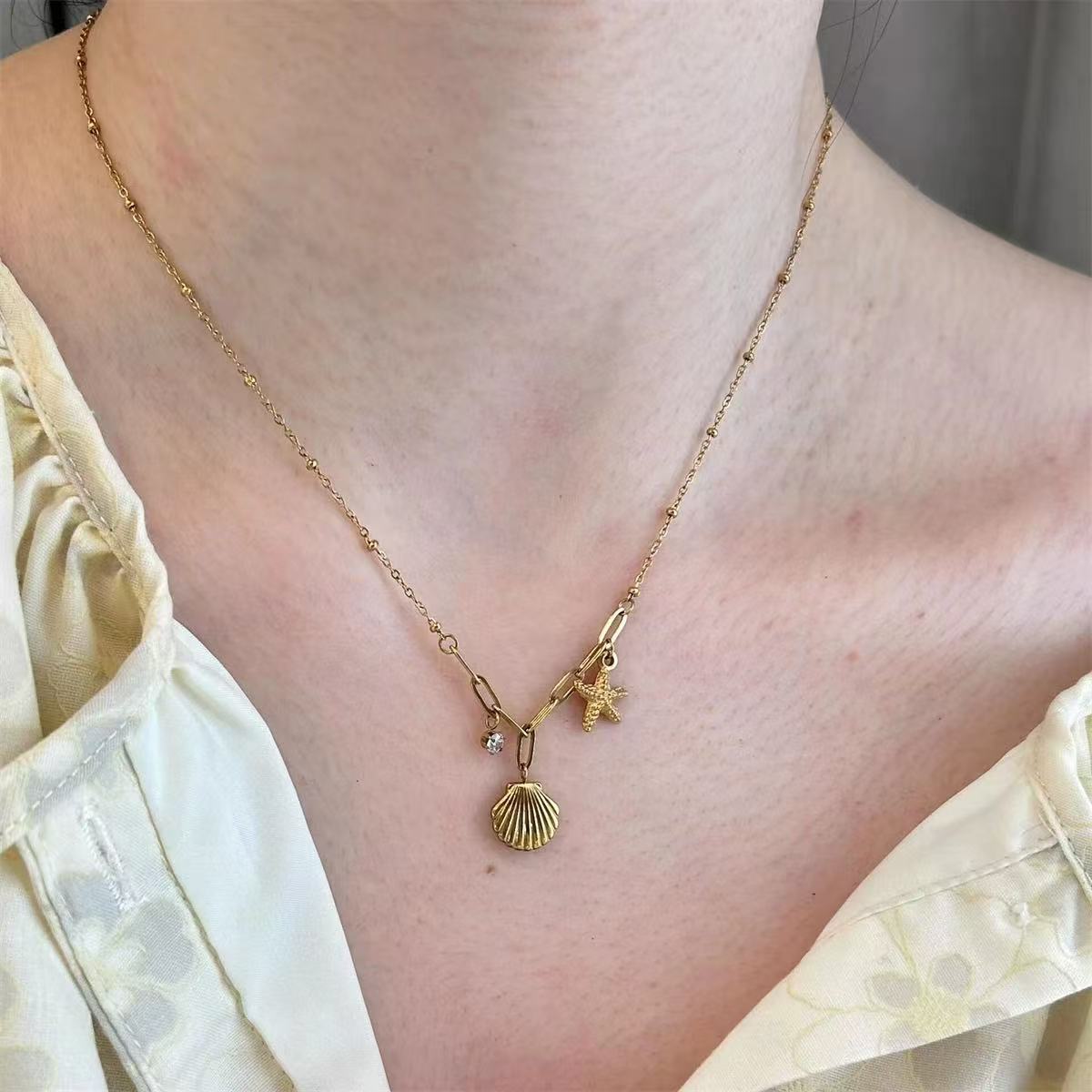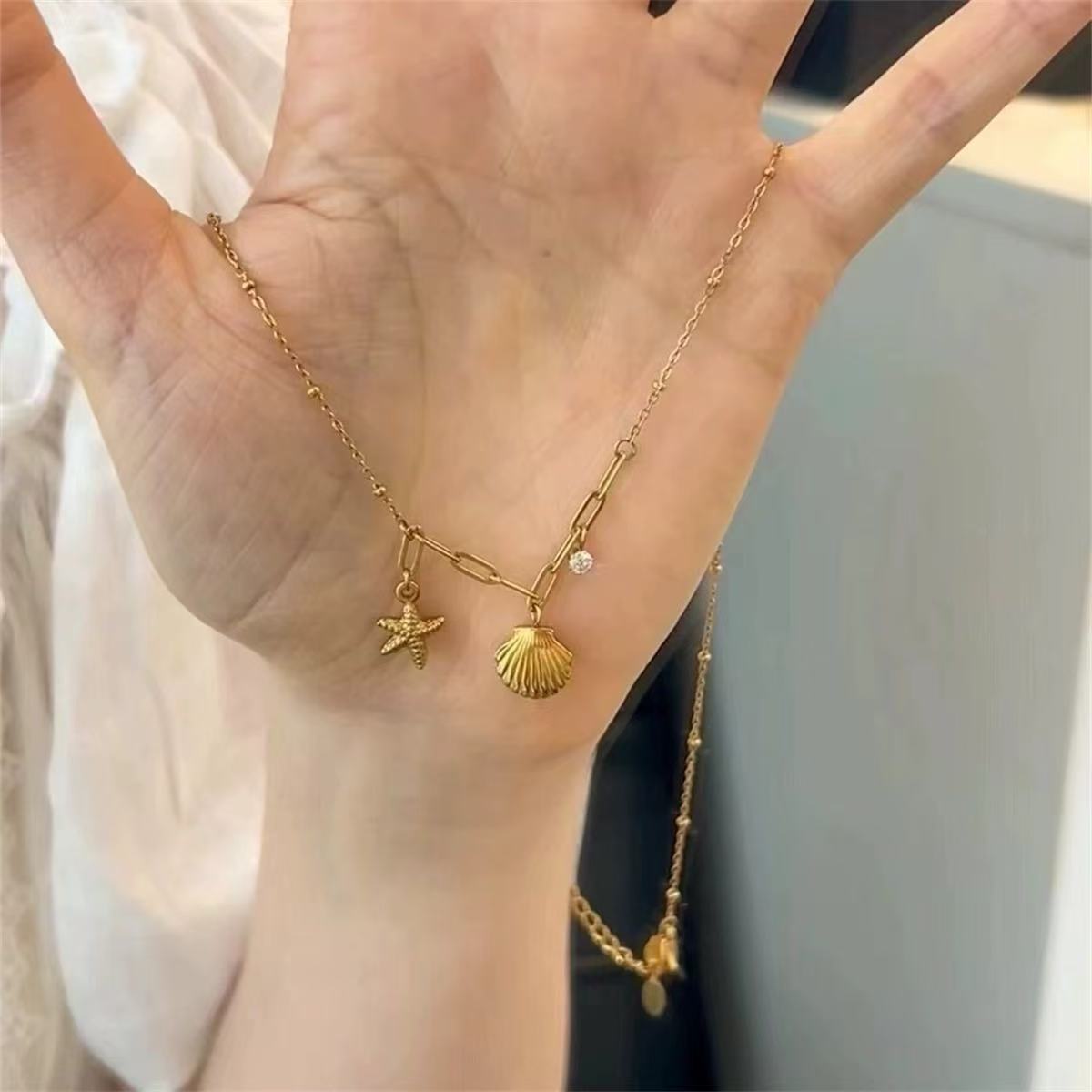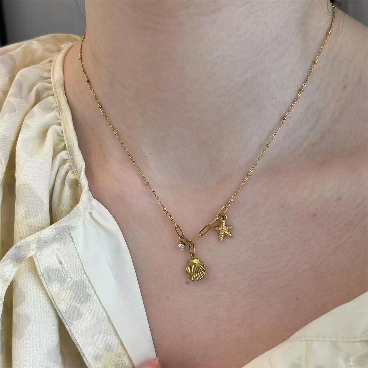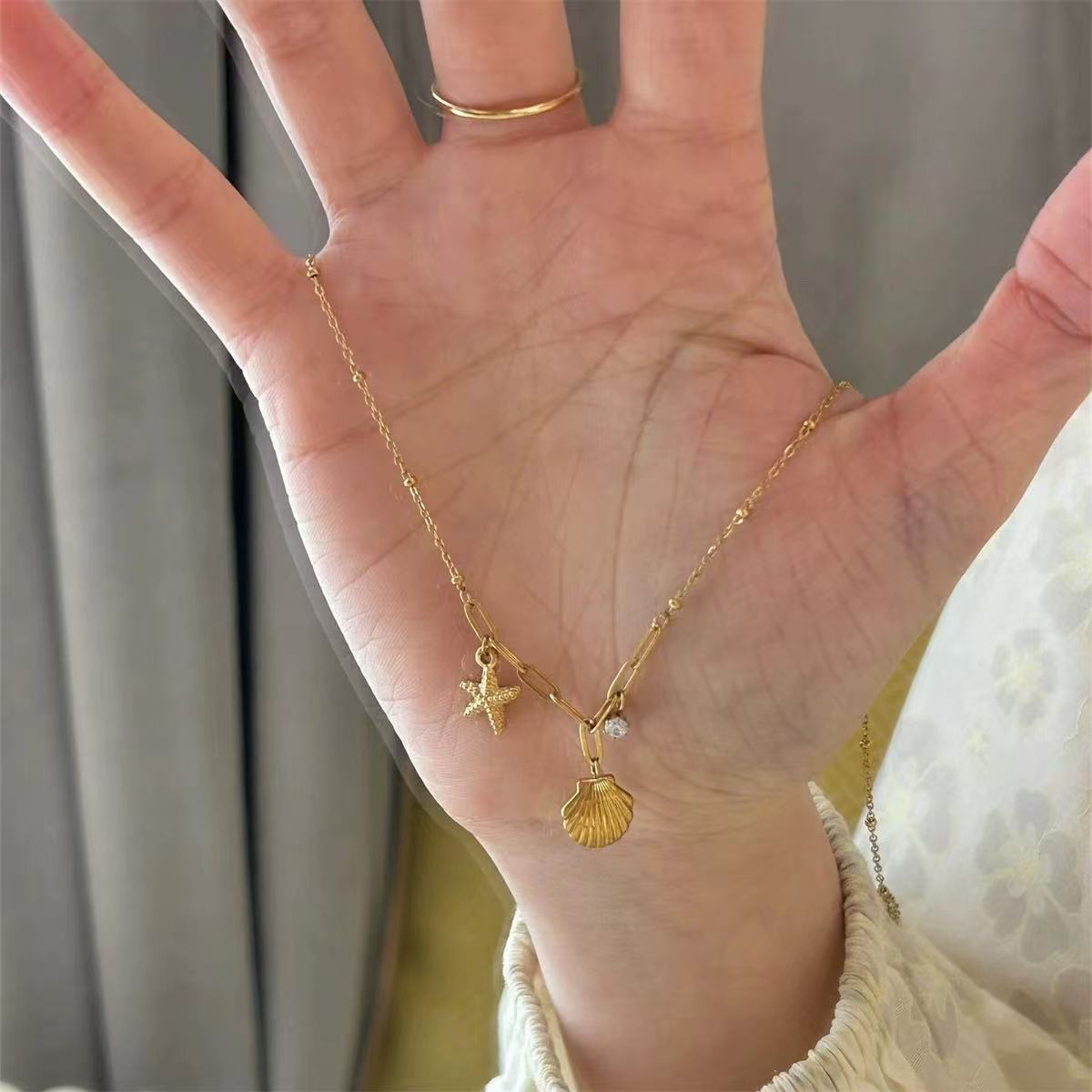 海岛风海星贝壳吊坠钛钢镀18K金保色项链女小众设计度假风锁骨链