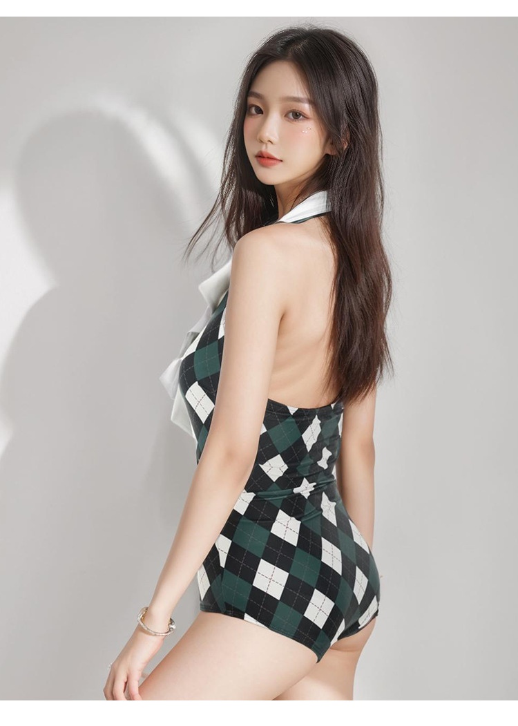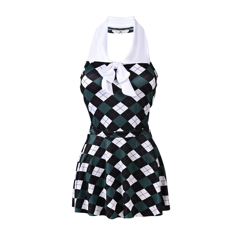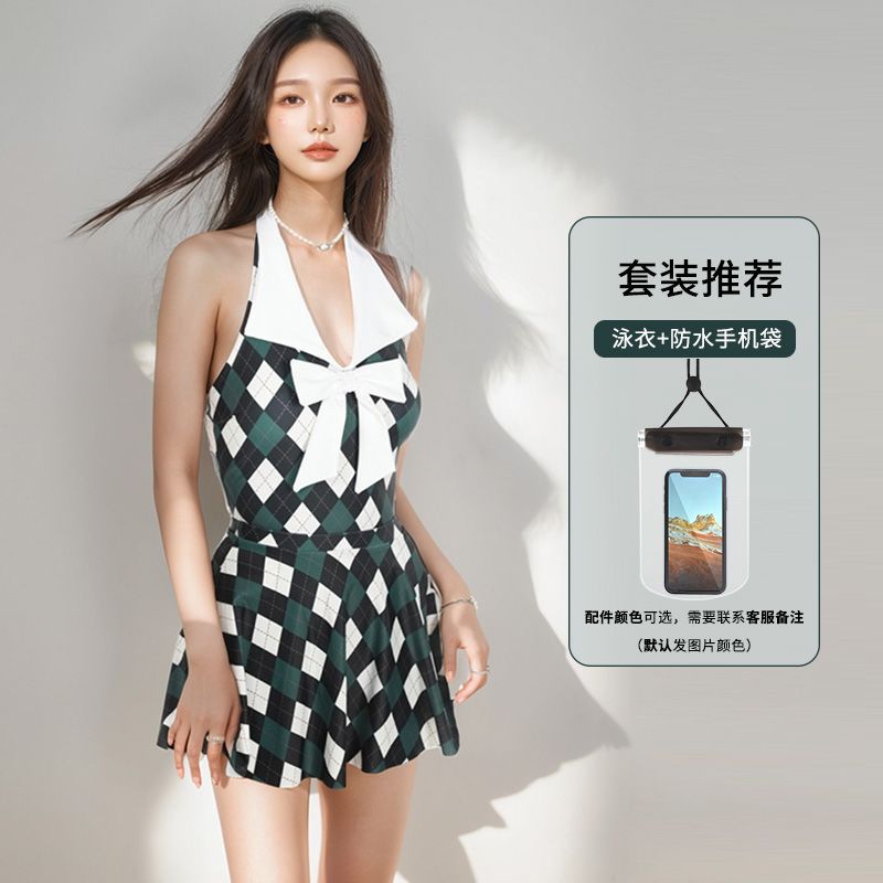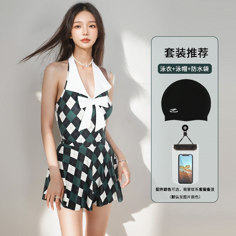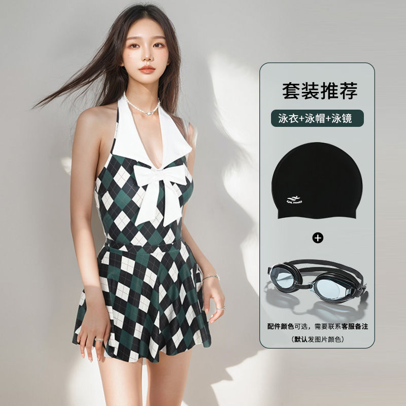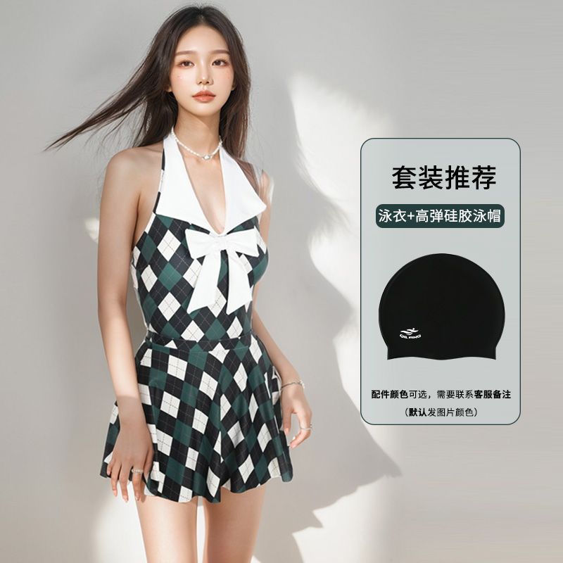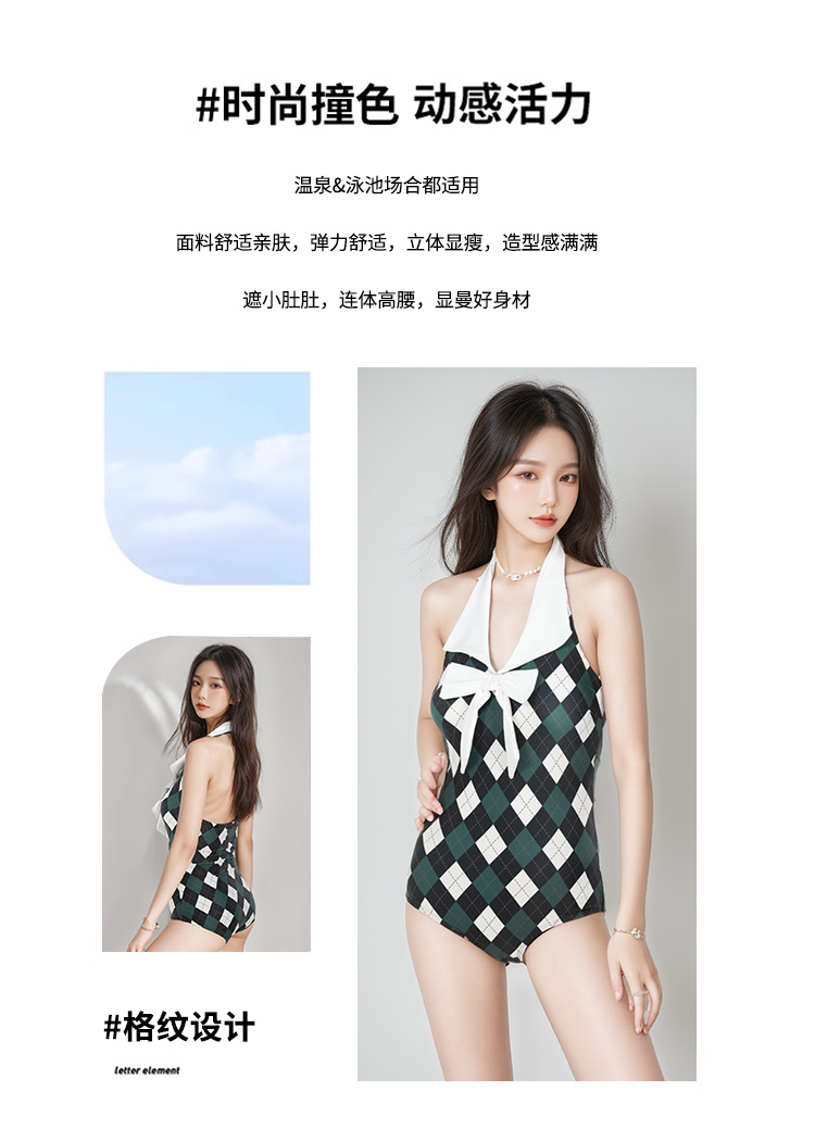 泳衣女新款连体美式复古学院辣妹经典菱格显瘦遮肚温泉度假比基尼