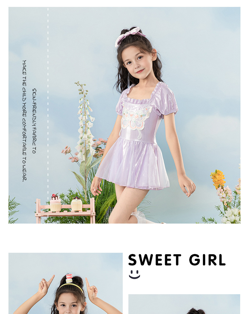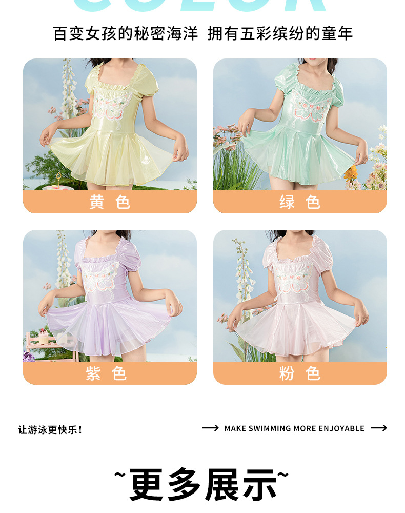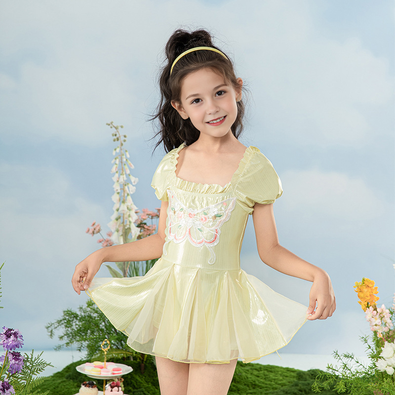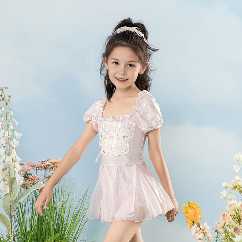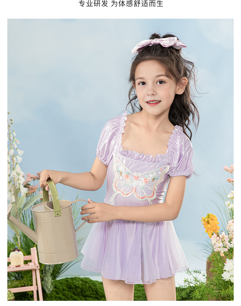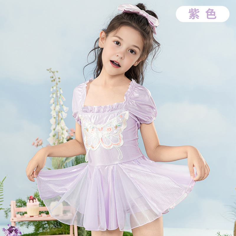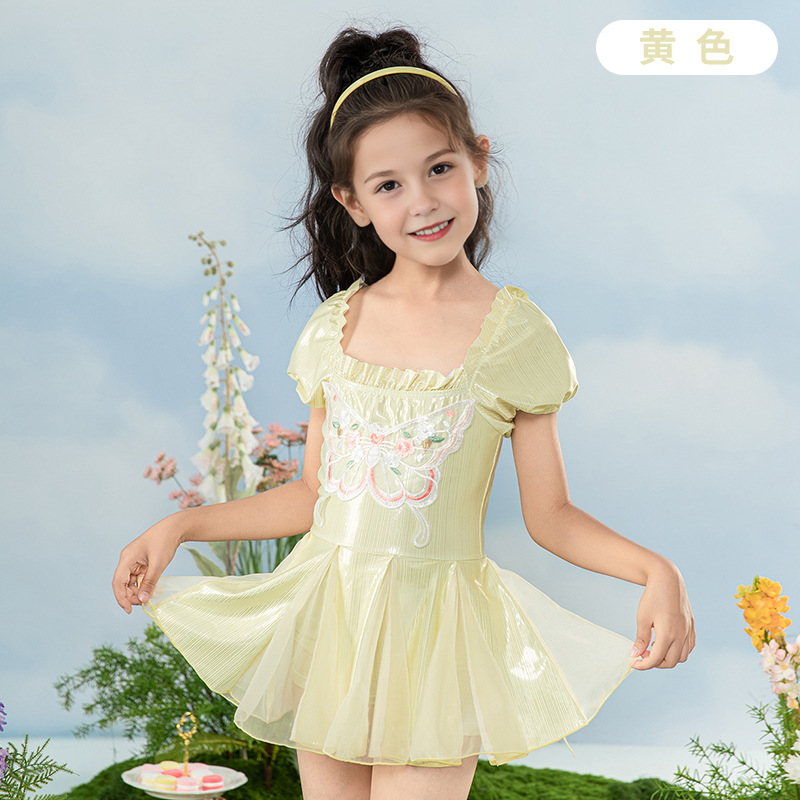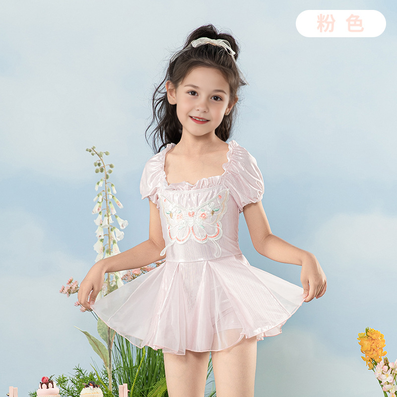 儿童泳衣女童连体韩版洋气蝴蝶中小童可爱女孩公主裙海边游泳衣