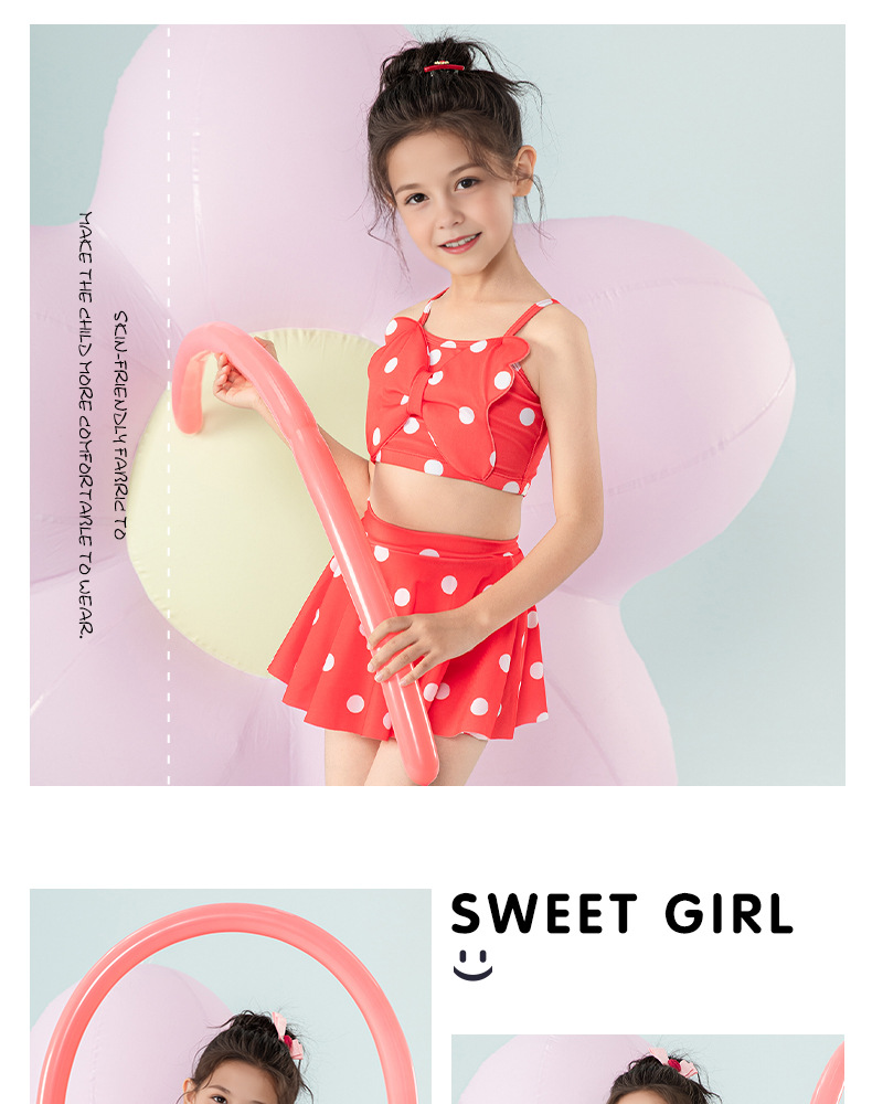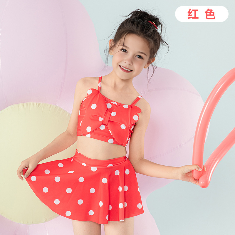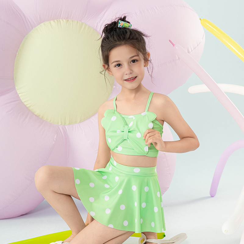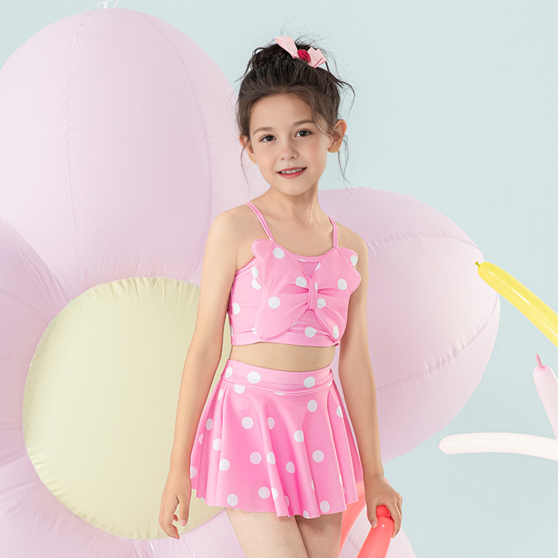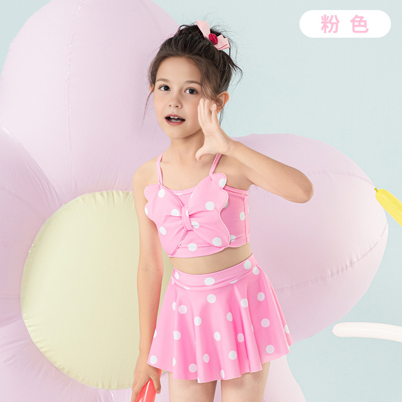 女童泳衣宝宝可爱公主分体裙式游泳衣中小童女孩蝴蝶结泳装