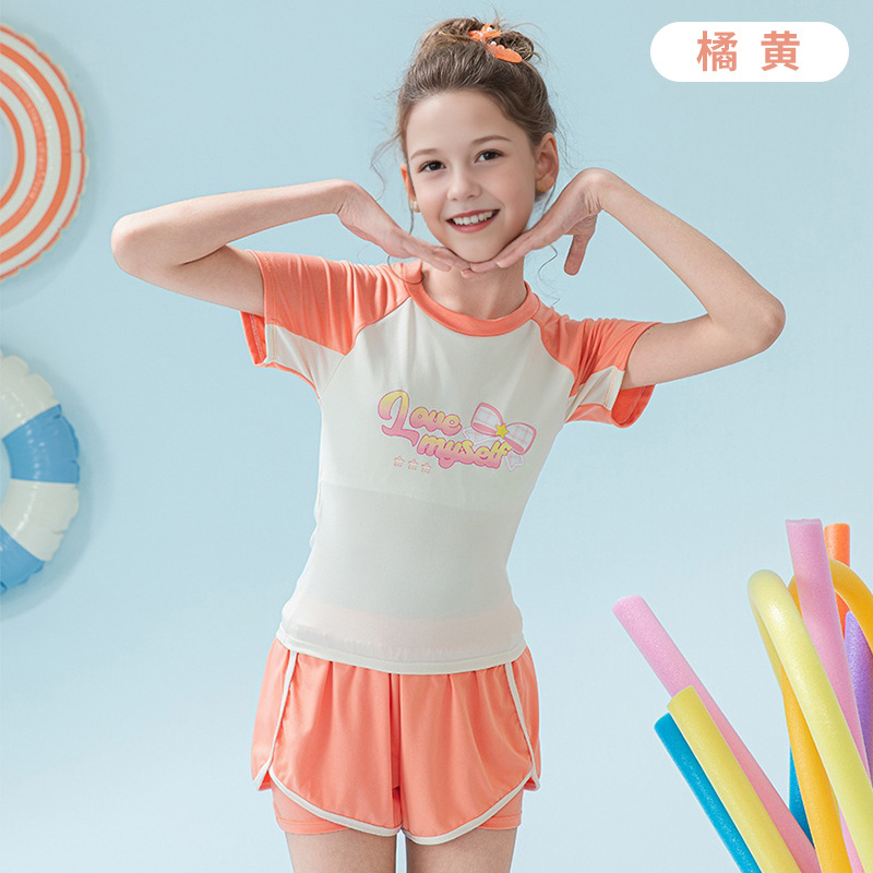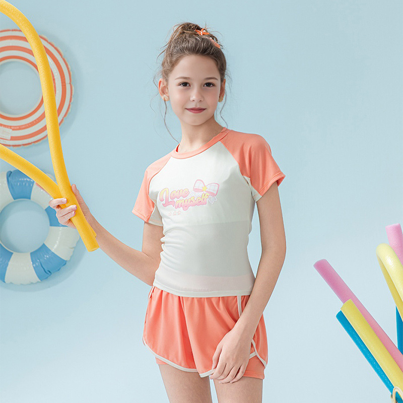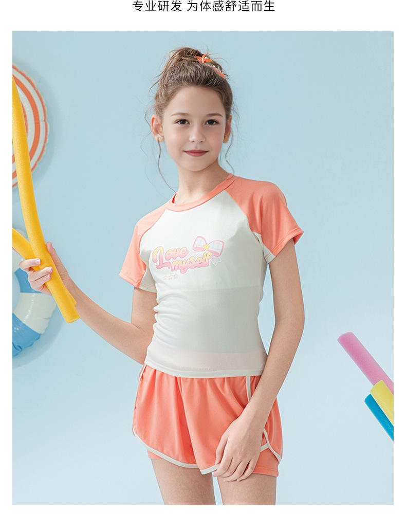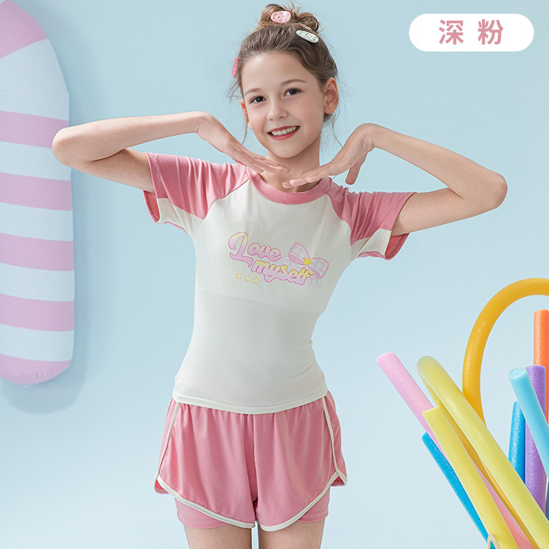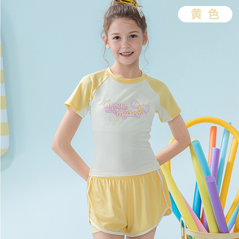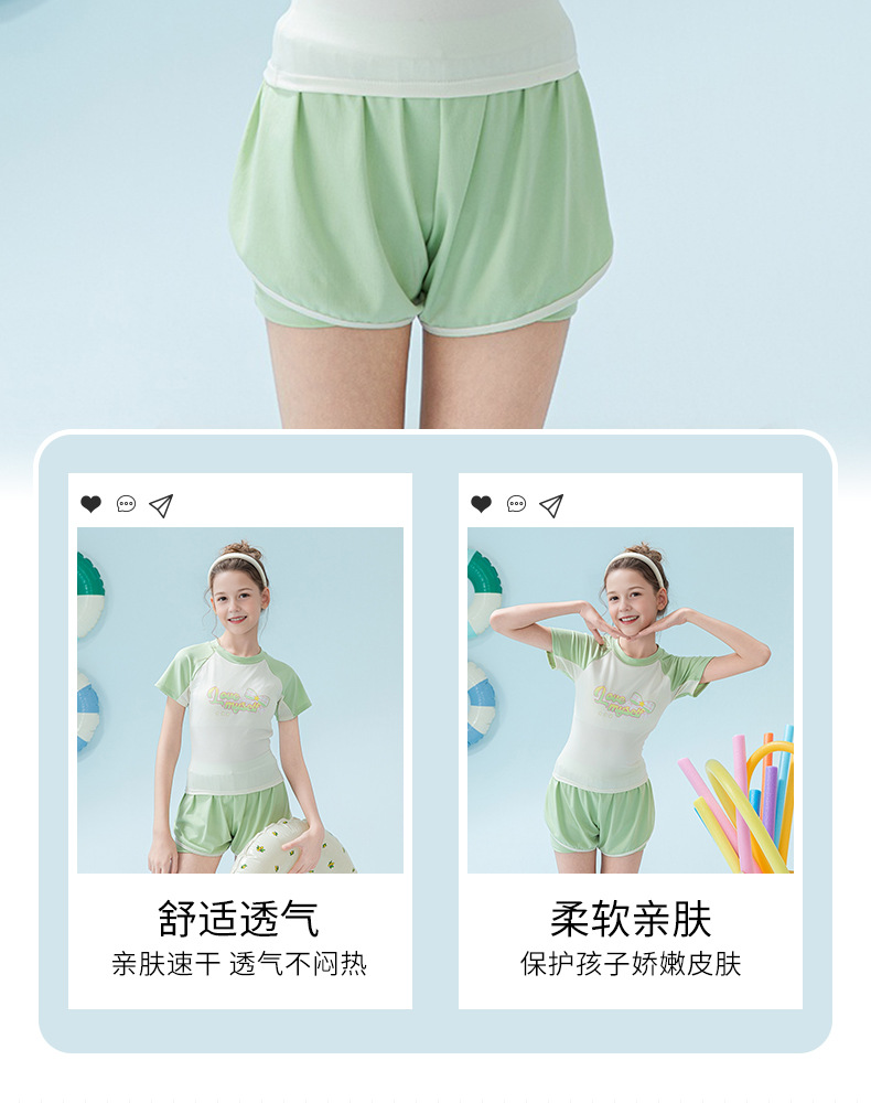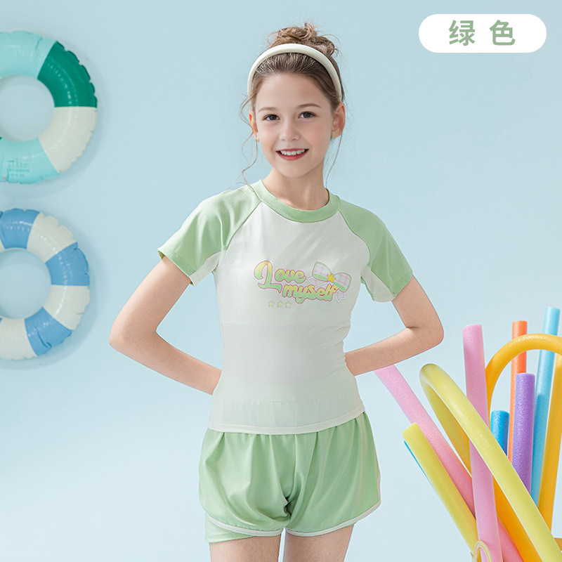 儿童泳衣女童分体两件套2025新款夏中大童初中生保守平角少女泳装