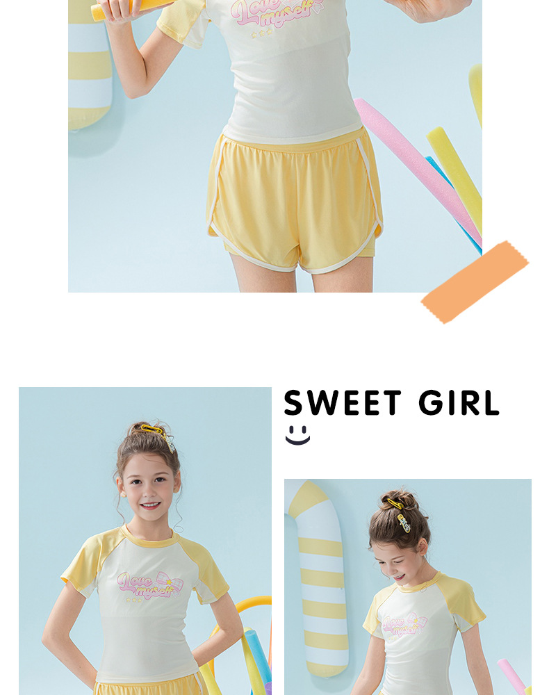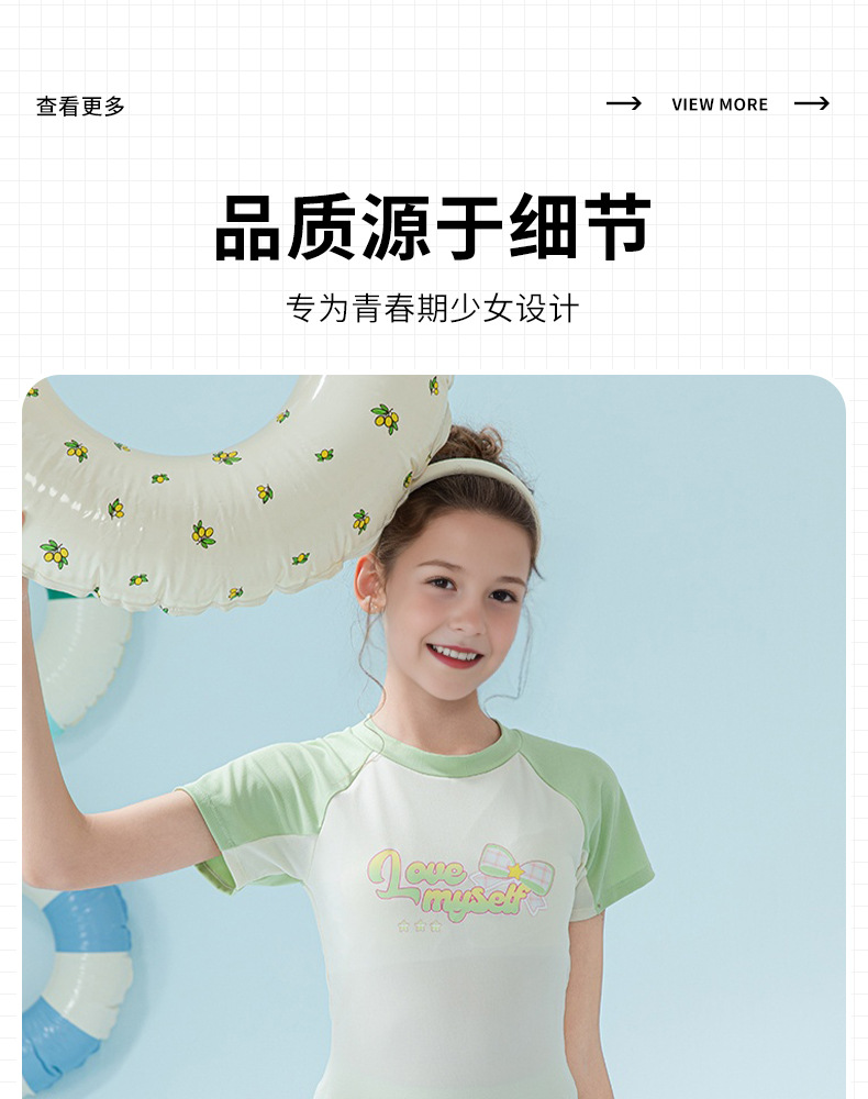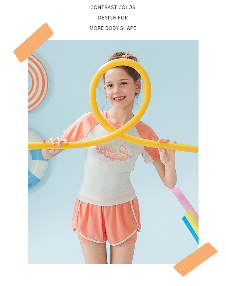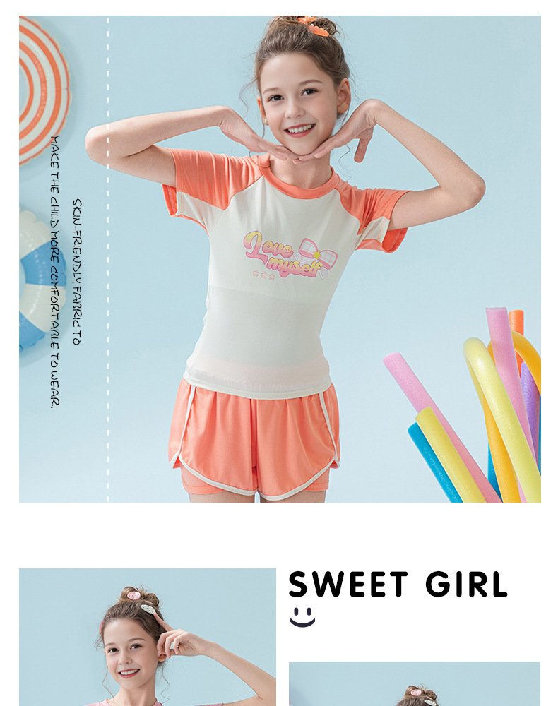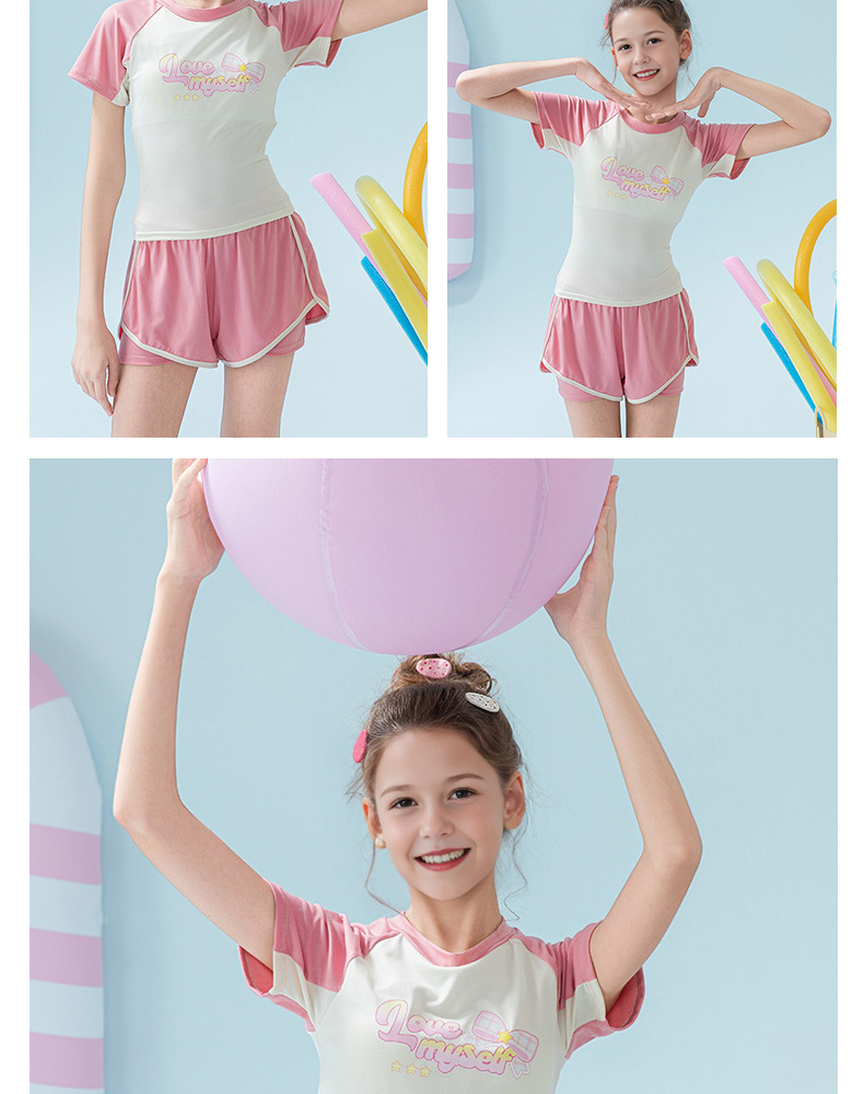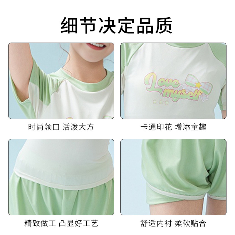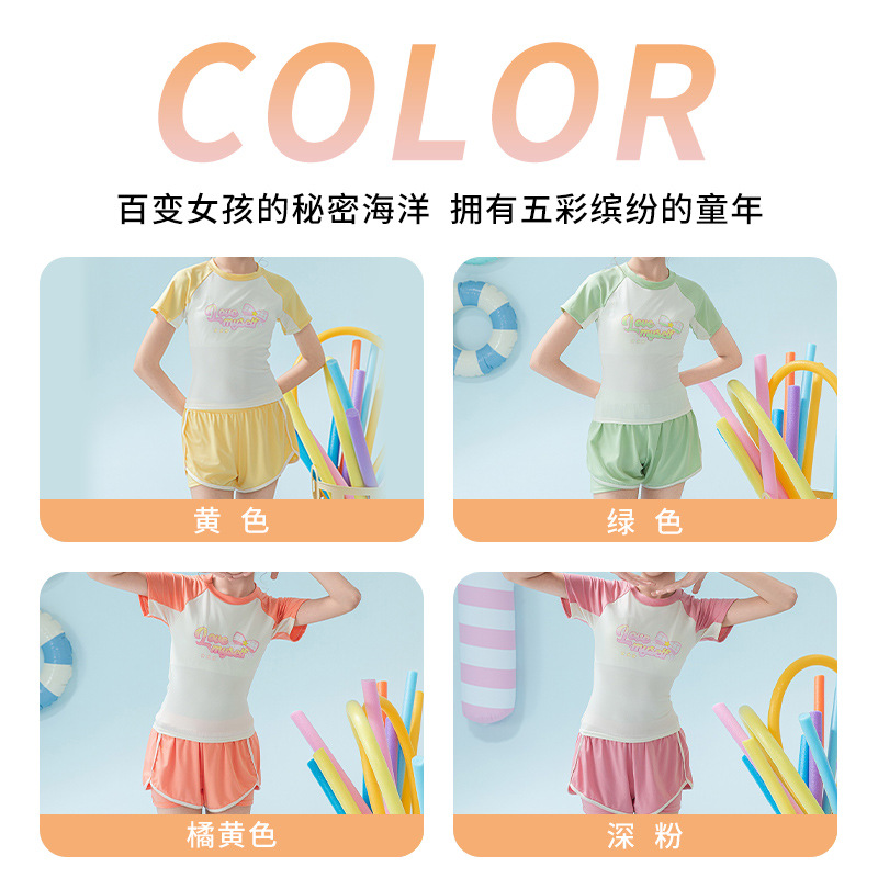 儿童泳衣女童分体两件套2025新款夏中大童初中生保守平角少女泳装