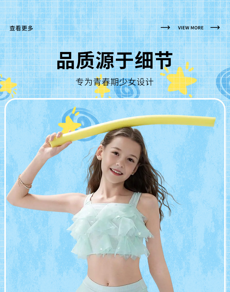 2025新款儿童泳衣女童分体两件套时尚吊带网纱可爱初中生公主泳装