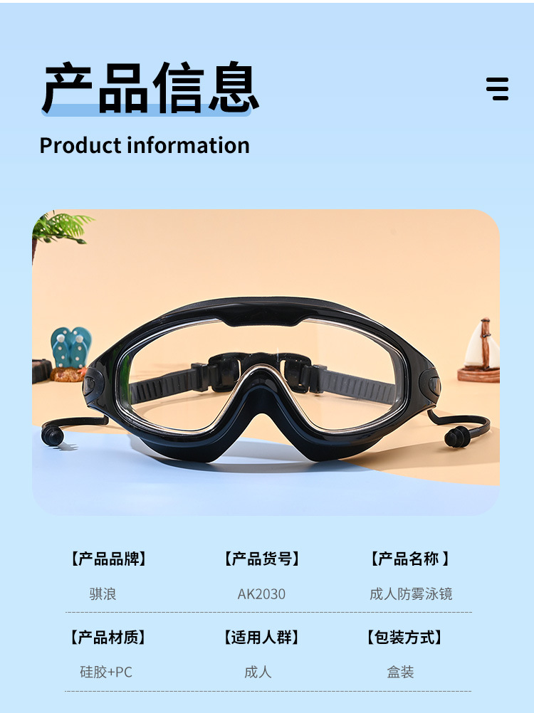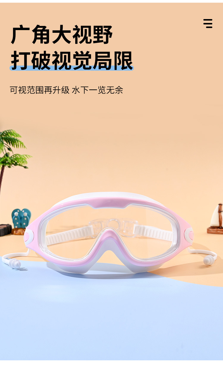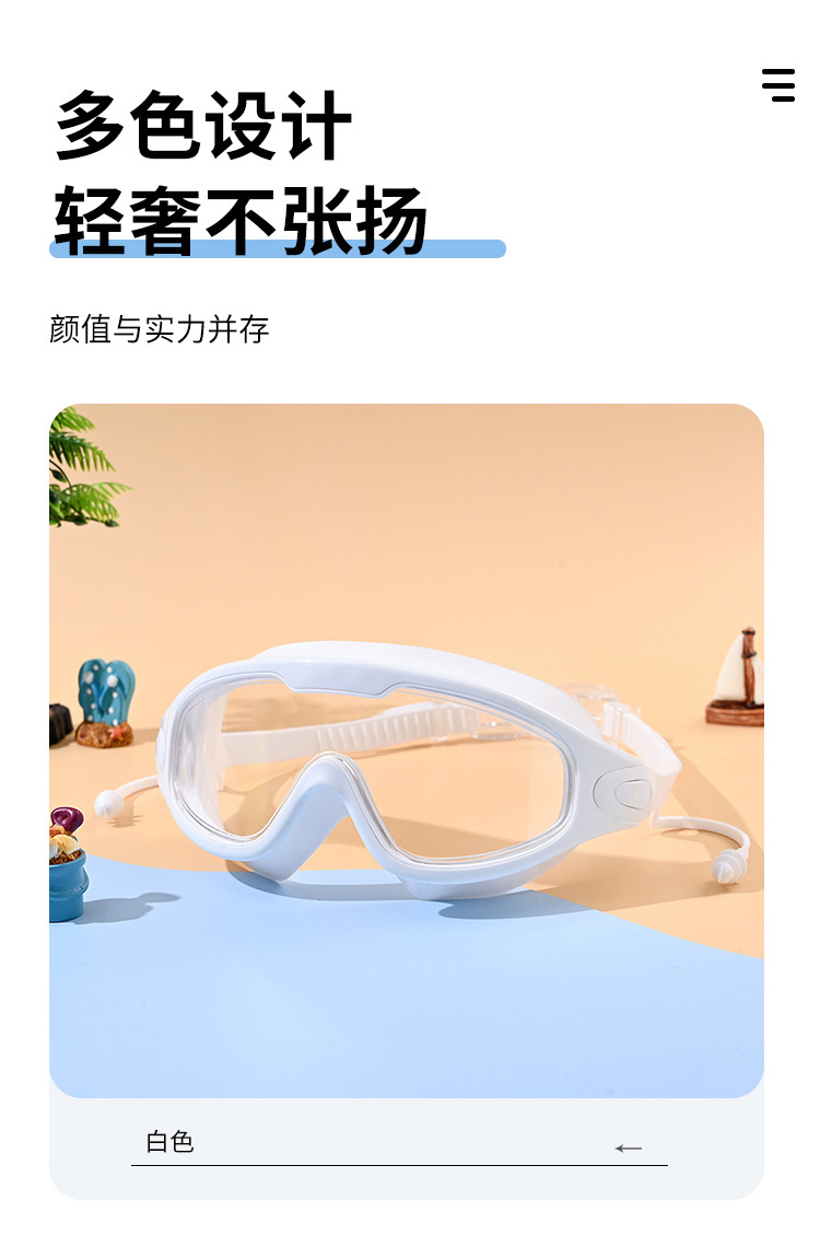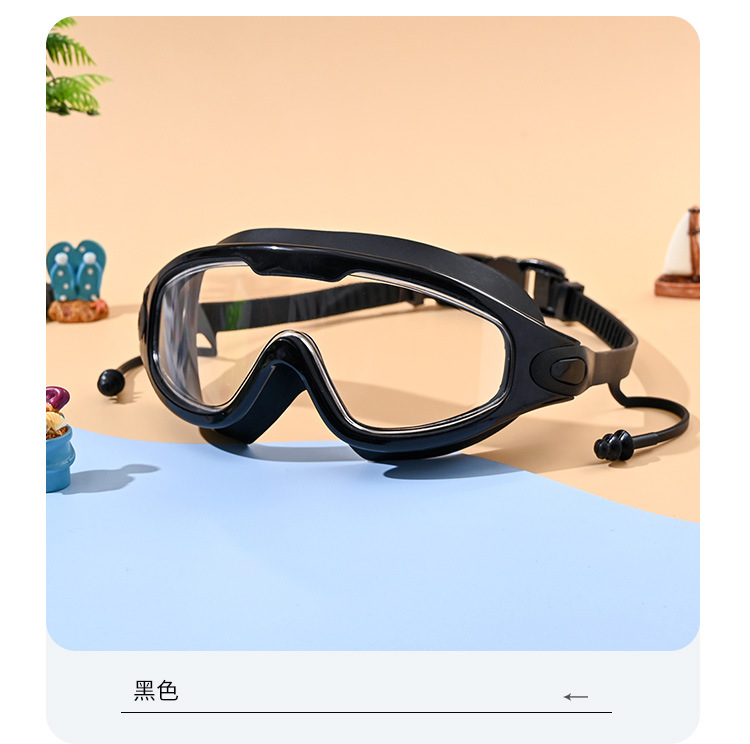 泳镜男女高清防雾防水女士大框带耳塞一体成人专业潜水学游泳眼镜