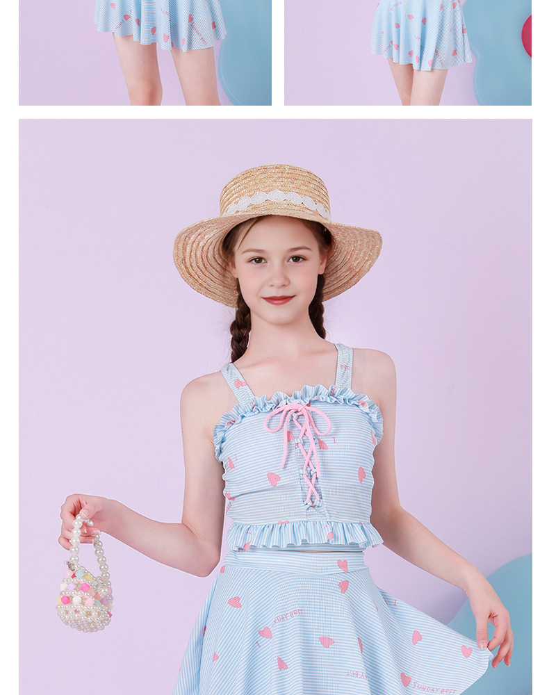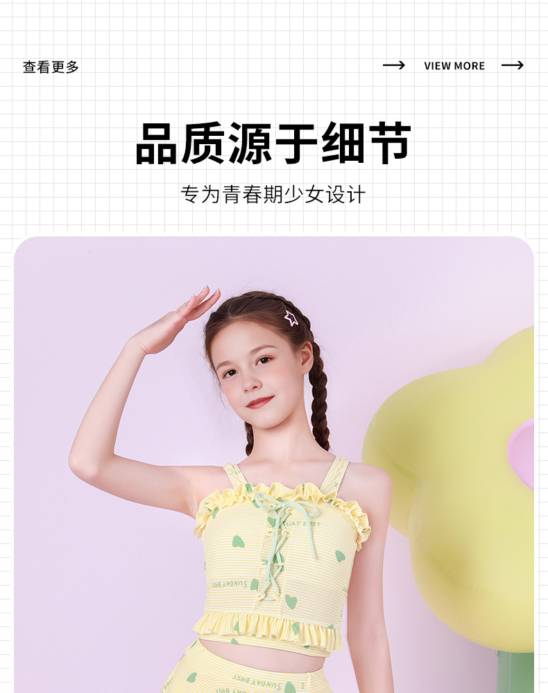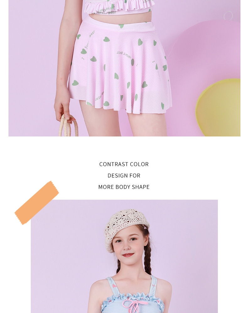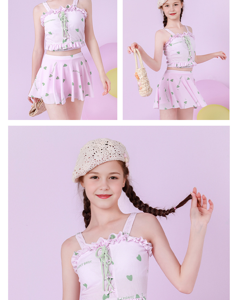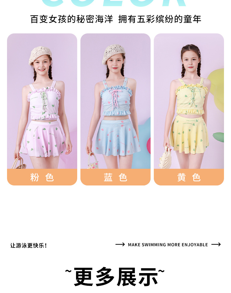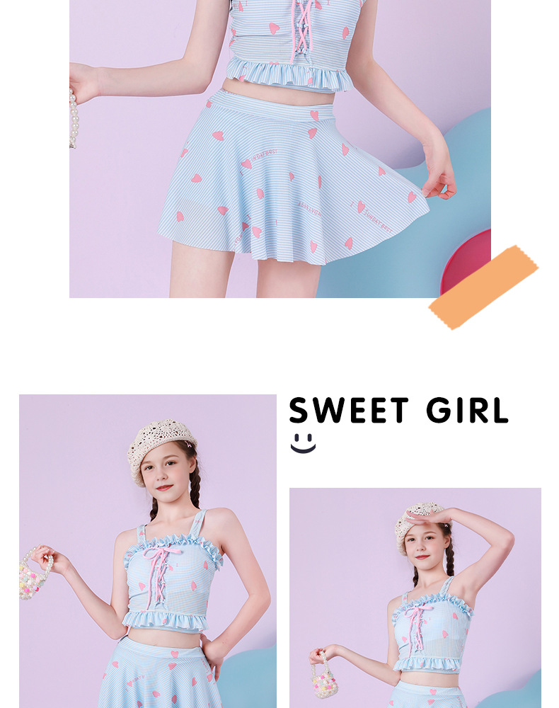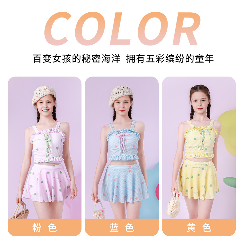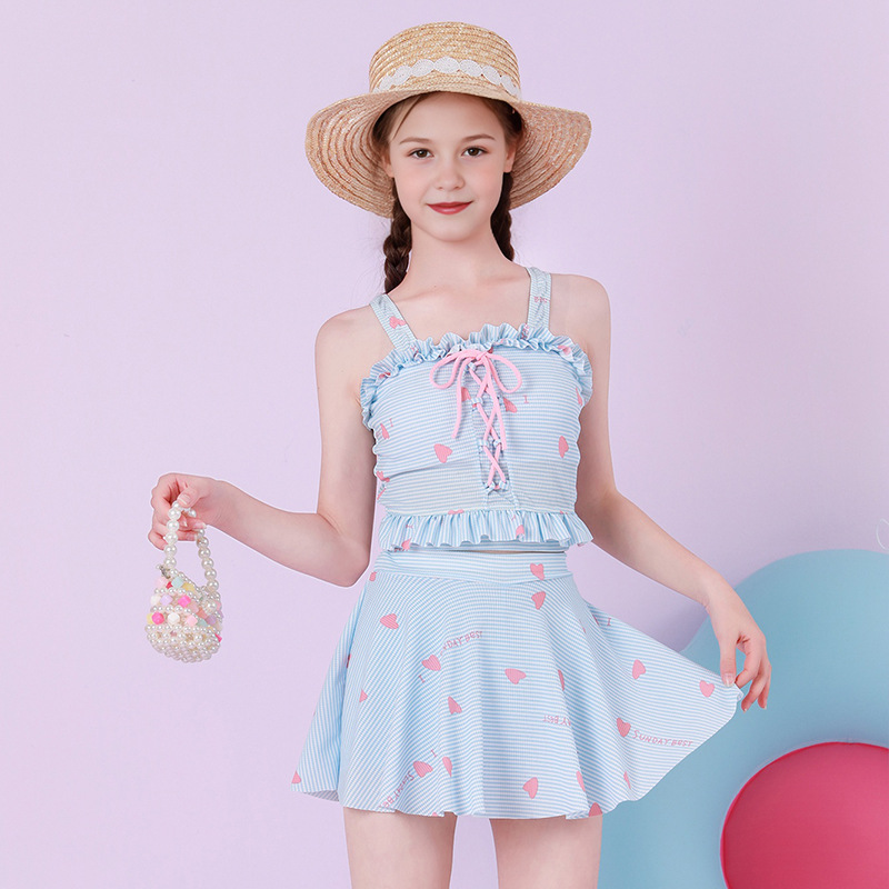儿童泳衣时尚女童分体裙式少女游泳训练带胸垫海边防晒中大童泳装